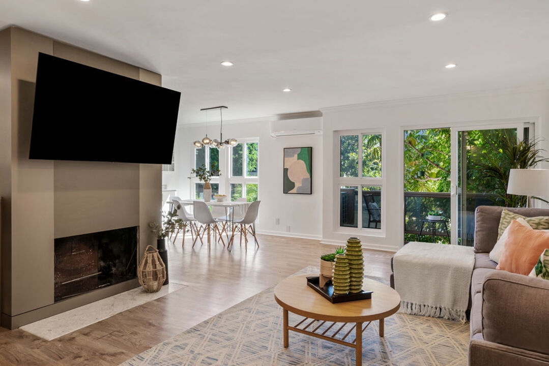 Discover your dream condo in the heart of Westwood Charter! The all inclusive HOA covers homeowner's insurance, earthquake insurance, water, sewer, trash, landscaping and gas. This radiant, upgraded modern home is a one of a kind blend of style and comfort. As you enter, you'll be captivated by the amount of natural light that comes through the large front windows, all set in a desirable corner unit with 2 balconies. 2 large bedrooms + 2.5 bath with den/office used as 3rd bedroom (built in Murphy bed included). This flexible space can be used as your home office, hosting guests, or as a children's play area. The generously sized bedrooms offer plenty of space, ideal for relaxation. Picture yourself enjoying cozy evenings by fireplace, with ample built-in shelving and the convenience of a new LG in-unit washer/dryer. The master suite features an updated and bright bathroom and large walk in closet. The hallway features an entire wall of cabinet storage space. The stainless steel custom kitchen and dining room seamlessly flow into an open, welcoming living area. No expense was spared in this kitchen that features a Miele stovetop, vent, and oven- a chef's dream. The unique custom metal and glass work add a modern touch, making this home truly stand out. Situated in an excellent location, you'll have easy access to fantastic dining options, UCLA, and Westwood Village, bringing the best of city living to your doorstep. Plus, this unit is just blocks away from the highly rated Westwood Charter Elementary. Plus, you'll enjoy the convenience of two garage parking spaces and extra storage. This luxurious condo isn't just a homeit's a lifestyle upgrade waiting for you!