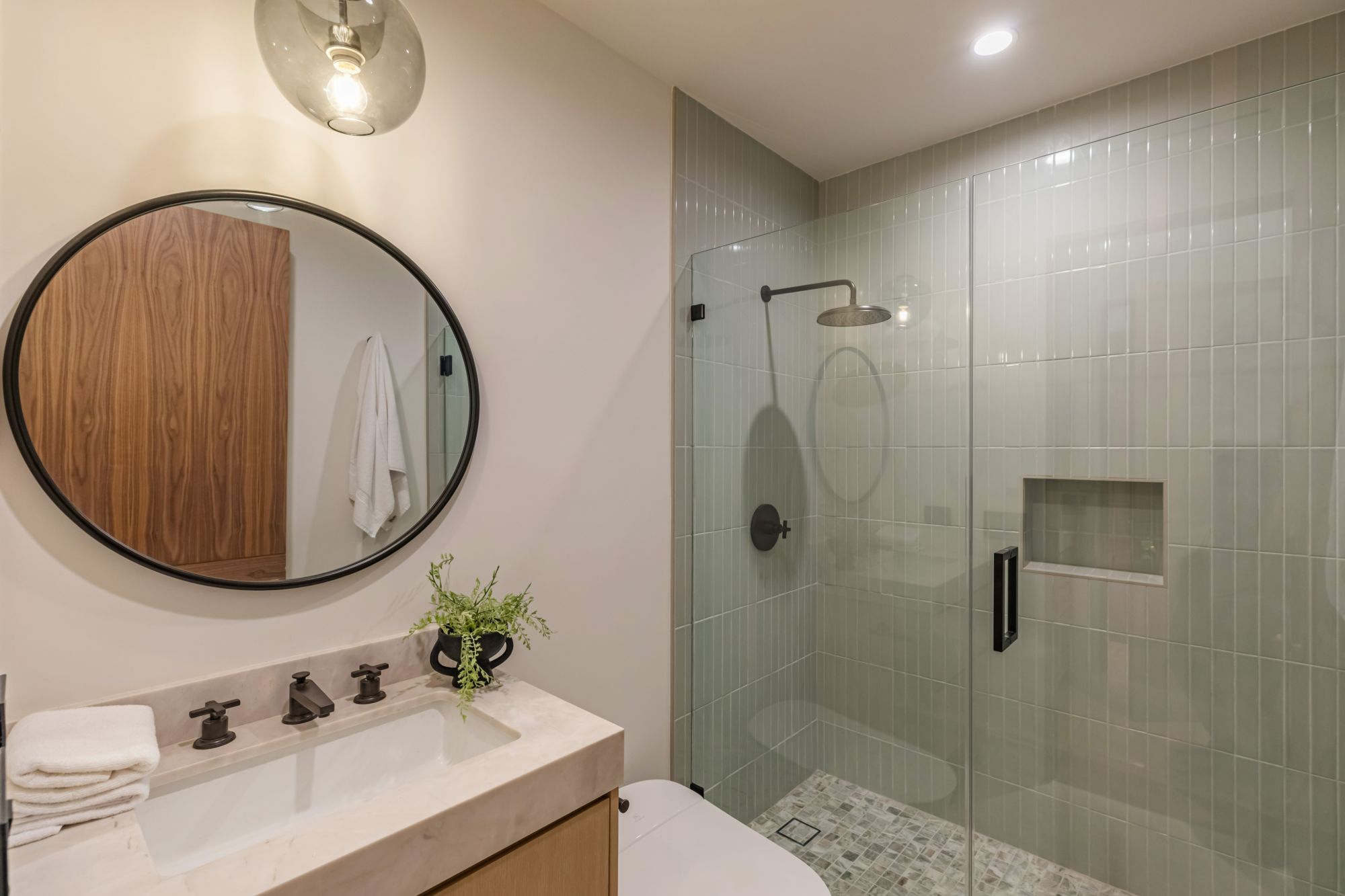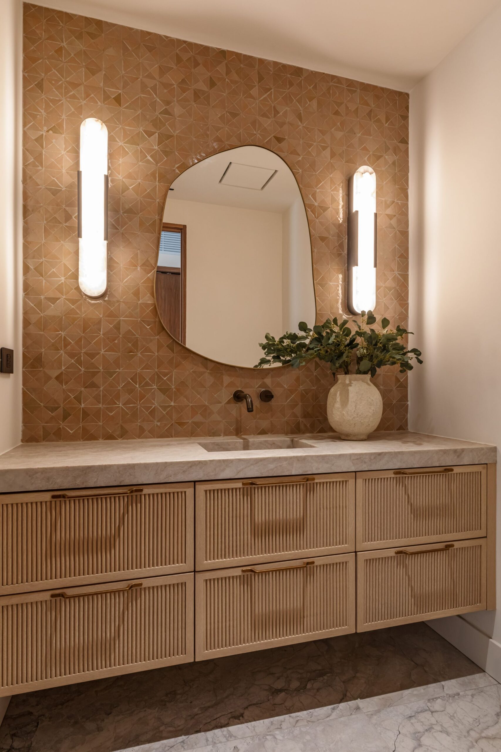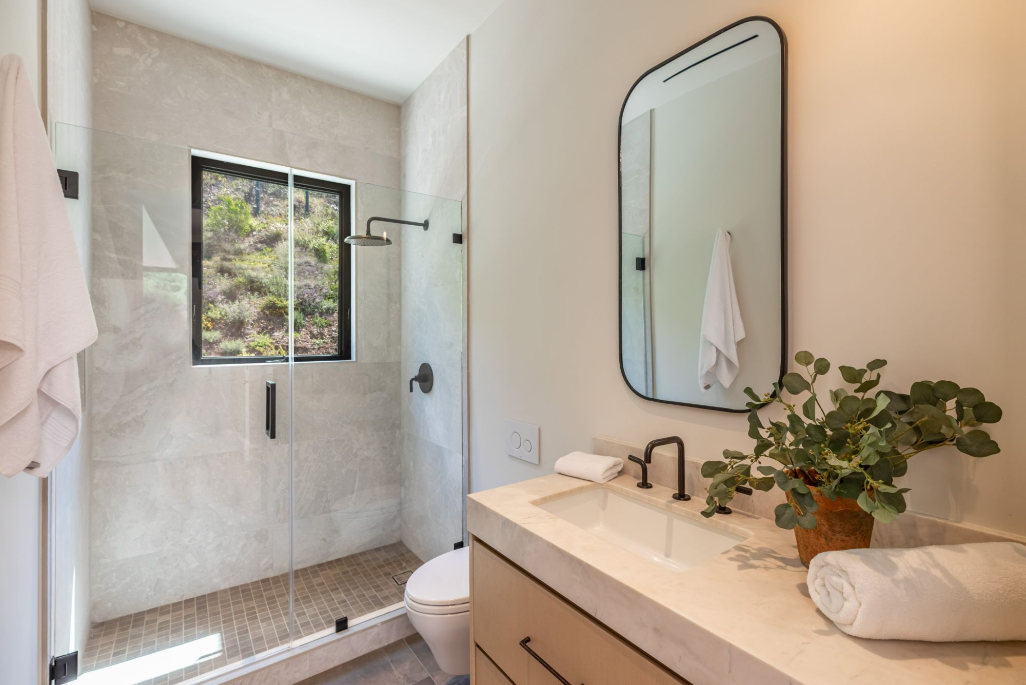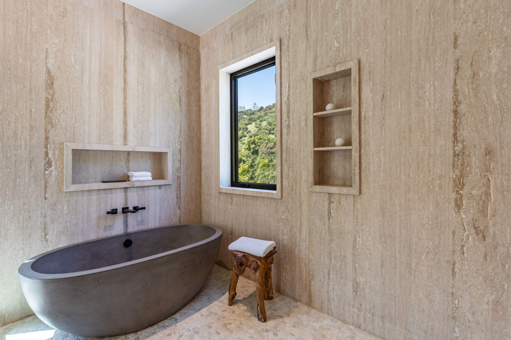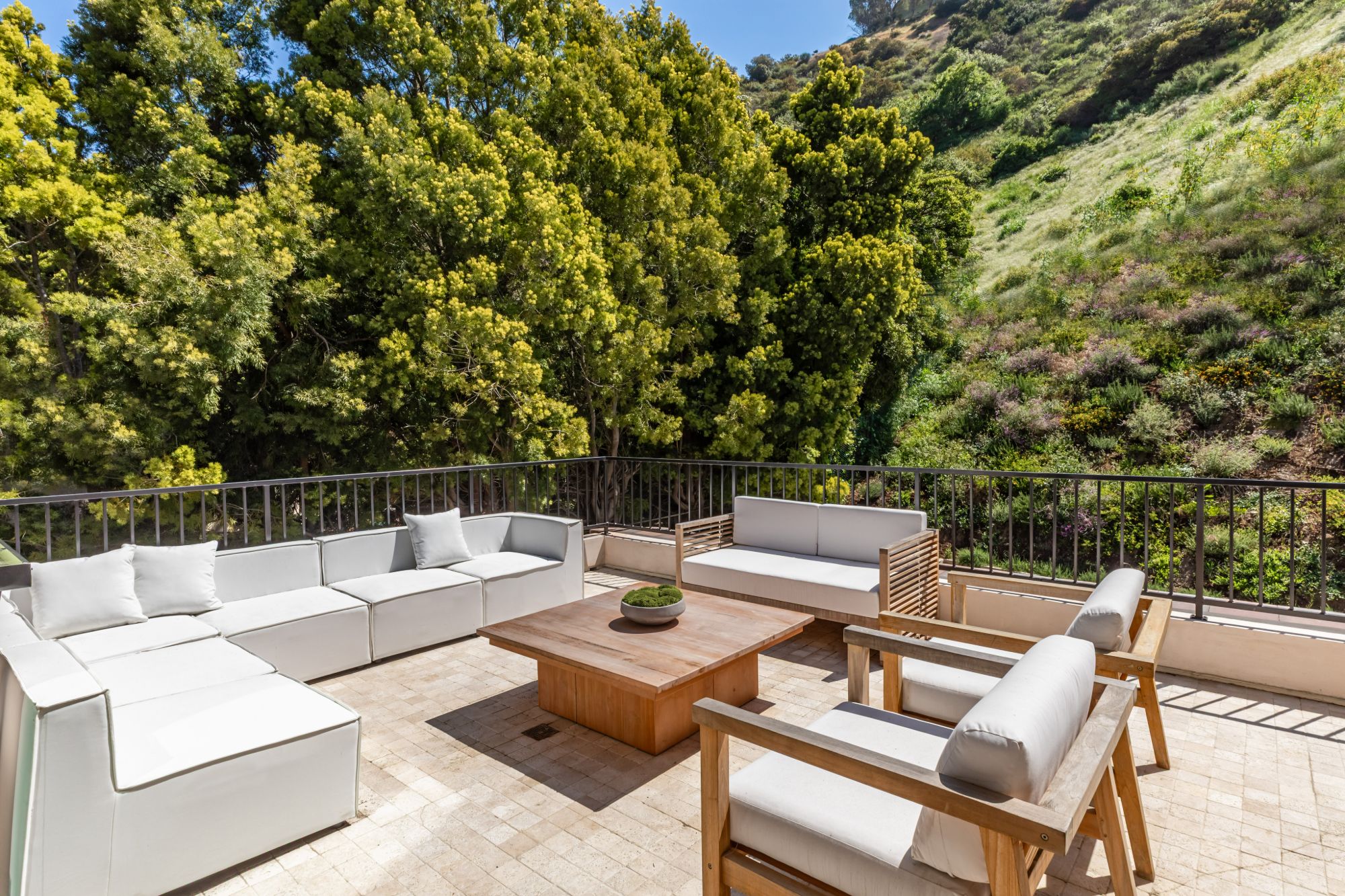 Discover ultimate luxury in this newly built European transitional home, where impeccable craftsmanship, custom finishes, and sophisticated design converge to create a truly exceptional residence. From the moment you enter through the statement pivoting front door, you're welcomed into a bright, airy space thoughtfully designed for both entertaining and everyday living. Expansive Fleetwood floor-to-ceiling pocket doors seamlessly blend indoor and outdoor living, bathing the interior in natural light and inviting in tranquil canyon breezes. At the heart of the home, the chef's kitchen features a striking 12-foot Taj Mahal quartzite island, professional Thermador appliances, custom cabinetry, and a full butler's pantry with a double oven, perfectly suited for culinary excellence. The open floorplan is unified by wide-plank European oak floors and a floating oak staircase, enhancing both flow and functionality. Four spacious en suite bedrooms offer custom walk-in closets and generous private decks with unobstructed canyon views. Set on a meticulously landscaped lot with mature olive trees, the exterior is designed for luxury and leisure. Enjoy multiple outdoor entertaining areas including a resort-style pool and spa, fully equipped outdoor kitchen, fire pit lounge, al fresco dining, and parking for up to six vehicles. A rare offering that harmonizes high-end materials, curated designer elements, and timeless elegance, this is more than a home, it's a lifestyle!