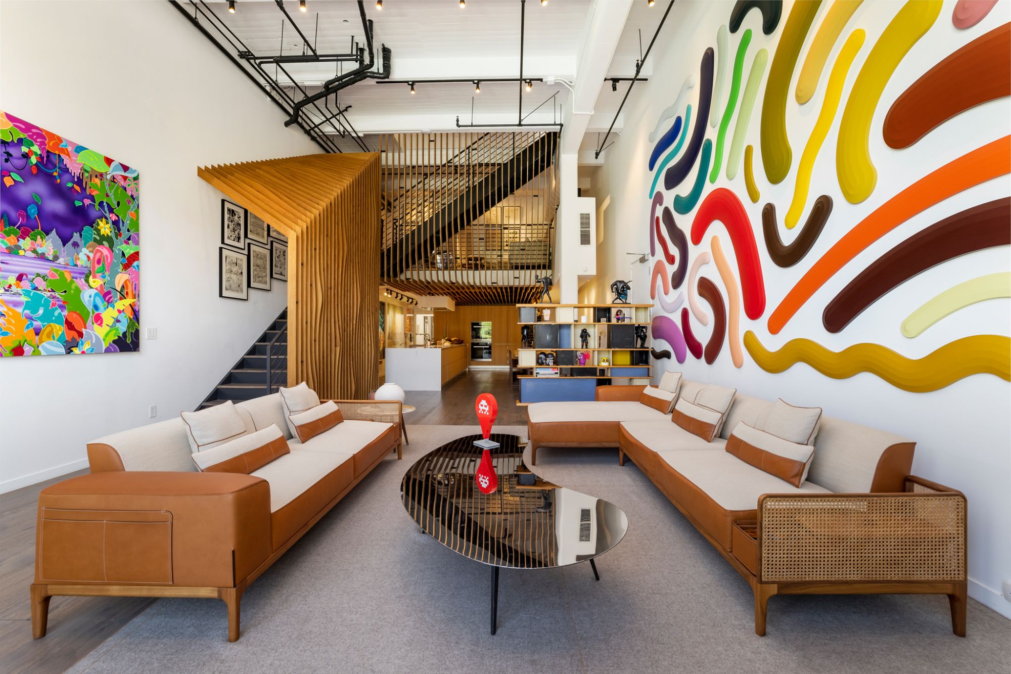 Completely renovated architectural 3-bed, 4-bath loft in the historic Biscuit Co Loft Building in the Arts District. Built in 1925 as Nabisco's West Coast headquarters and completely restored to blend period craftsmanship with modern conveniences to provide luxurious loft living. This approx. 2,460 SF unit spans 3 levels and features high ceilings, large windows, thoughtful finishes throughout, and Lutron domotic system. The main level offers an open concept living room that blends seamlessly to the kitchen and dining area with Bulthaup cabinetry and Miele appliances. Large glass doors open to a private patio and provide beautiful natural light to highlight the showstopping wooden art installation that flanks the stairway leading to a secondary living room and bedrooms. The spacious primary suite has a walk-in closet, and double-height windows with sliding doors that open to a private balcony with views of DTLA. This unit comes with 6 dedicated parking spaces. Building amenities include 24/7 concierge/security, a Zen Garden terrace, state-of-the-art fitness center, swimming pool, outdoor Viking BBQ and firepit. With historic charm and modern amenities, the Biscuit Lofts offer the best of both worlds. Perfectly situated in prime Arts District near Soho Warehouse and some of the best dining in DTLA.