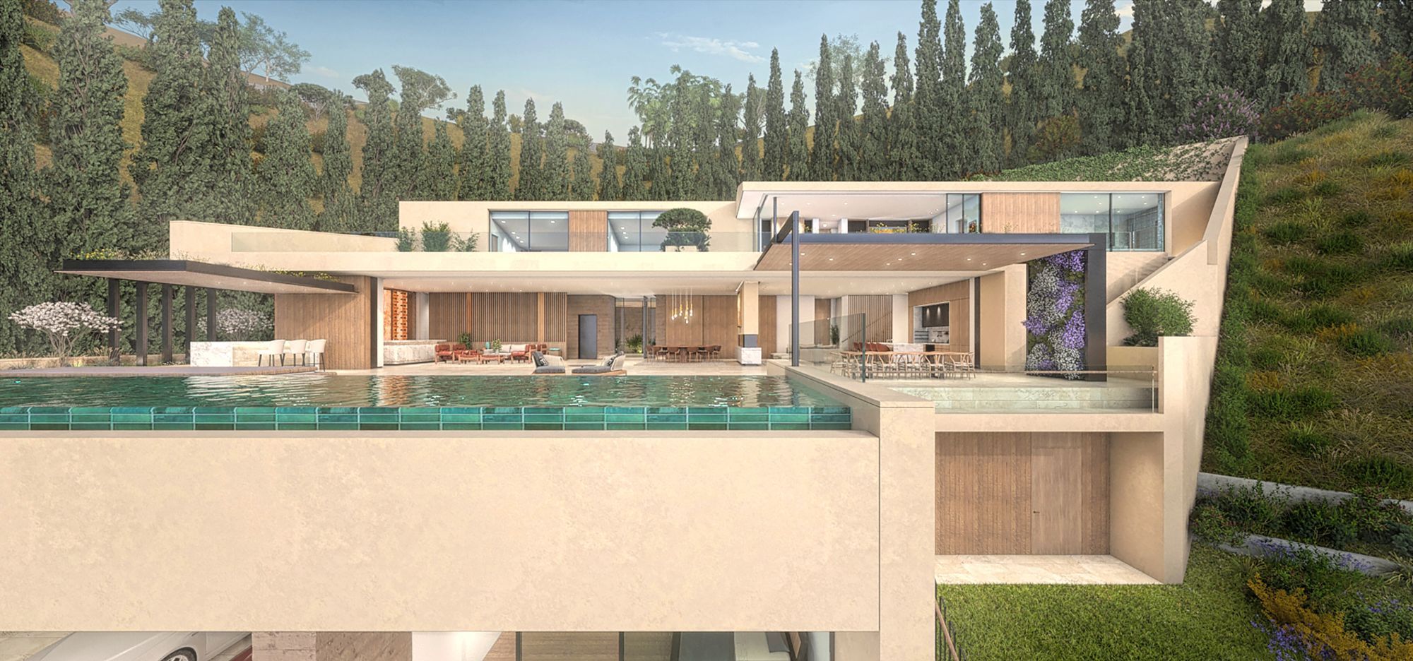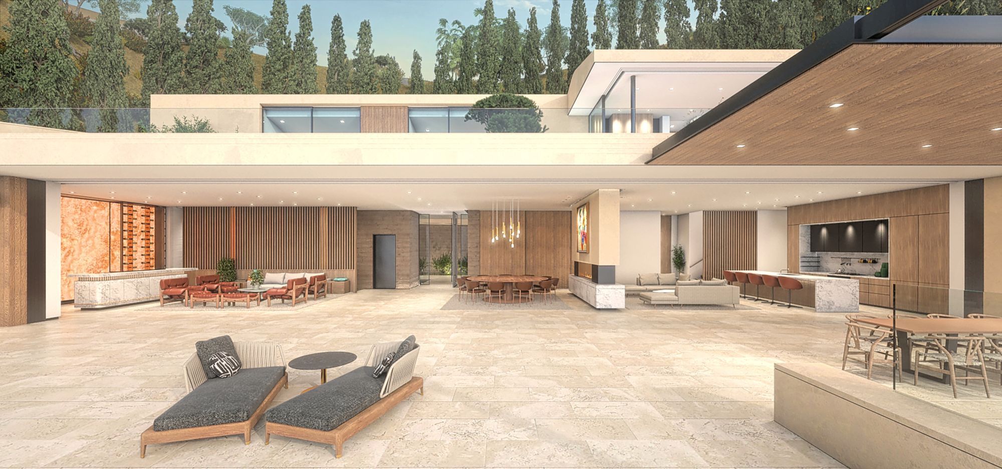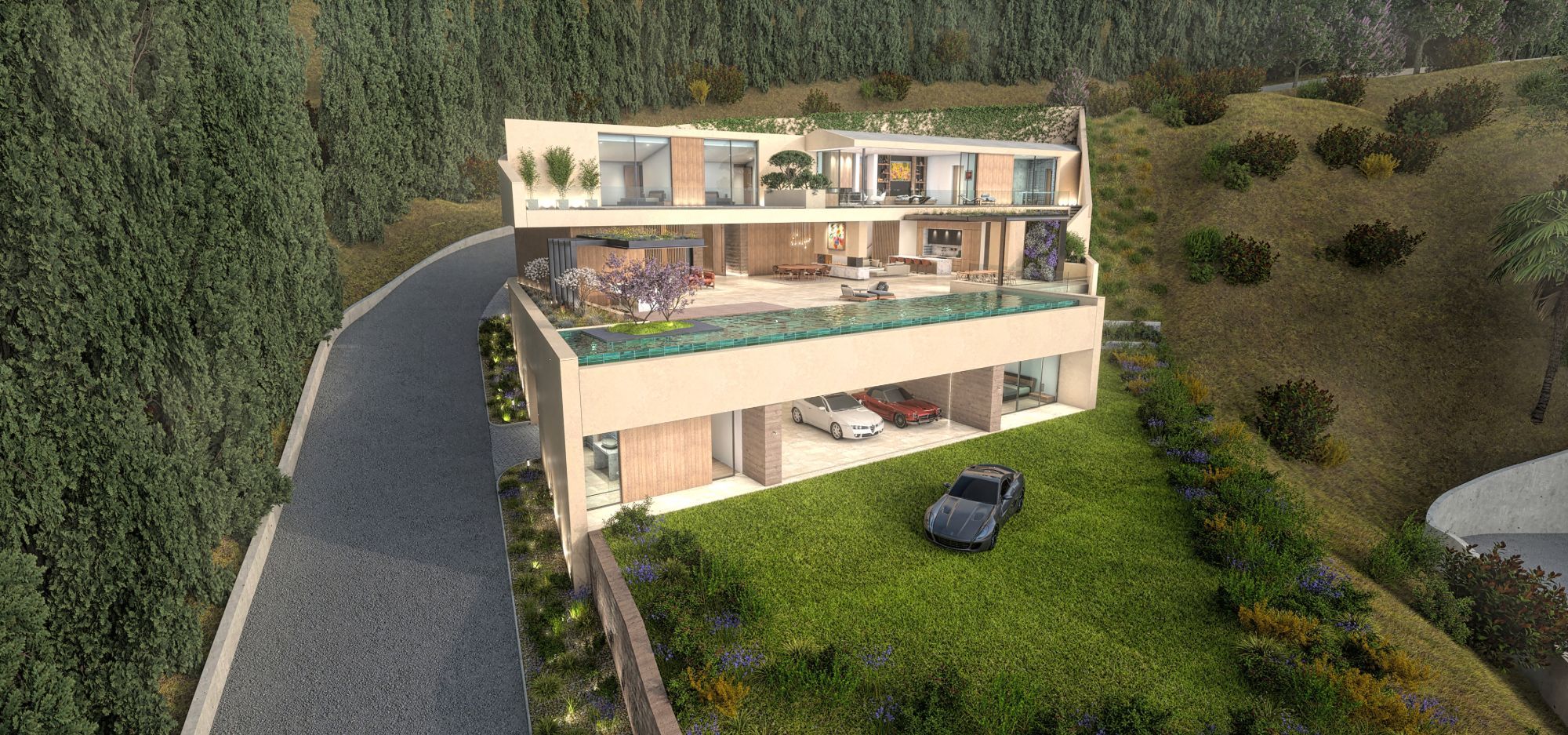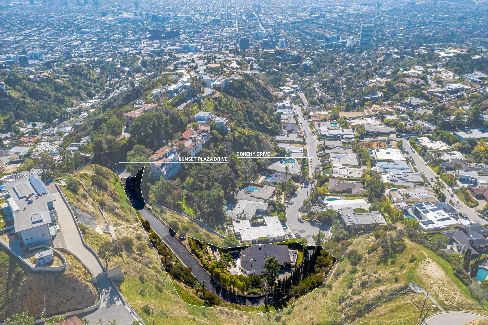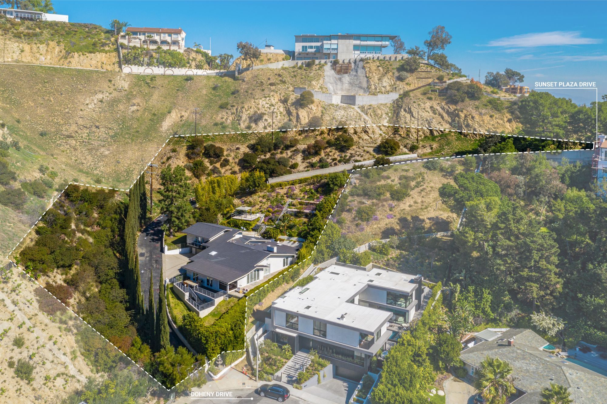 Carefully sited within the prestigious Sunset Doheny Estates neighborhood on a 1.5 acre promontory. The Doheny Crest residence is situated along a fully-gated, 575 foot long private street and has direct access from both Doheny Drive through Doheny Estates and Sunset Plaza - private, secure, gated (Sunset Plaza neighborhood). Ready to build, permits approved 12,500 SF estate, a combination of dynamic volumes tempered with warm material palette of finely detailed stone, timber and rendered finishes. The exterior terrace is edged by a 70' infinity pool and includes a large covered dining area, multiple garden spaces. Carefully crafted floorplan capturing both views and privacy. The unique security of this property offers attributes very rarely seen. Comprised of two separate developable parcels, the neighborhood's most private home is perfectly aligned to a spectacular Century City view and features sweeping vistas from the Sunset Strip to the ocean.