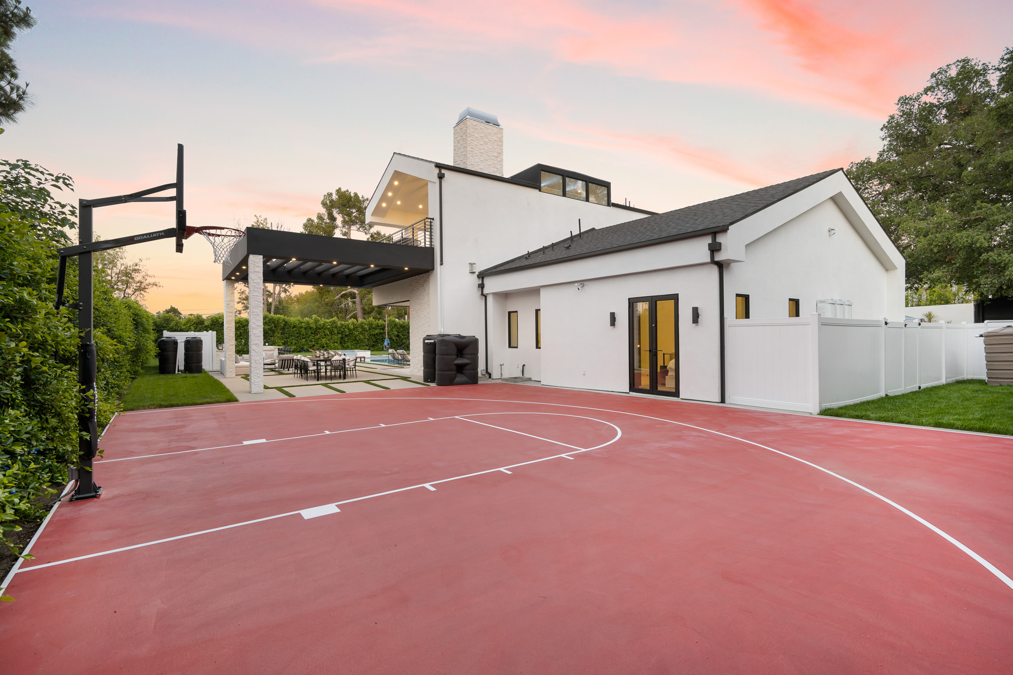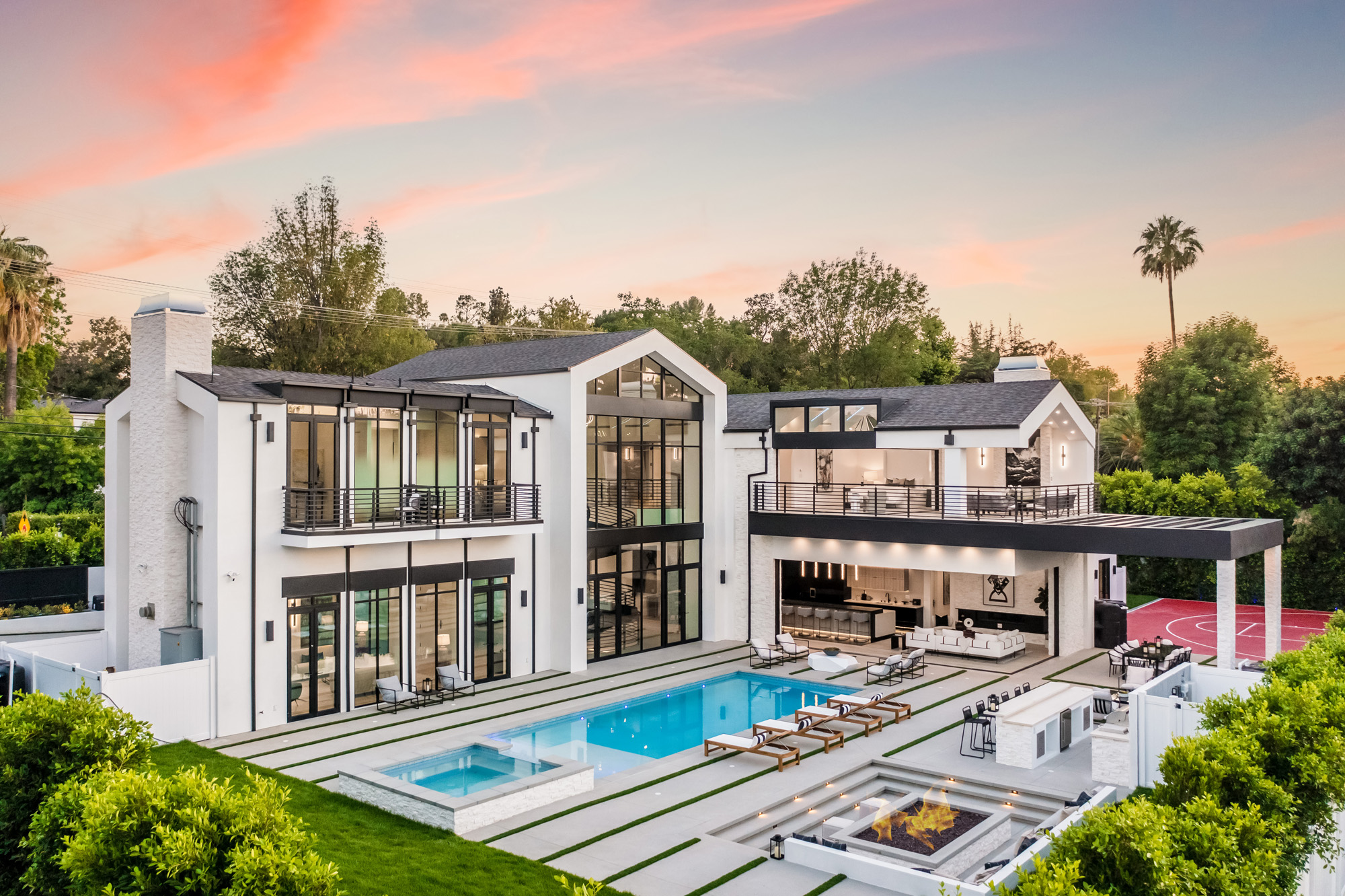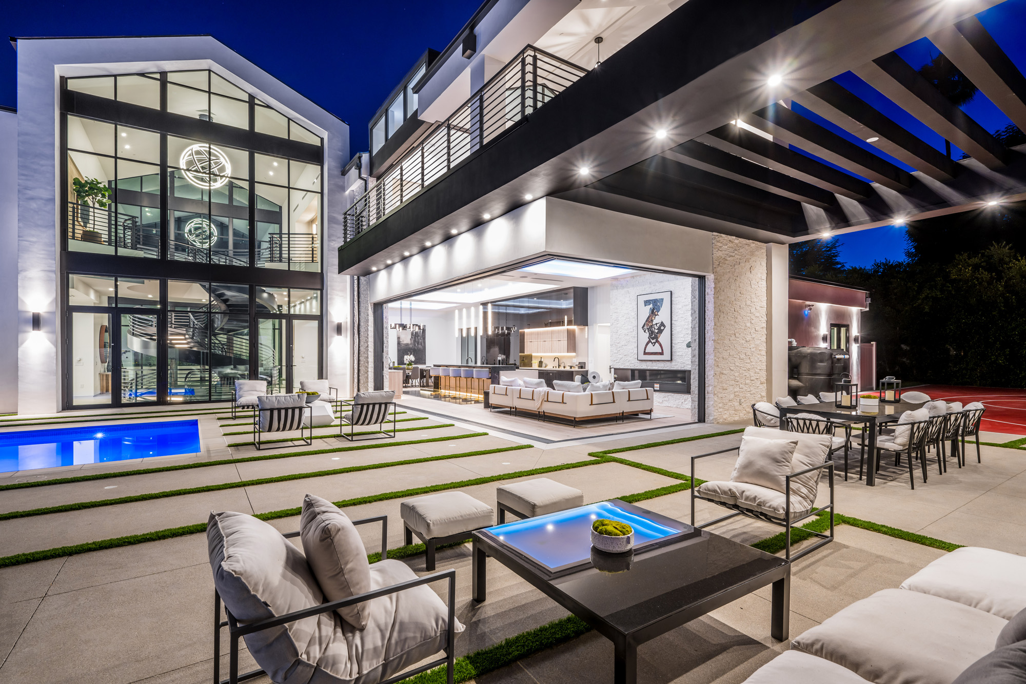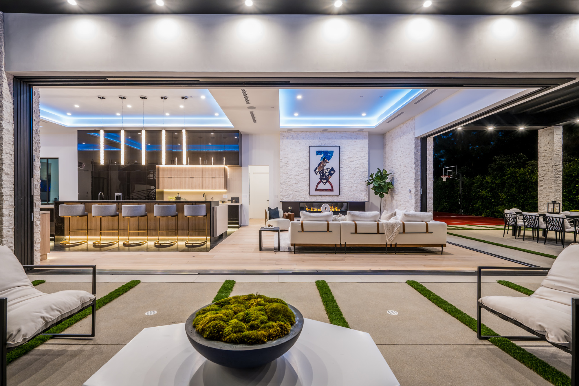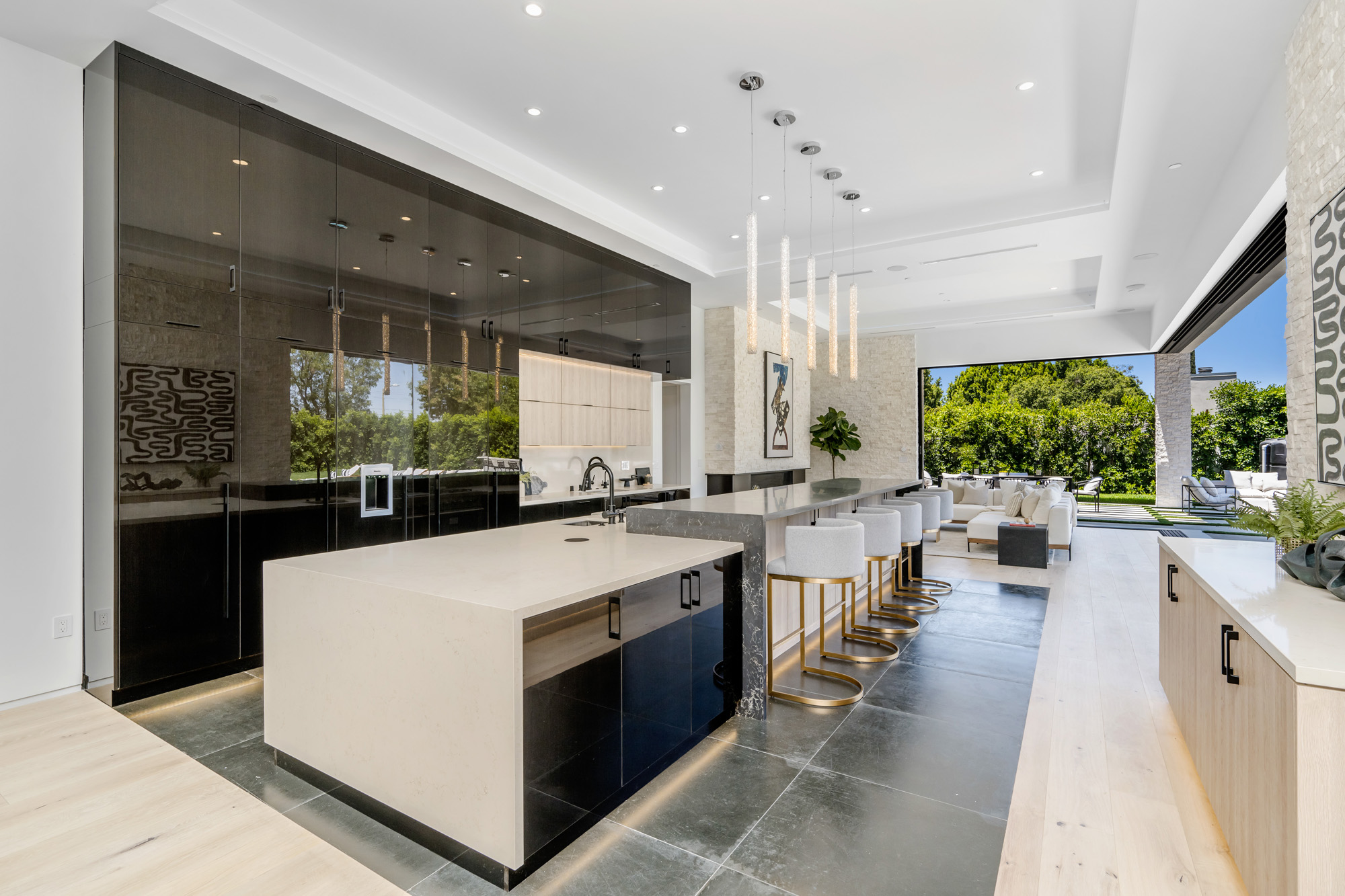 An architectural masterpiece and arguably one of the most unique and special properties in all of Los Angeles. The centerpiece of this incredible property is a 60 ton floating and spiraling staircase that rises from the 2,000 sq.ft. basement, to the second floor. Absolutely magnificent design, featuring a beautiful 30 foot plus glass entry that flows through to another 30 foot plus rear glass facade which leads to the backyard. The property sits on over half an acre and features a builtin BBQ, sunken fire pit, half basketball court with NBA 3 point line, and lots of fresh grass throughout. The circular driveway gracefully flows from one side to another providing enough space to park plenty of cars. The aforementioned basement features a theater, bar, wine cellar, lounge, and wellness center with dry sauna. A must see!!!!