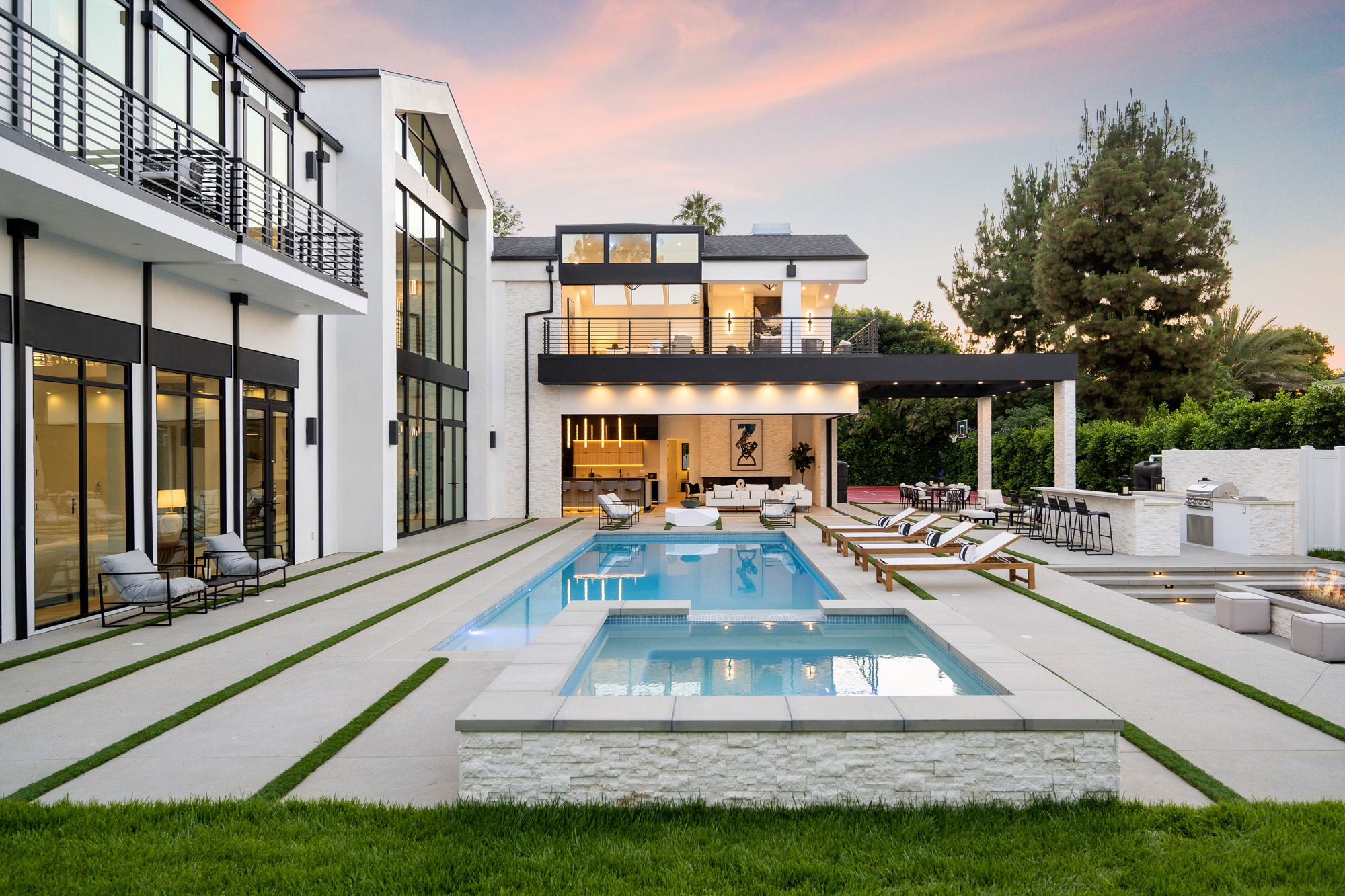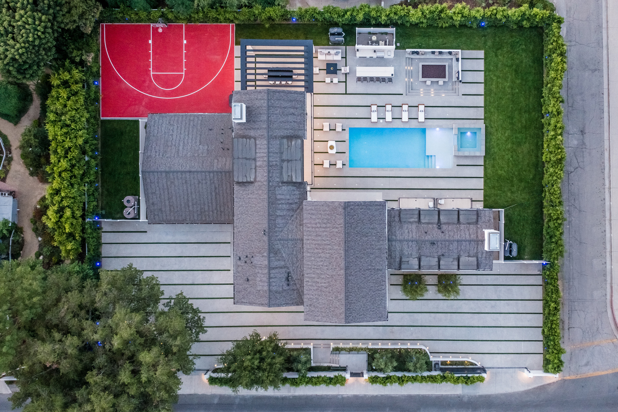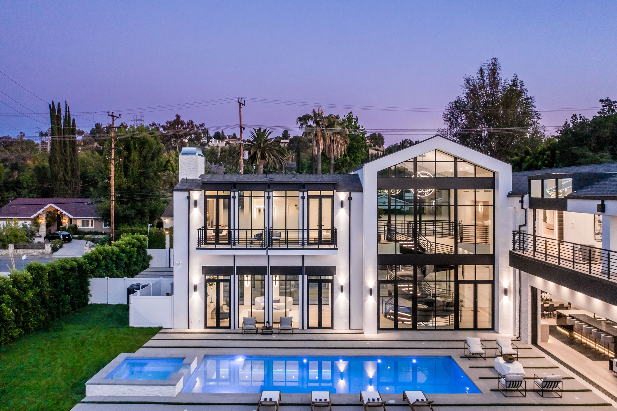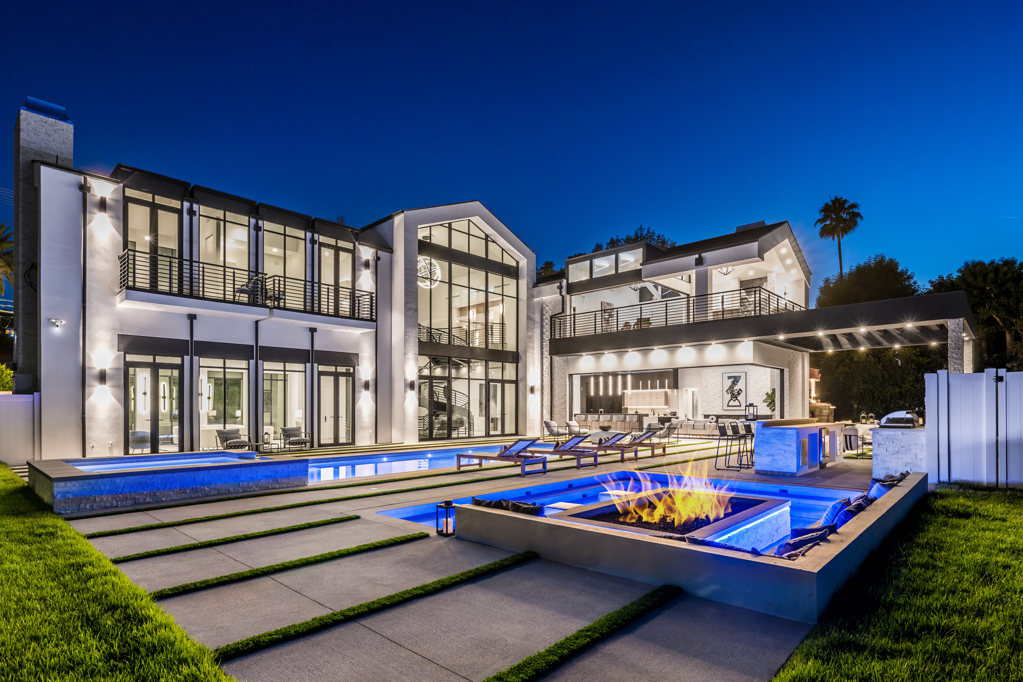 An architectural masterpiece and arguably one of the most unique and special properties in all of Los Angeles. The centerpiece of this incredible property is a 60 ton floating and spiraling staircase that rises from the 2,000 sq.ft. basement, to the second floor. Absolutely magnificent design, featuring a beautiful 30 foot plus glass entry that flows through to another 30 foot plus rear glass facade which leads to the backyard. The property sits on over half an acre and features a builtin BBQ, sunken fire pit, half basketball court with NBA 3 point line, and lots of fresh grass throughout. The circular driveway gracefully flows from one side to another providing enough space to park plenty of cars. The aforementioned basement features a theater, bar, wine cellar, lounge, and wellness center with dry sauna. A must see!!!!