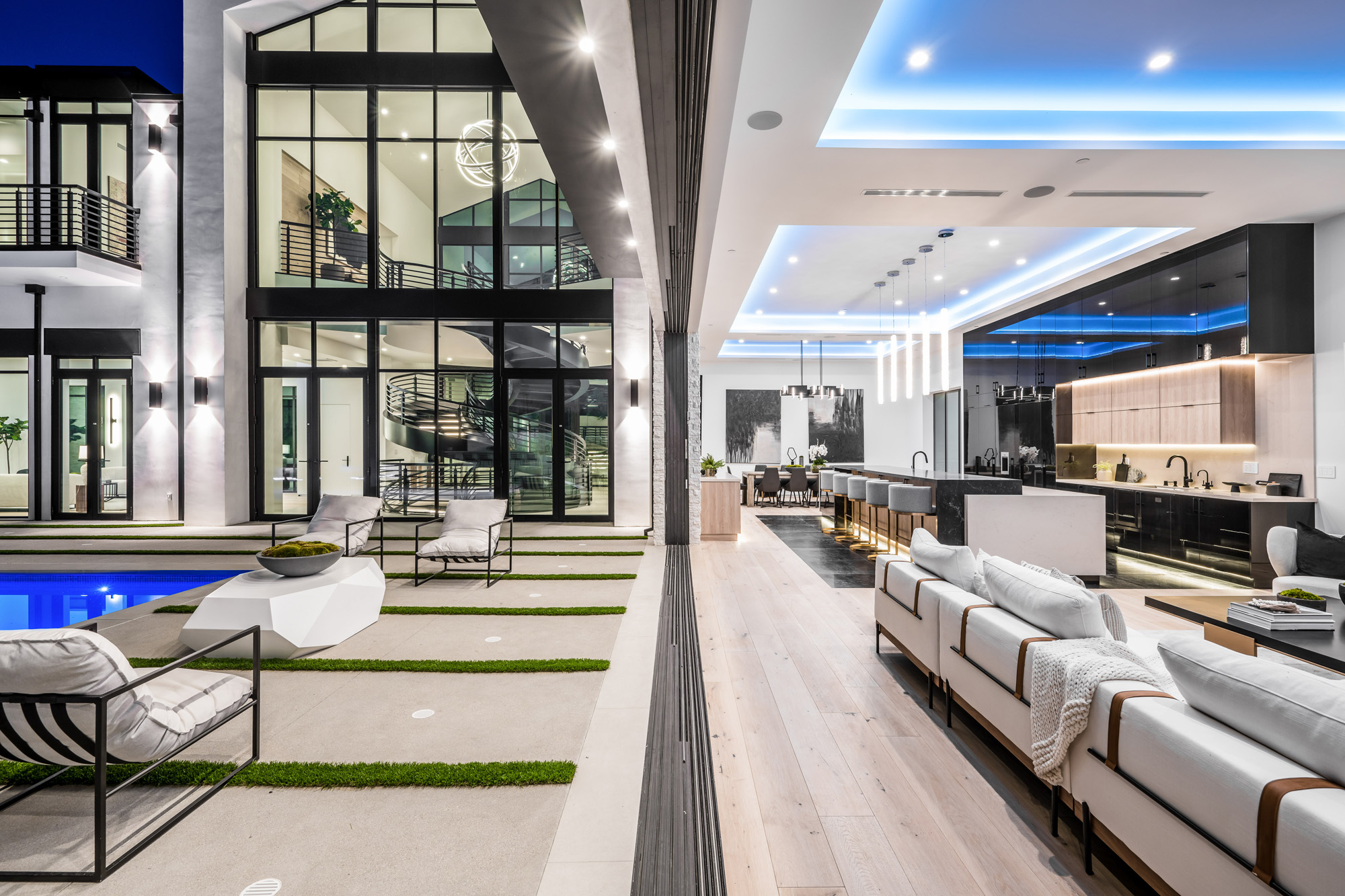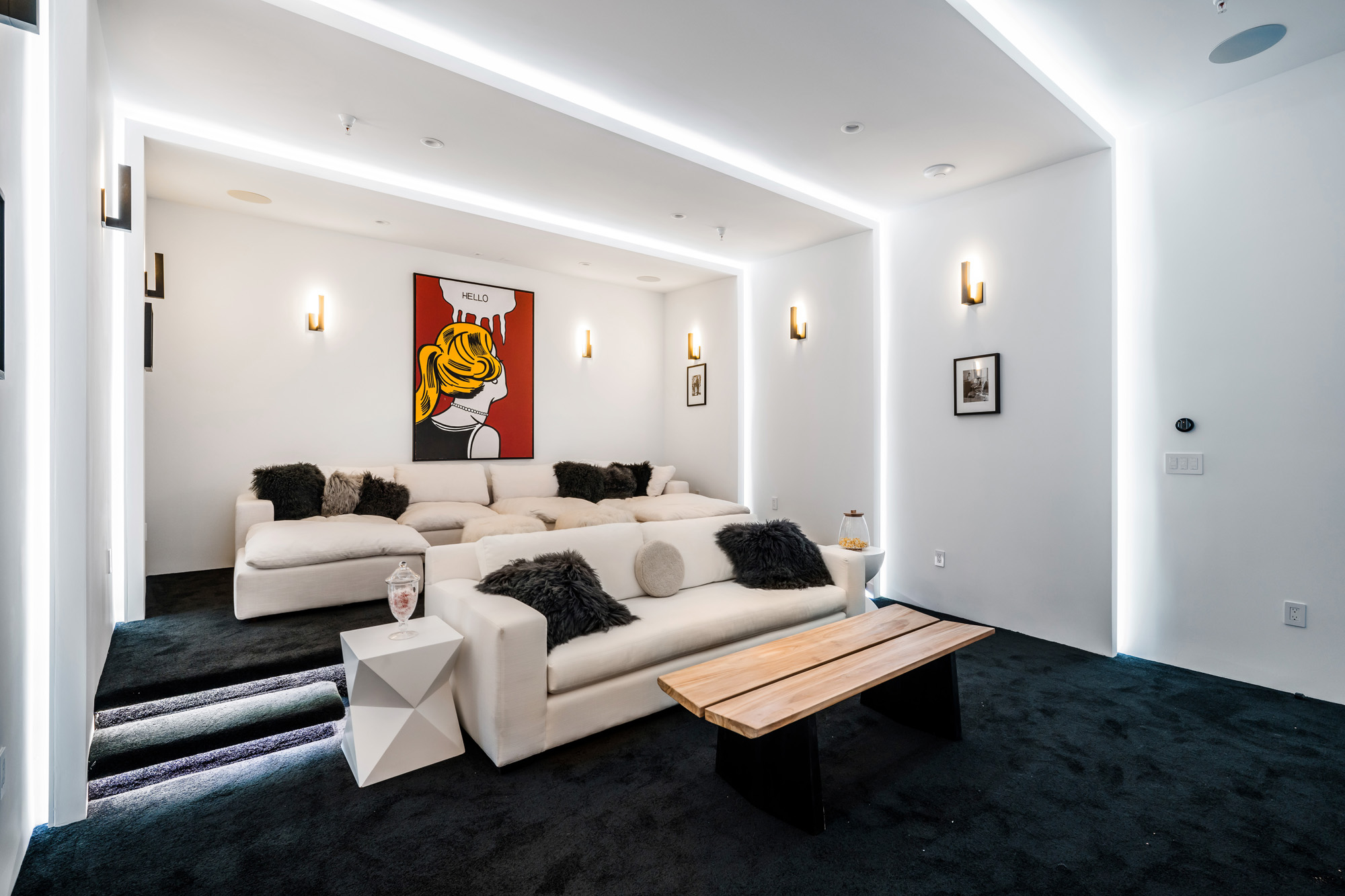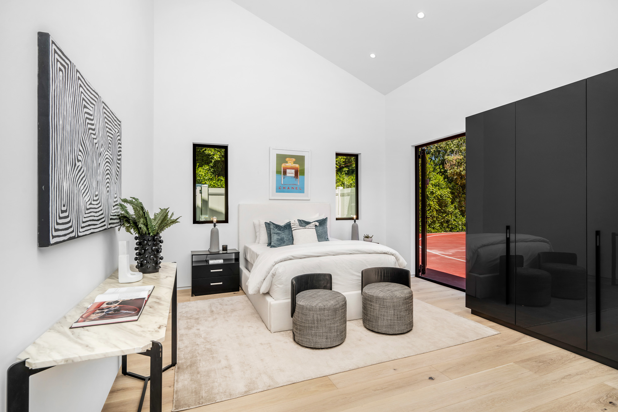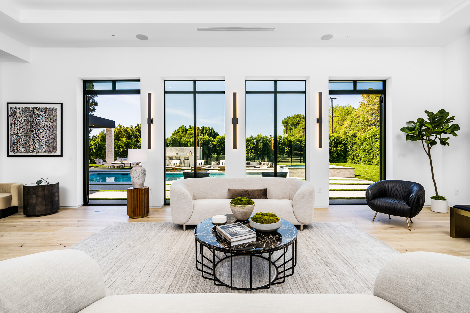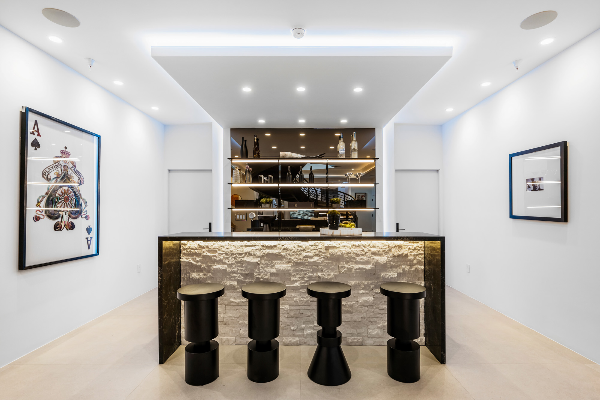 An architectural masterpiece and arguably one of the most unique and special properties in all of Los Angeles. The centerpiece of this incredible property is a 60 ton floating and spiraling staircase that rises from the 2,000 sq.ft. basement, to the second floor. Absolutely magnificent design, featuring a beautiful 30 foot plus glass entry that flows through to another 30 foot plus rear glass facade which leads to the backyard. The property sits on over half an acre and features a builtin BBQ, sunken fire pit, half basketball court with NBA 3 point line, and lots of fresh grass throughout. The circular driveway gracefully flows from one side to another providing enough space to park plenty of cars. The aforementioned basement features a theater, bar, wine cellar, lounge, and wellness center with dry sauna. A must see!!!!