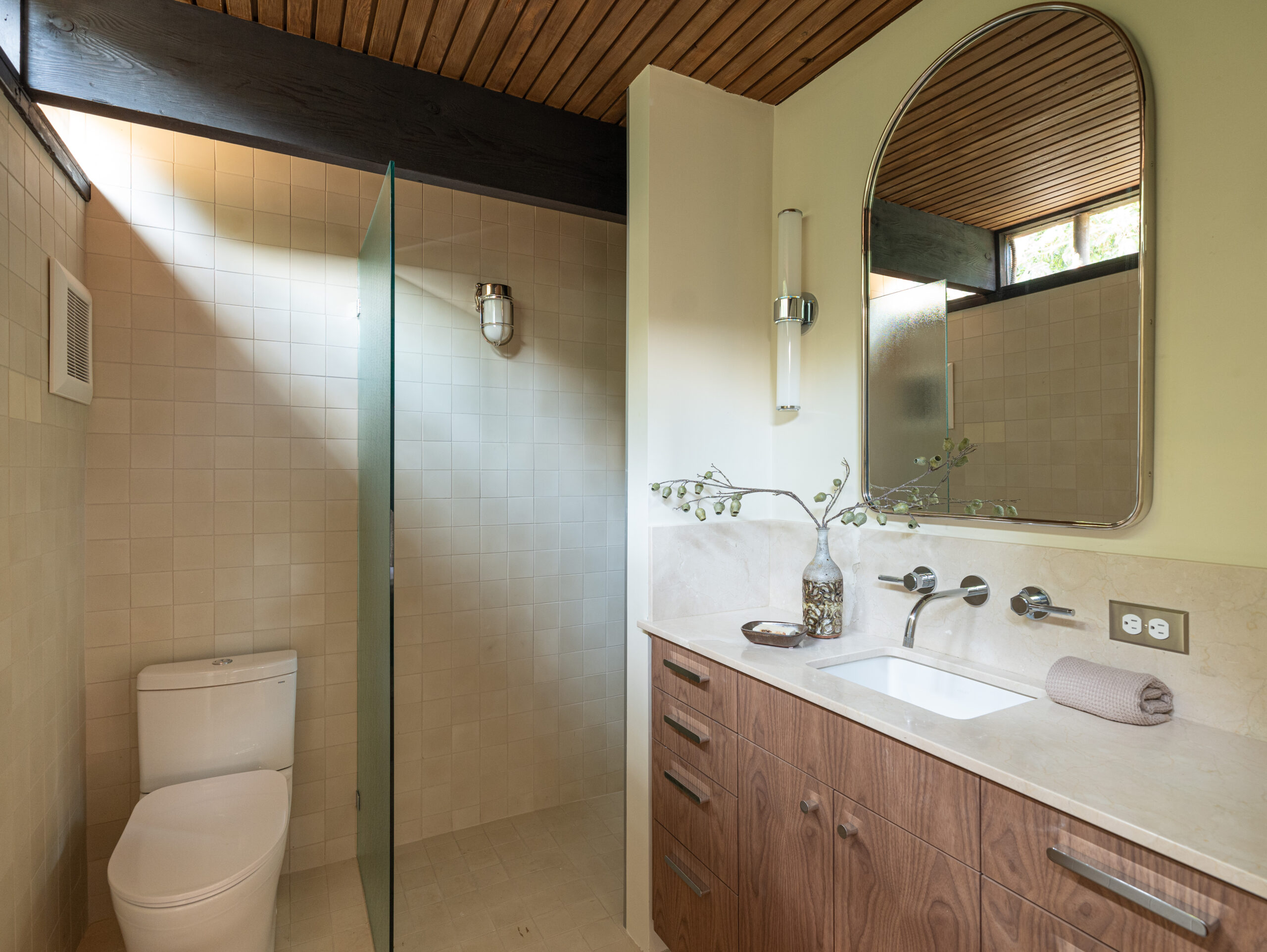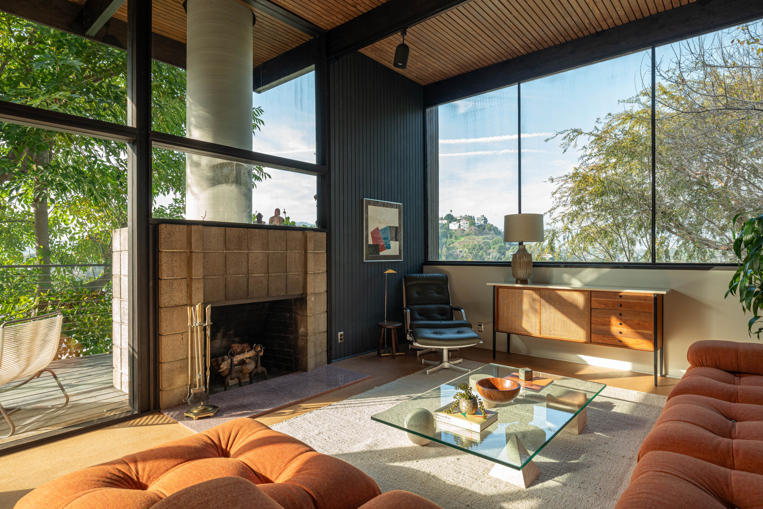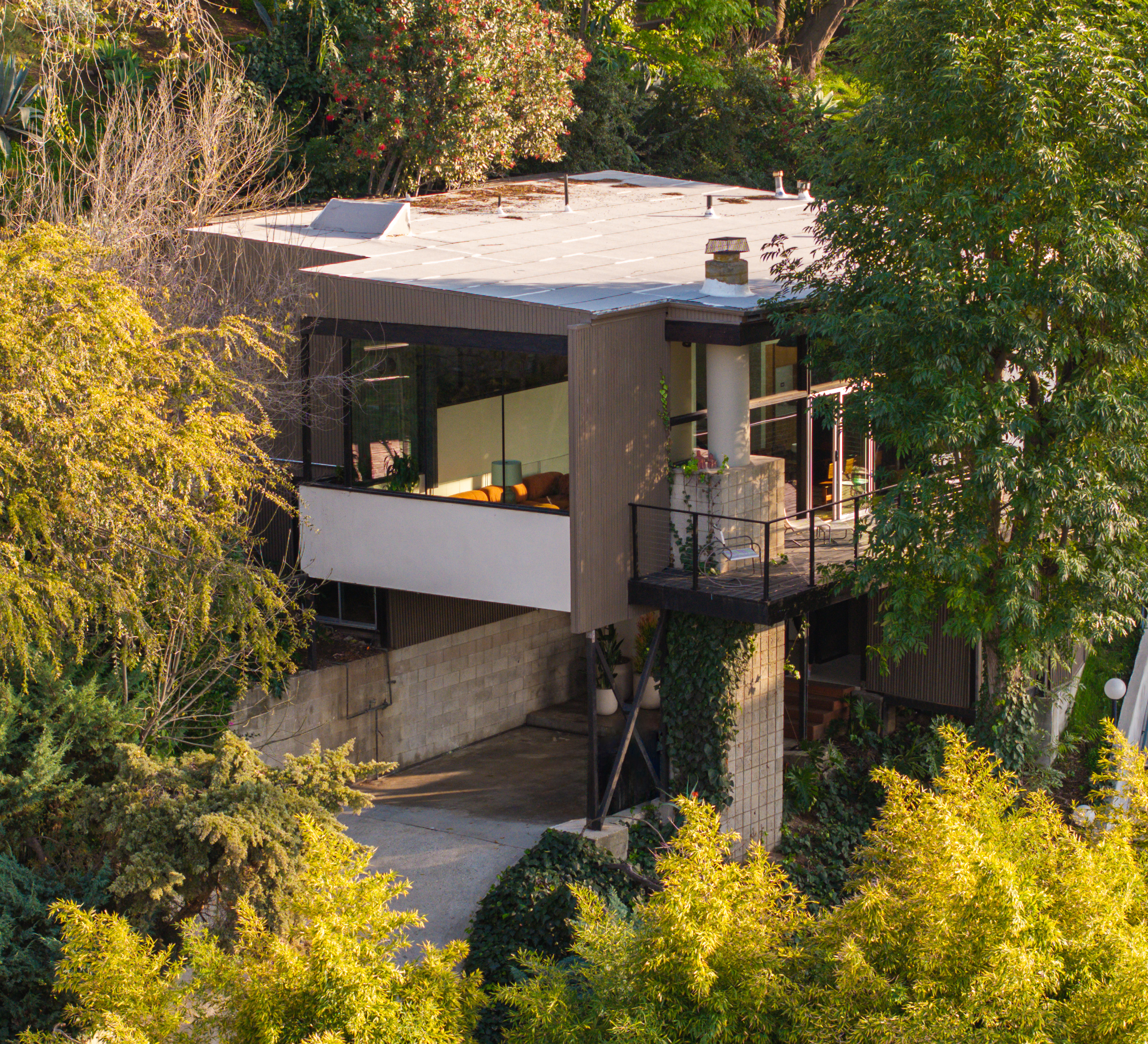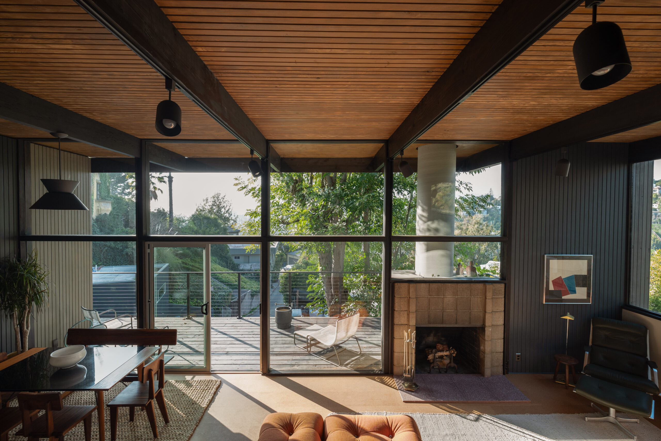 Presenting this masterfully restored Mid-Century gem in the heart of Silverlake. Graced with striking street presence, enter to stunning and fastidiously renovated interiors, teeming with authentic style and charm. From the double height living room, walls of glass frame city and mountain views with light flowing into the interior. Three separate bedrooms, each with meticulous detail, were honed for modern living. The primary is beautifully appointed with subtle built-ins, a stunning tiled bathroom, a skylight that bathes it with light, and city views above the living room. Every detail was hand picked to refine and retain the home's timeless style: from hardware by Rejuvenation, to the elegant kitchen by Reform with Bertazzoni appliances. The outdoor patio and deck have been reconfigured, offering al-fresco dining spaces with views and lush greenery. A bonus lot above is included in the sale, perfect for one with a vision. Brought into the modern era with new insulation, electrical panel, HVAC, windows, and a torch-down roof, your dream Mid-Century life is a key-turn away.