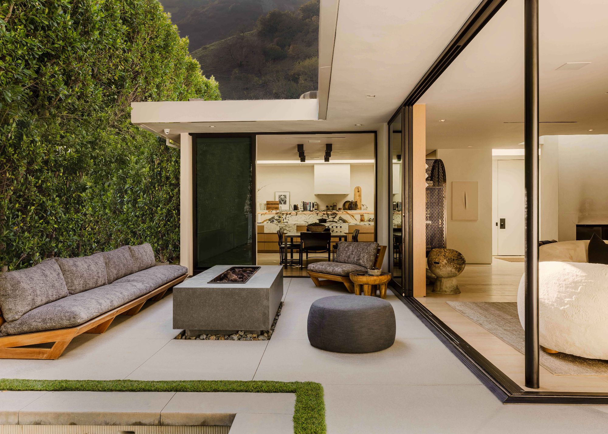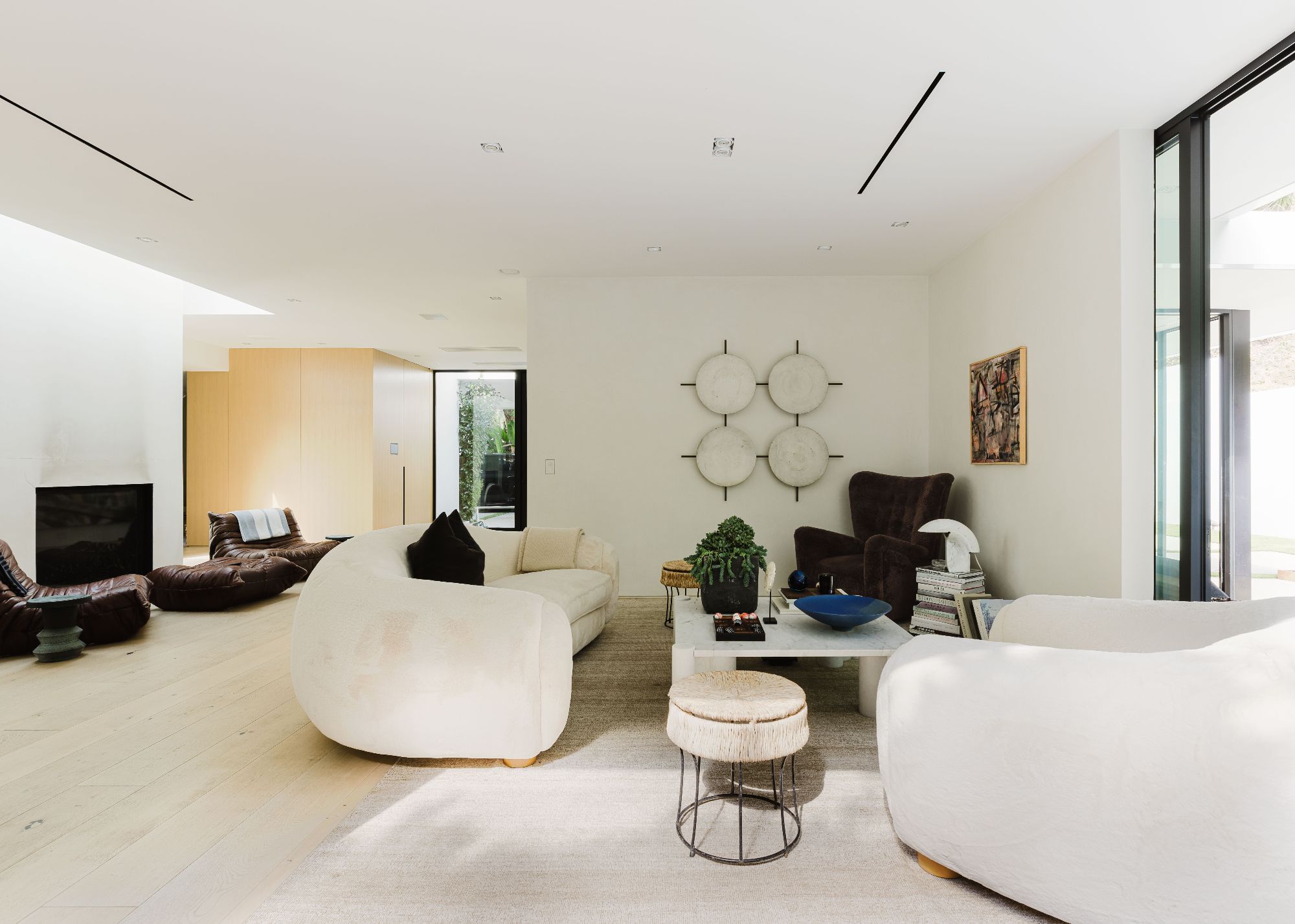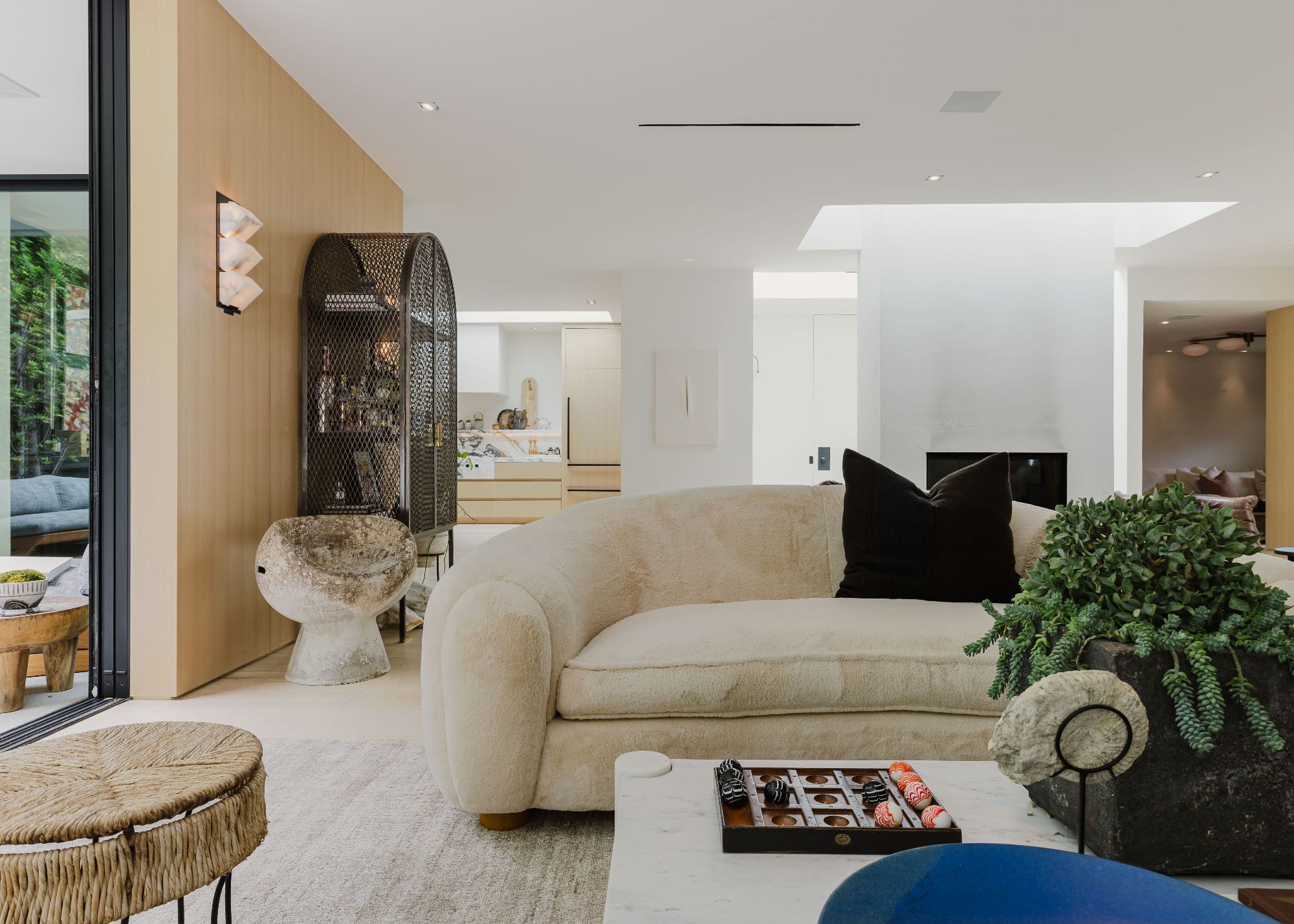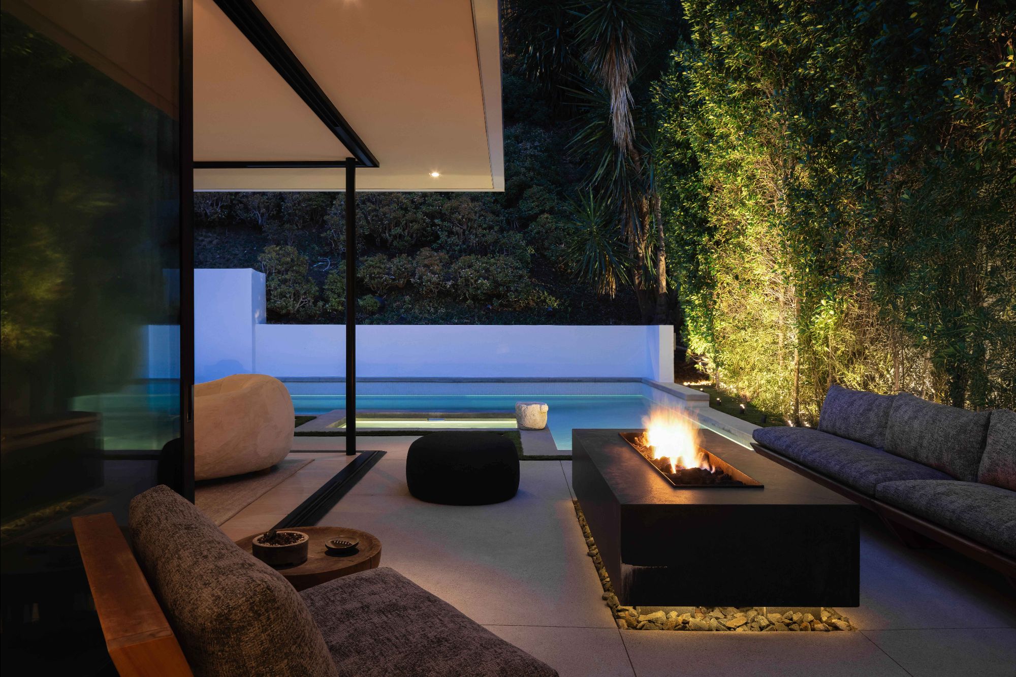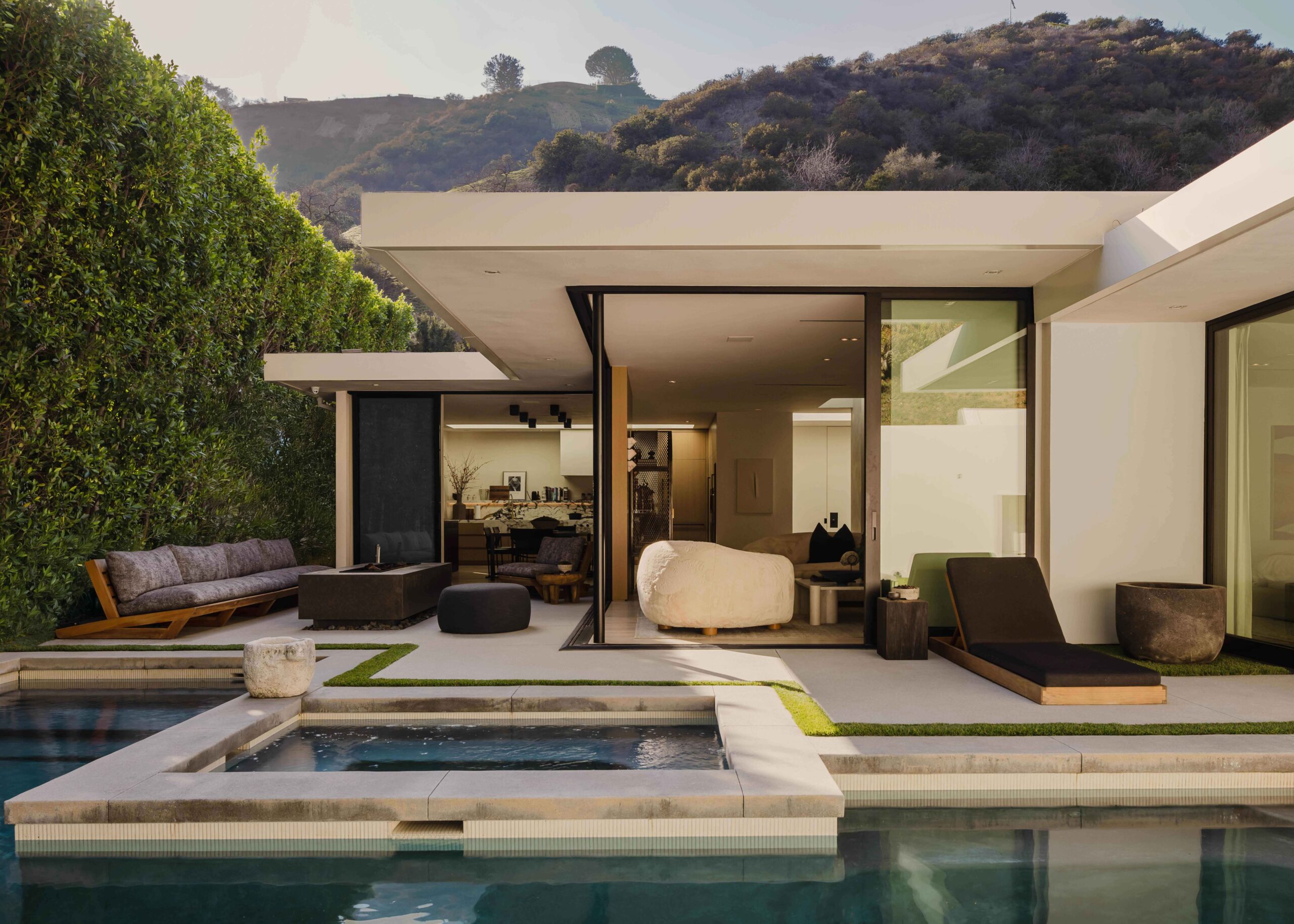 Tucked away just north of Sunset and the iconic Beverly Hills Hotel, 1952 North Beverly Drive is a sleek, single-story residence that balances refined international design with effortless California living. Designed by Yoram LePair (a Gehry Partners alum) and illuminated to perfection by noted lighting designer Mark Raissen (Sunset Tower Bar, San Vicente Bungalows), the home is defined by refined silhouettes, an abundance of natural light, and fluid indoor–outdoor connection. Expanses of floor-to-ceiling glass, meticulously detailed rift-oak paneling, and wide French oak planks in generous proportions set a sophisticated tone. The kitchen is conceived for openness and connection, inviting conversation and versatile entertaining with a large, centralized dining area as a natural gathering space for shared meals. Appliances include premier selections from Sub-Zero, Wolf, and Miele, along with wine refrigeration for 300 bottles and a full-service wet bar detailed in blackened steel, ebony millwork, and honed Saint Laurent marble. A formal living space orients toward the yard and pool, capturing views of the softly rising hillside that extend toward the gated entrance of Franklin Canyon Park. The primary suite offers an expansive walk-in wardrobe with thoughtfully designed dressing areas, and a luxurious bath finished in stone and tailored millwork, with sleek pocket doors that blur thresholds with graceful simplicity. A secondary bedroom—presently configured as a den—serves as a retreat for entertainment and quiet conversation, with a discreetly integrated full bath concealed behind sculpted oak walls. Outdoors evoke the atmosphere of a boutique hotel, with a firepit lounge framed by teak sofas, a pool and spa detailed in muted Japanese tile, and a large fireplace thoughtfully incorporated into a bespoke garden wall. Multiple SONANCE speaker systems complete the setting, creating a fully immersive environment for an activated outdoor lifestyle. Intelligent living is defined by Control4, Lutron, and AI-driven automation. The detached guest casita (fully permitted with its own address at 1954 North Beverly) offers the ultimate in private accommodation, with a stone-clad bathroom, custom wardrobe, concealed refrigeration, and dedicated storage. A separate laundry/tech room includes additional wine refrigeration and generous organizational space. The restrained exterior façade blends discretion and design, softened by native landscape architecture from Elysian Landscapes. Covered parking is secured behind an 8-foot louvered steel gate, maintaining the residence’s understated presence.