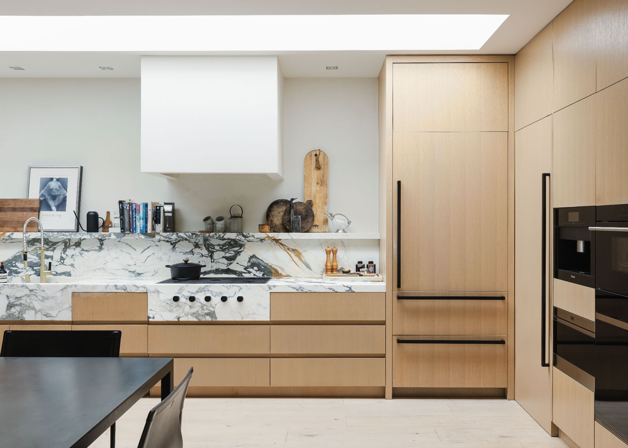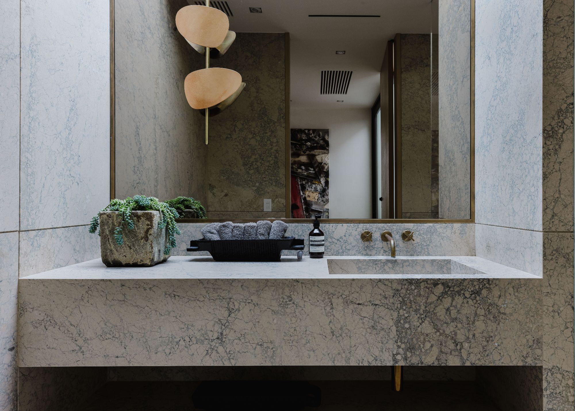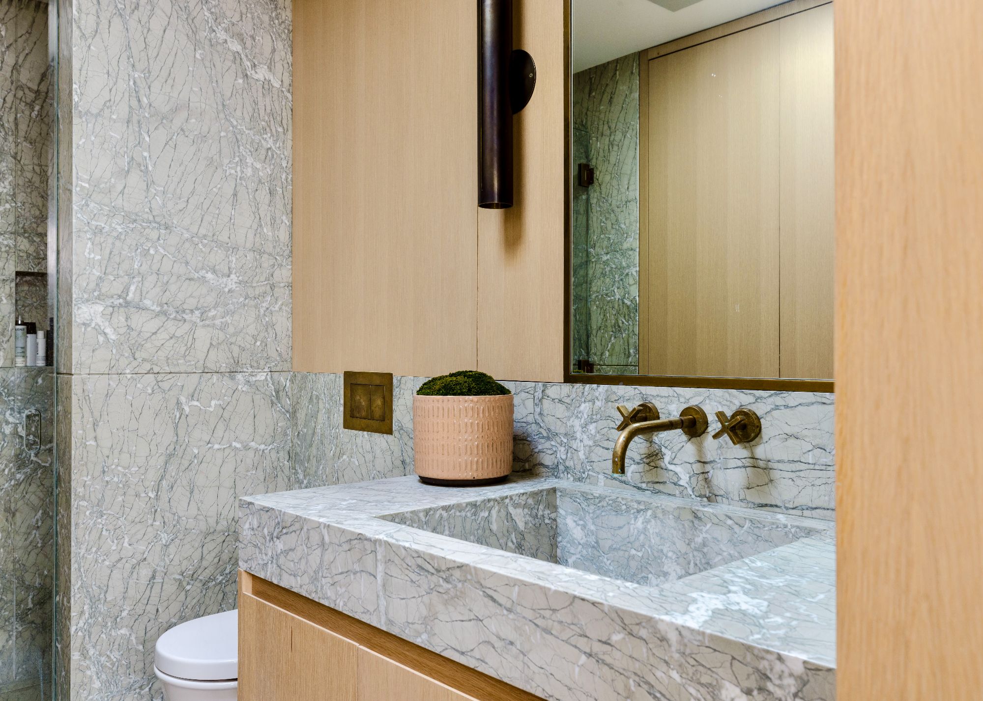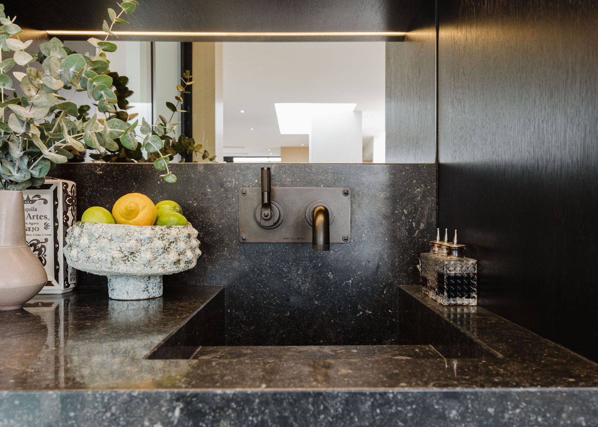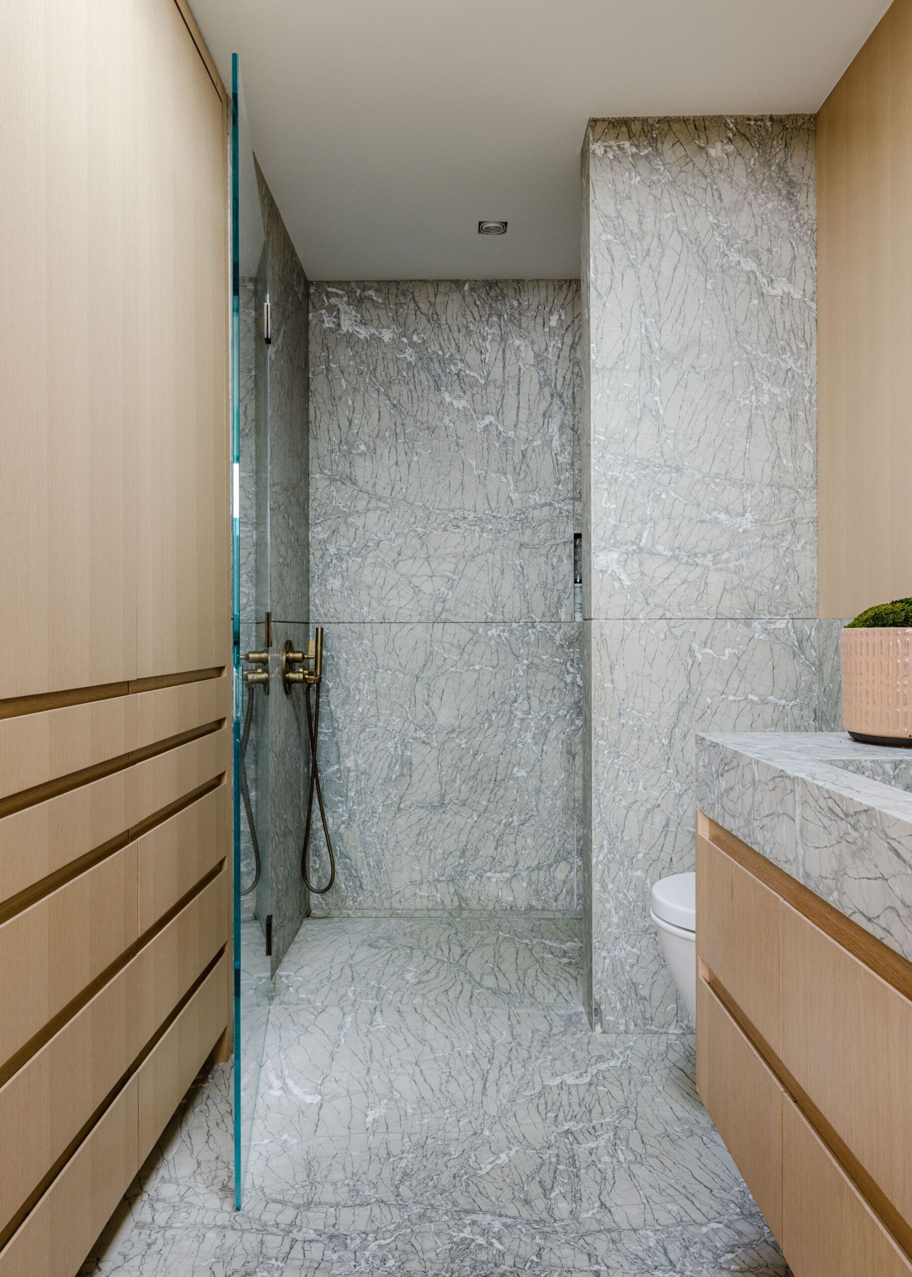 Tucked away just north of Sunset and the iconic Beverly Hills Hotel, 1952 North Beverly Drive is a sleek, single-story residence that balances refined international design with effortless California living. Designed by Yoram LePair (a Gehry Partners alum) and illuminated to perfection by noted lighting designer Mark Raissen (Sunset Tower Bar, San Vicente Bungalows), the home is defined by refined silhouettes, an abundance of natural light, and fluid indoor–outdoor connection. Expanses of floor-to-ceiling glass, meticulously detailed rift-oak paneling, and wide French oak planks in generous proportions set a sophisticated tone. The kitchen is conceived for openness and connection, inviting conversation and versatile entertaining with a large, centralized dining area as a natural gathering space for shared meals. Appliances include premier selections from Sub-Zero, Wolf, and Miele, along with wine refrigeration for 300 bottles and a full-service wet bar detailed in blackened steel, ebony millwork, and honed Saint Laurent marble. A formal living space orients toward the yard and pool, capturing views of the softly rising hillside that extend toward the gated entrance of Franklin Canyon Park. The primary suite offers an expansive walk-in wardrobe with thoughtfully designed dressing areas, and a luxurious bath finished in stone and tailored millwork, with sleek pocket doors that blur thresholds with graceful simplicity. A secondary bedroom—presently configured as a den—serves as a retreat for entertainment and quiet conversation, with a discreetly integrated full bath concealed behind sculpted oak walls. Outdoors evoke the atmosphere of a boutique hotel, with a firepit lounge framed by teak sofas, a pool and spa detailed in muted Japanese tile, and a large fireplace thoughtfully incorporated into a bespoke garden wall. Multiple SONANCE speaker systems complete the setting, creating a fully immersive environment for an activated outdoor lifestyle. Intelligent living is defined by Control4, Lutron, and AI-driven automation. The detached guest casita (fully permitted with its own address at 1954 North Beverly) offers the ultimate in private accommodation, with a stone-clad bathroom, custom wardrobe, concealed refrigeration, and dedicated storage. A separate laundry/tech room includes additional wine refrigeration and generous organizational space. The restrained exterior façade blends discretion and design, softened by native landscape architecture from Elysian Landscapes. Covered parking is secured behind an 8-foot louvered steel gate, maintaining the residence’s understated presence.