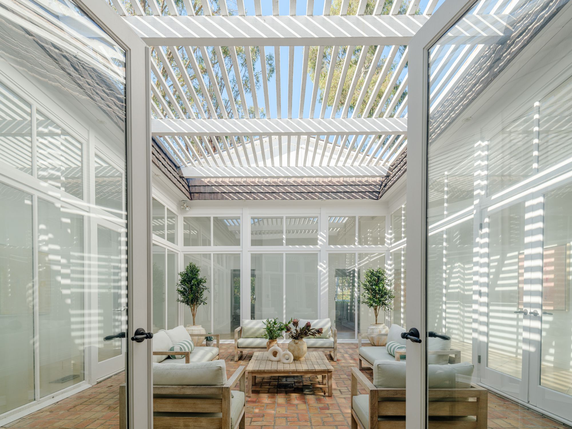 The Polo House - A single-level architectural estate on ~1.6 acres inside the south gates of Rolling Hills. The Polo House is a newly elevated single-level estate set on a rare ~1.6-acre street-to-street parcel inside the south gates of Rolling Hills. With more than 5,100 square feet of thoughtfully composed space, the home moves in long horizontal lines, connecting rooms through glass, gardens, and natural light that shifts throughout the day. A lattice-covered courtyard sits at the heart of the residence. It functions as an open-air living room that draws sunlight into the great room, the library, and the kitchen. French doors open to sculpted gardens, broad lawns, and a pool terrace that creates an effortless indoor and outdoor rhythm ideal for both everyday living and larger gatherings. The interiors carry a warm and modern California character. Exposed beams, hand-washed wood, and a soft neutral palette shape rooms that feel both elevated and comfortable. The bedroom wing offers a sense of calm, with each room oriented toward greenery and filtered light. Beyond the main living areas, pathways lead to the estate's fully operational equestrian grounds. A classic board and batten barn, generous turnouts, and mature trees give the property its identity and its name. Few properties in Rolling Hills combine this level of land, privacy, and usability with a true single-level footprint. Beautifully renewed and architecturally grounded, The Polo House stands as one of the strongest offerings in Rolling Hills. It is a rare blend of acreage, design, and ease within the most private gated city in Los Angeles.