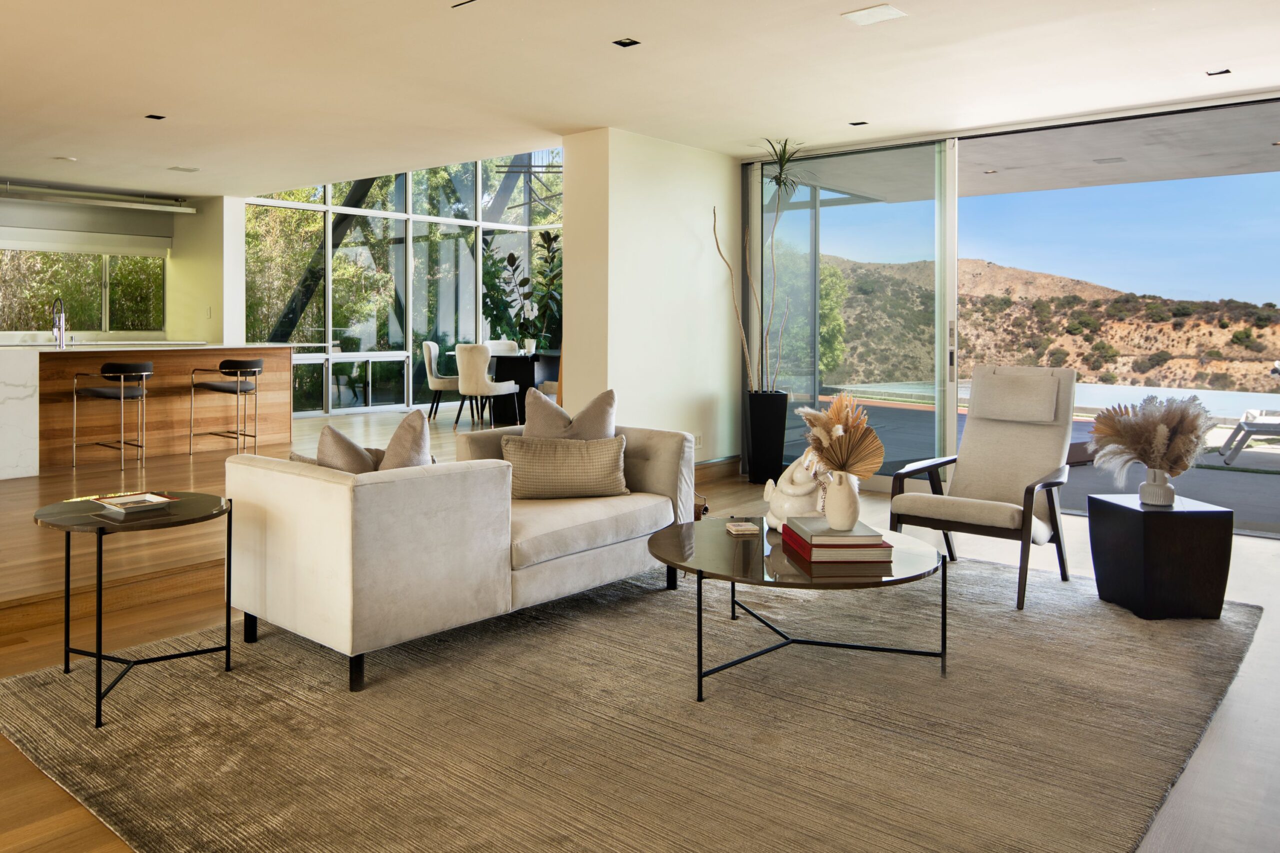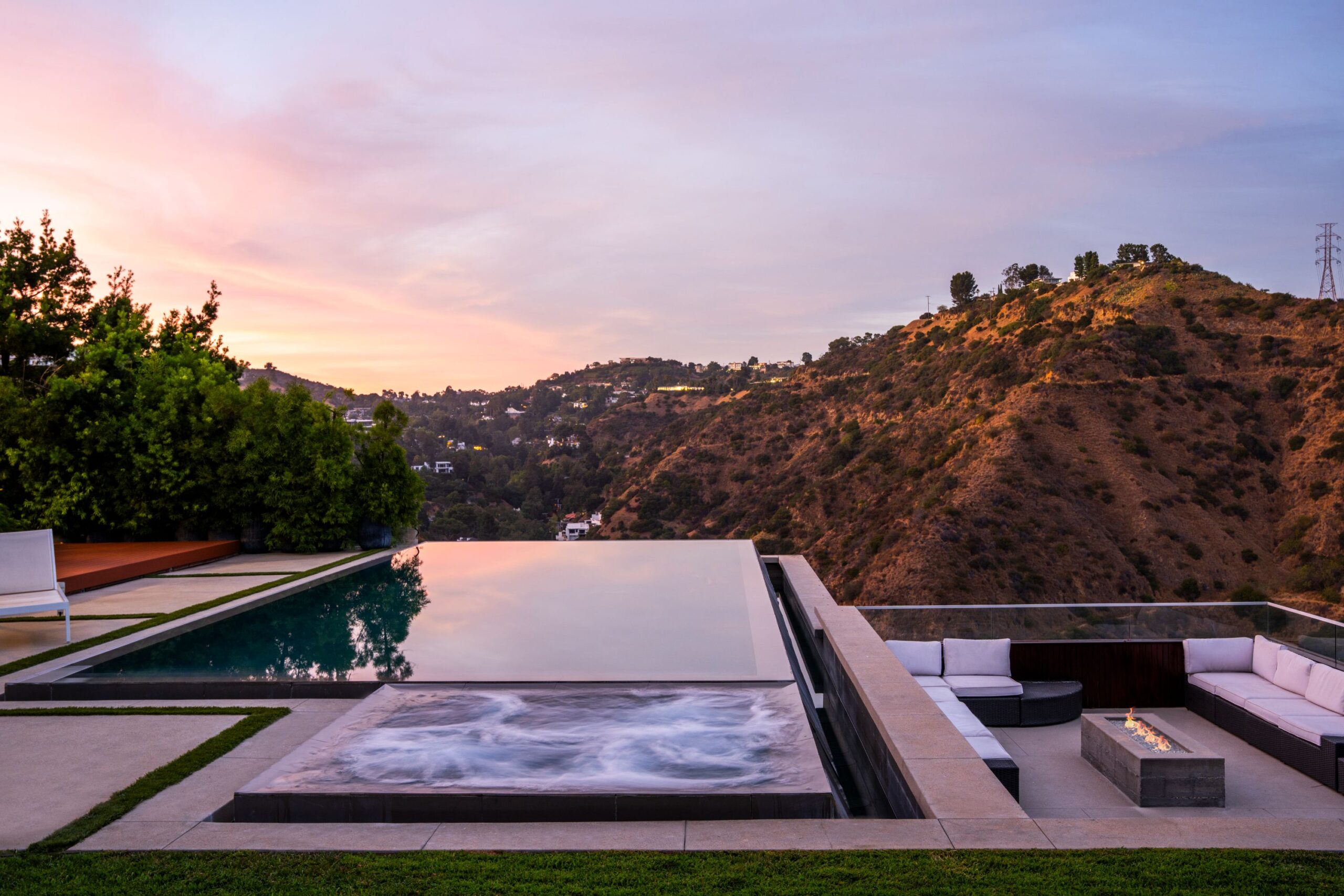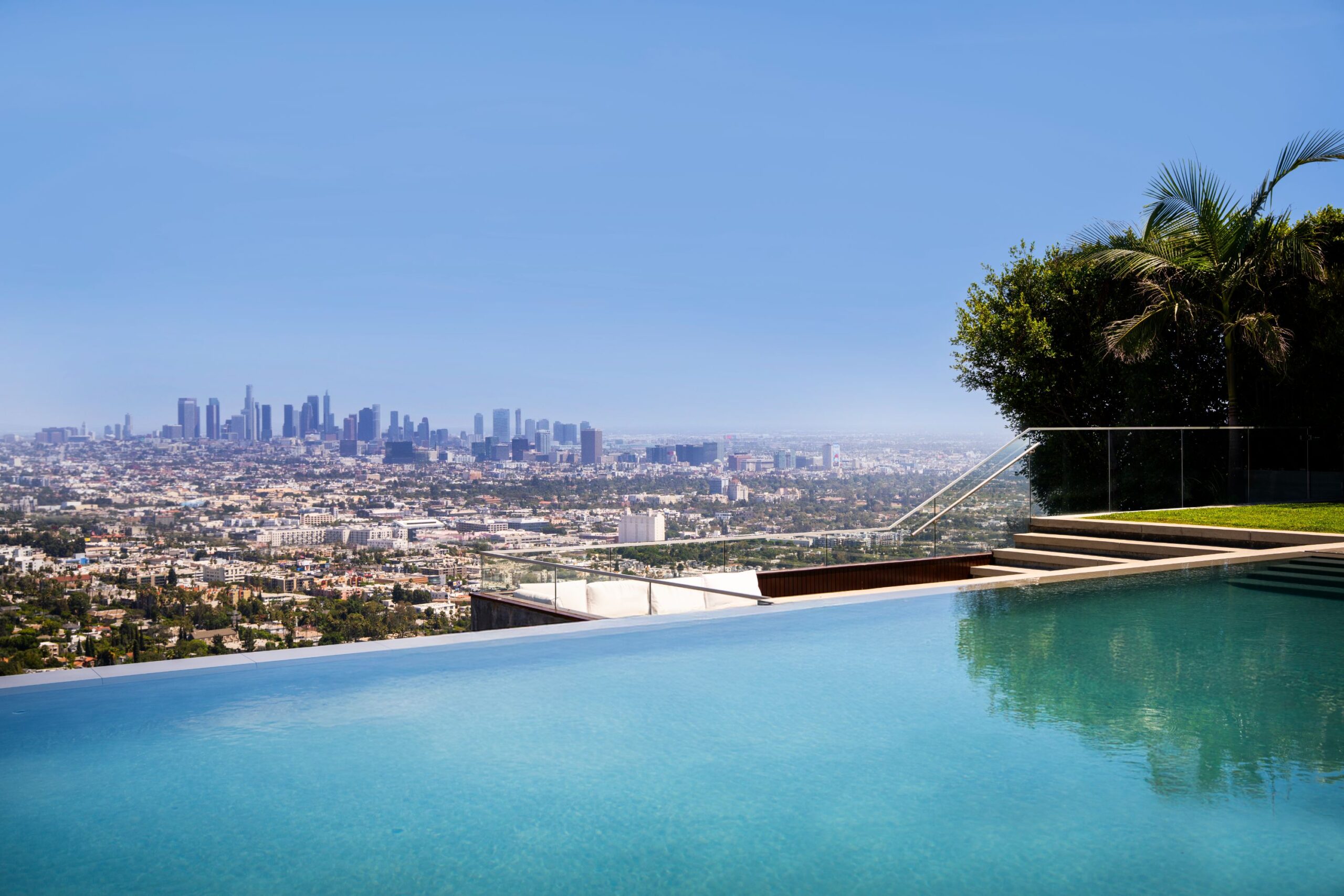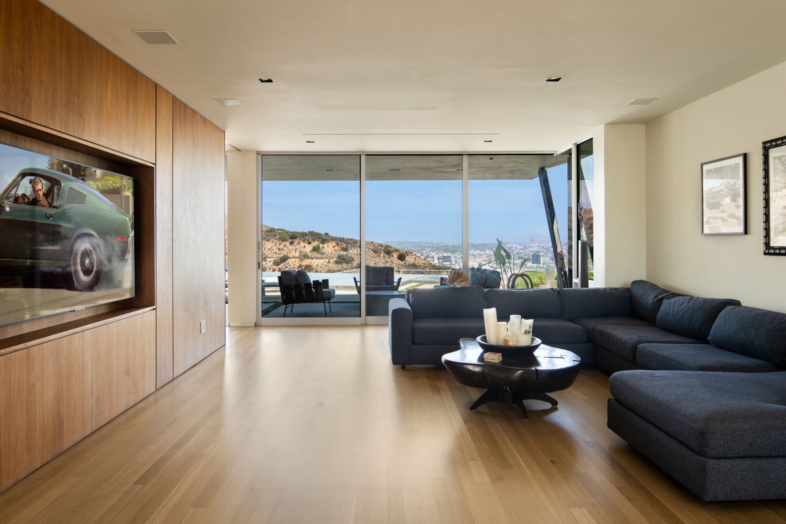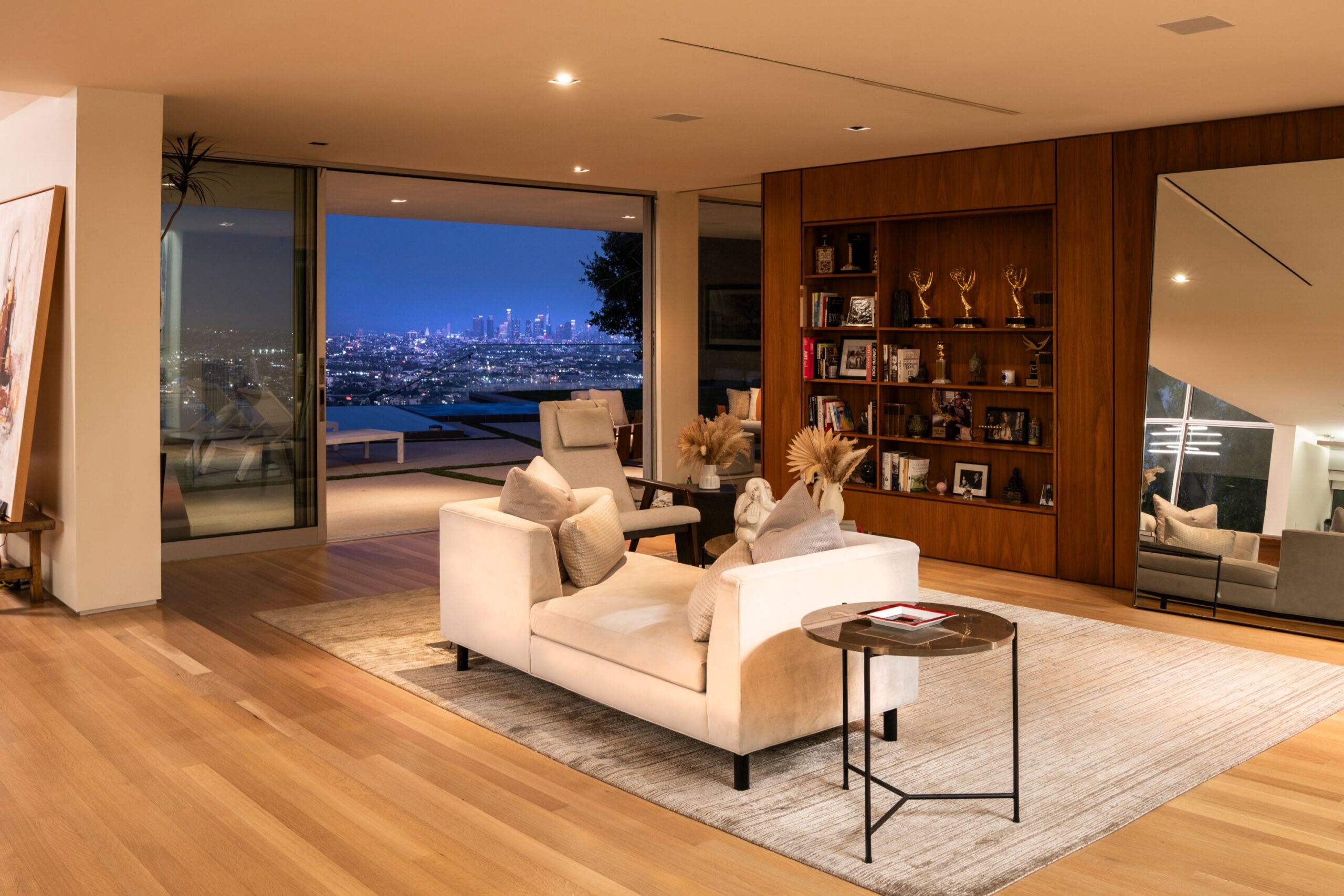 Behind gates on a rare flat lot in Mount Olympus, this private retreat captures unobstructed panoramic views that stretch from downtown Los Angeles to the ocean. A grand motor court welcomes you to a nearly 6,200 SF residence designed for elevated living and effortless entertaining. A soaring two-story glass conservatory, expansive living and dining rooms, and an open-concept kitchen with sliding glass doors invite seamless indoor-outdoor living while overlooking the skyline. The backyard is one of the few truly flat lots in the hills, featuring an infinity edge pool, spa, fire pit lounge, multiple patios, and a grassy lawn, all set against a world-class backdrop. The primary suite opens to its own private terrace with breathtaking views and includes a sitting area, spa-inspired bath, and custom walk-in closet. Three additional bedrooms and five bathrooms complete the spacious layout. Perfectly positioned above the legendary Sunset Strip and moments from West Hollywood, Beverly Hills, and Hollywood, this is a rare chance to own a private retreat that combines scale, privacy, and one of the most iconic views in Los Angeles. A lifestyle reserved for the few.