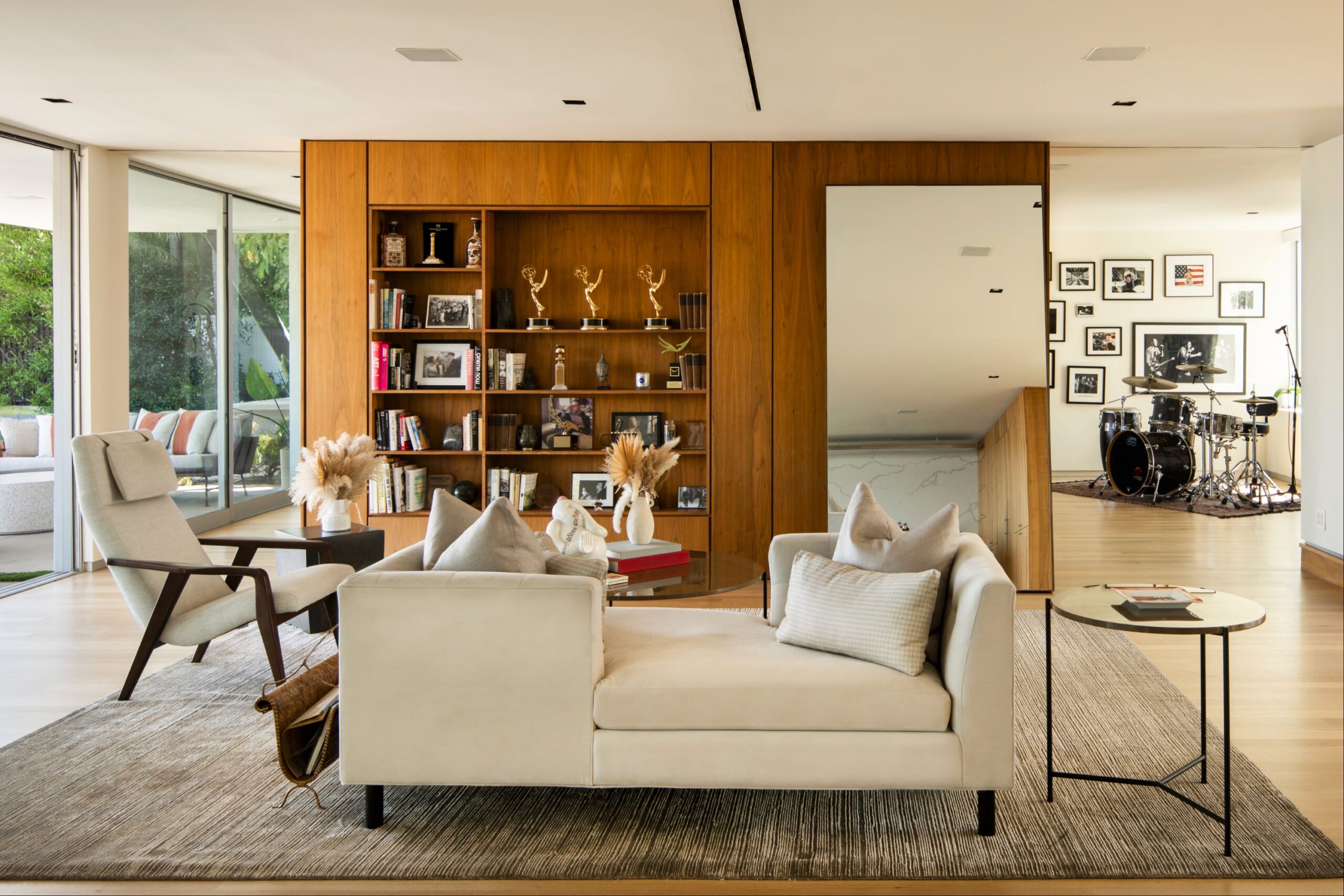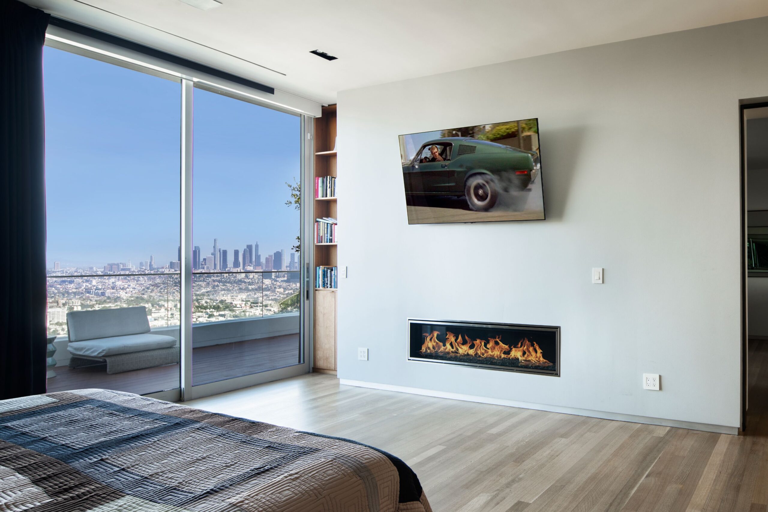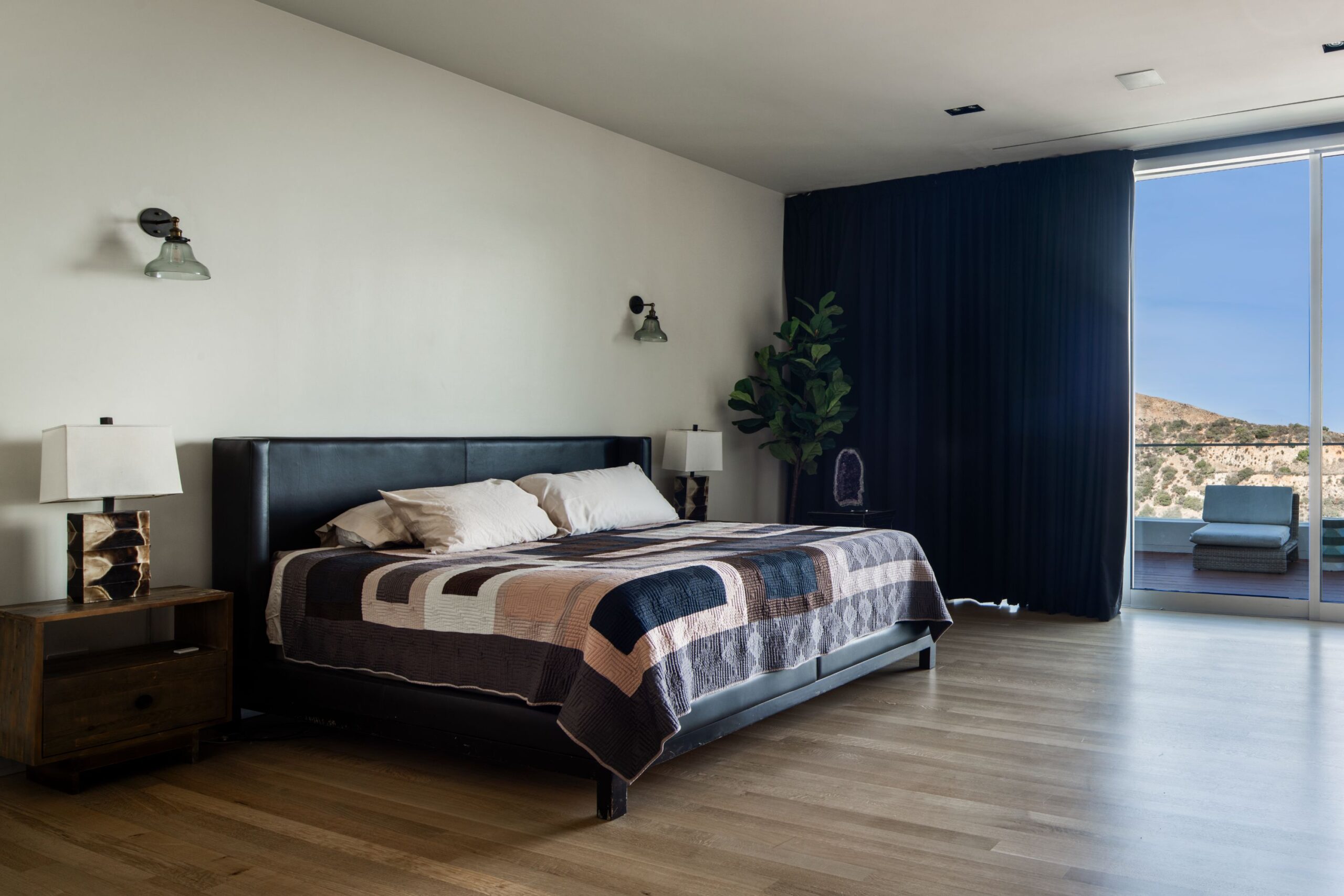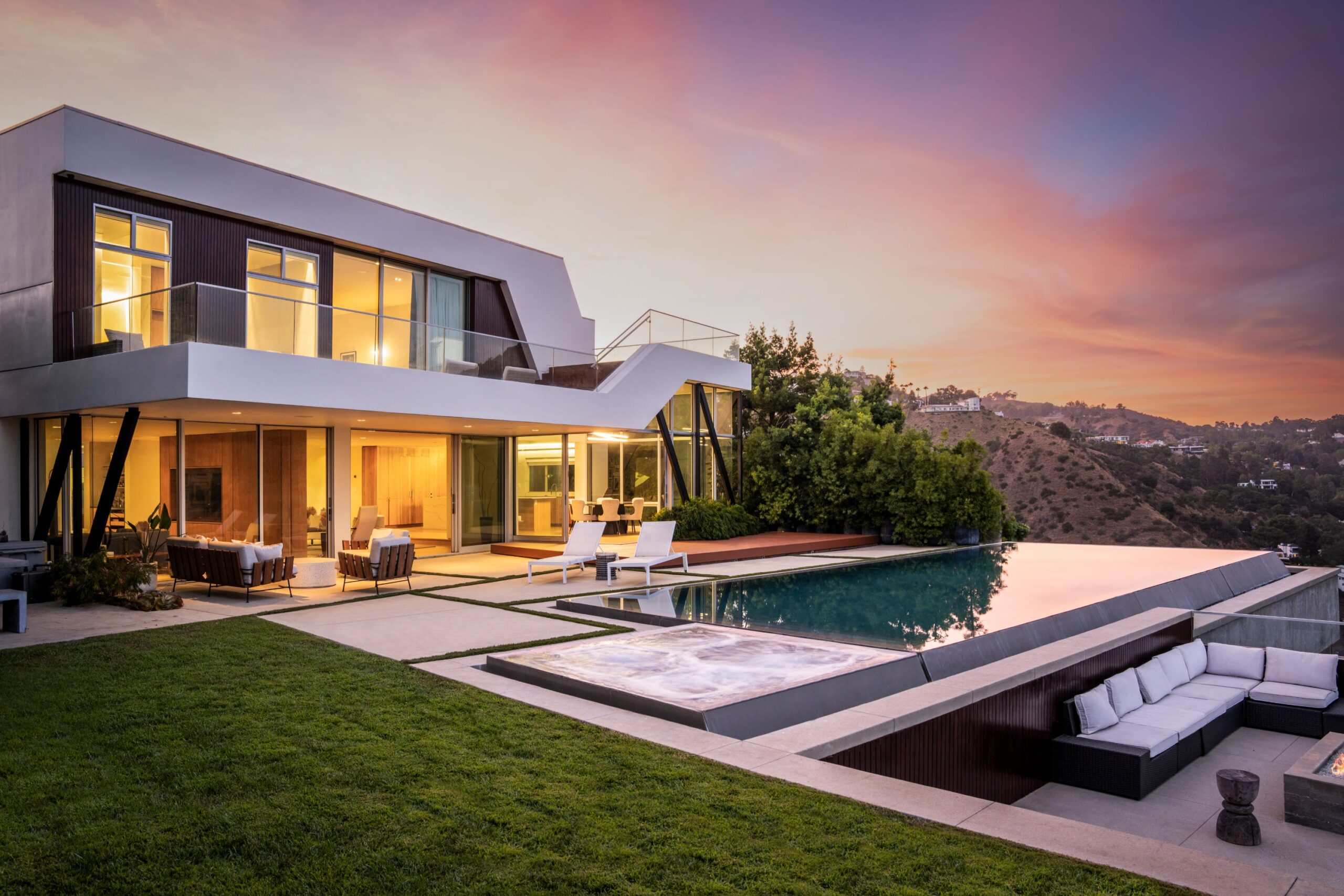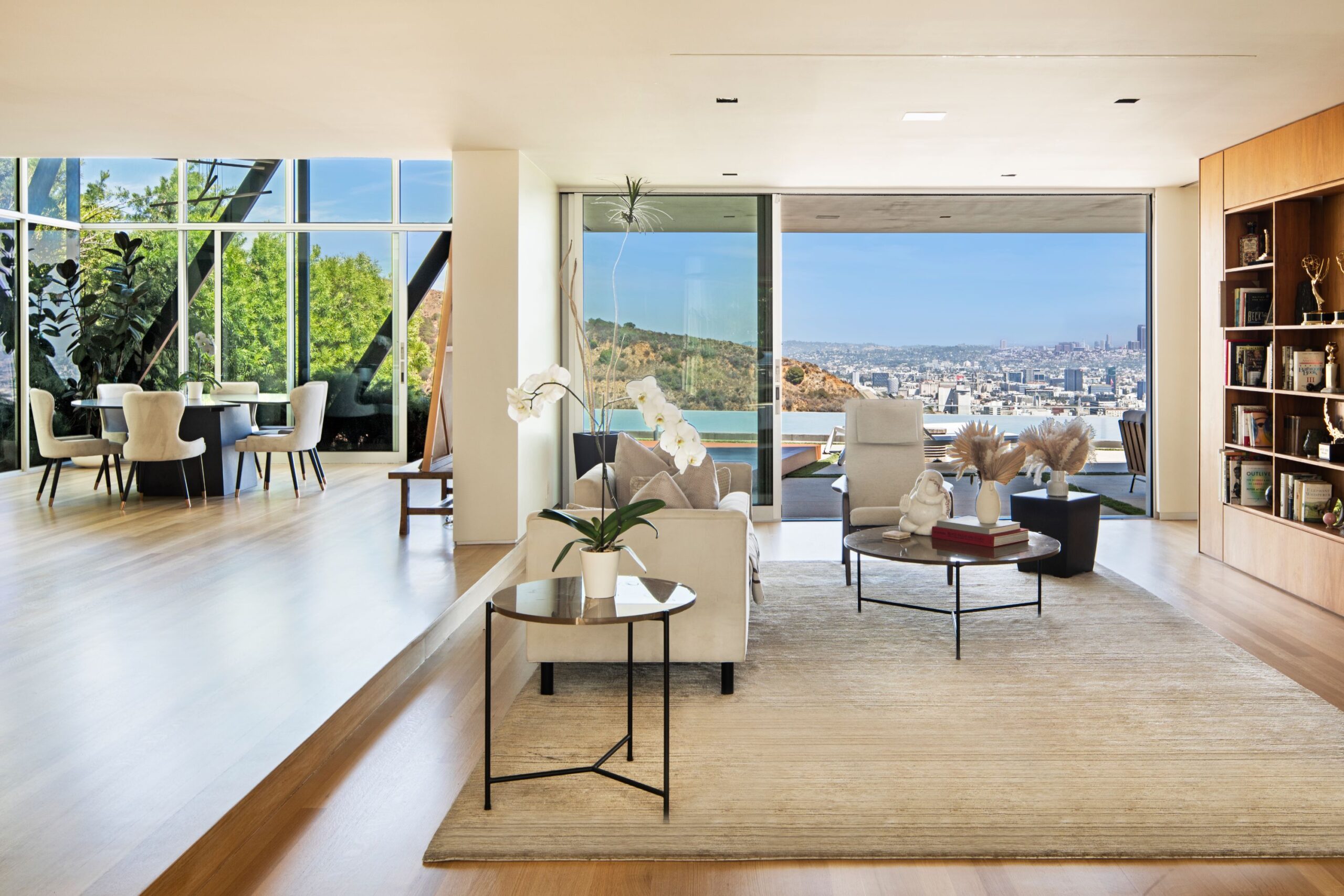 Behind gates on a rare flat lot in Mount Olympus, this private retreat captures unobstructed panoramic views that stretch from downtown Los Angeles to the ocean. A grand motor court welcomes you to a nearly 6,200 SF residence designed for elevated living and effortless entertaining. A soaring two-story glass conservatory, expansive living and dining rooms, and an open-concept kitchen with sliding glass doors invite seamless indoor-outdoor living while overlooking the skyline. The backyard is one of the few truly flat lots in the hills, featuring an infinity edge pool, spa, fire pit lounge, multiple patios, and a grassy lawn, all set against a world-class backdrop. The primary suite opens to its own private terrace with breathtaking views and includes a sitting area, spa-inspired bath, and custom walk-in closet. Three additional bedrooms and five bathrooms complete the spacious layout. Perfectly positioned above the legendary Sunset Strip and moments from West Hollywood, Beverly Hills, and Hollywood, this is a rare chance to own a private retreat that combines scale, privacy, and one of the most iconic views in Los Angeles. A lifestyle reserved for the few.