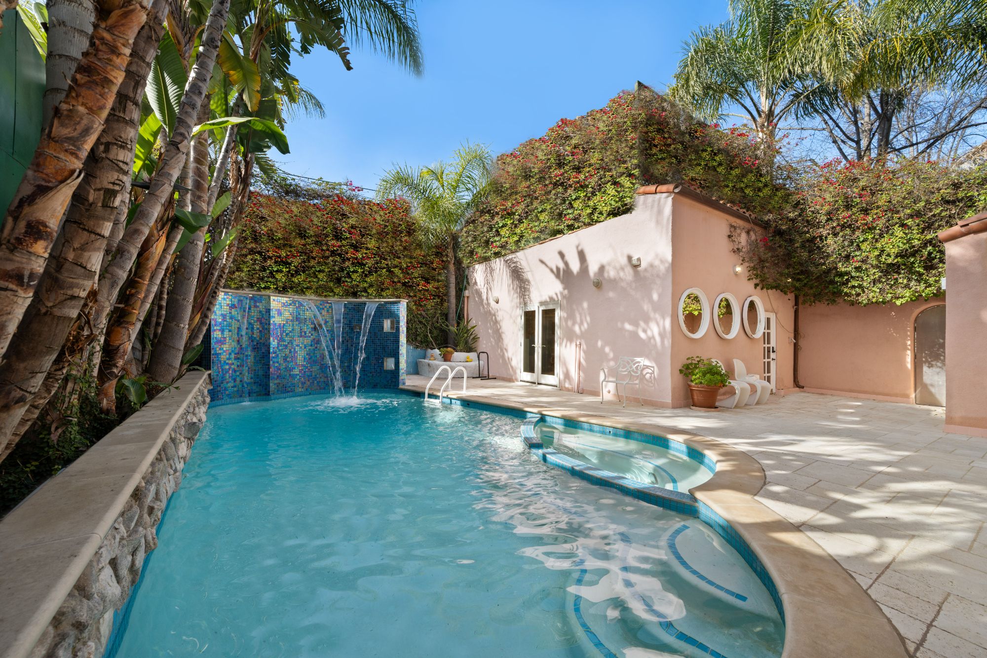 Nestled behind gates in the heart of Beverly Hills, this classic Hollywood hideaway is teeming with old-world Spanish beauty at every turn. Enter through a lush driveway to timeless interiors, the entryway flanked by grand living and dining rooms. Past the gourmet kitchen and breakfast nook lies a tranquil escape from the bustle of the city, with gorgeous greenery, al-fresco dining space, a glistening pool, and the elegant two car garage. Upstairs is sumptuously appointed with three grand suites, the garden facing both graced with private balconies. A stone's throw from the world's greatest shopping, dining, and sights, this is the key to the life you've always wanted to live.