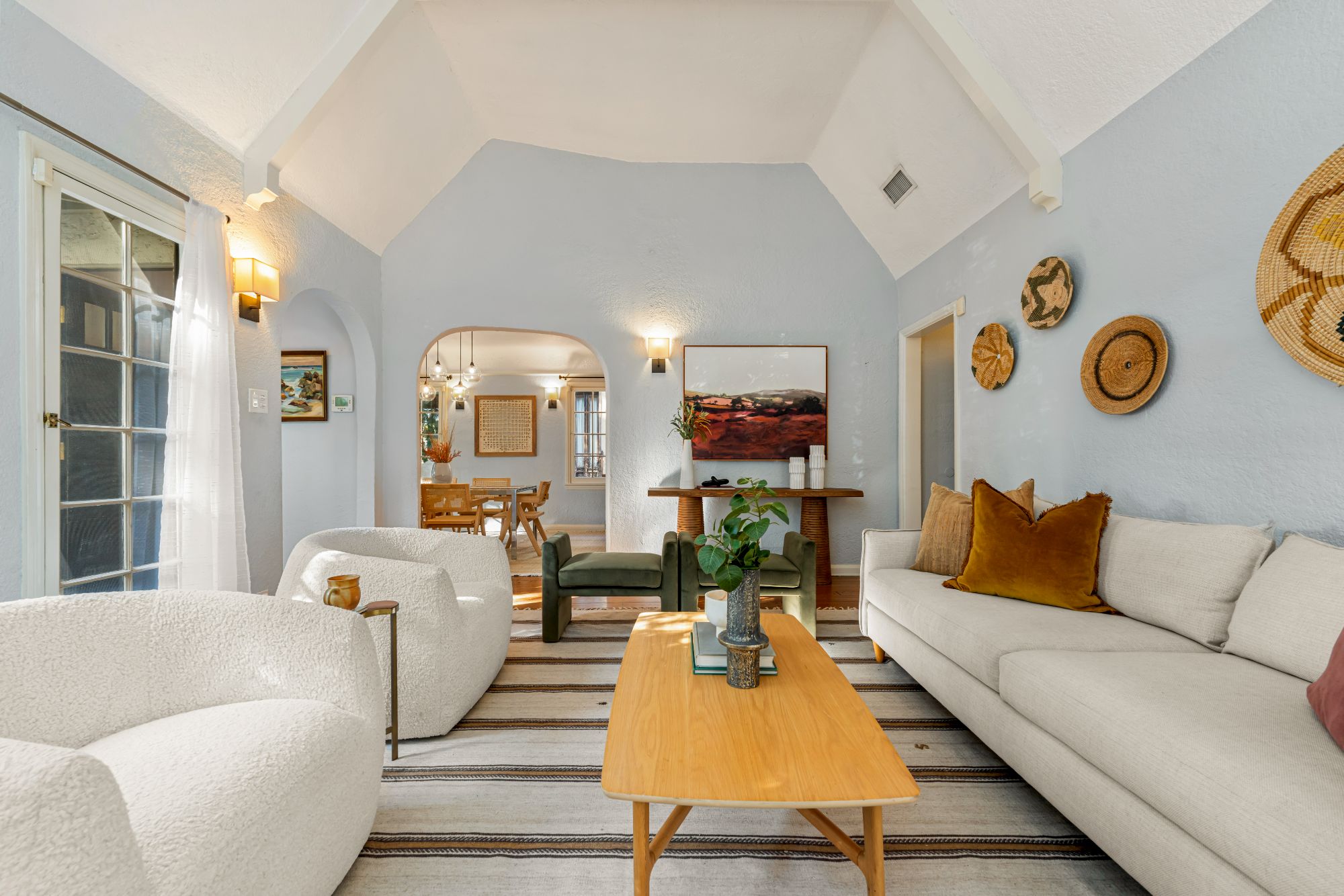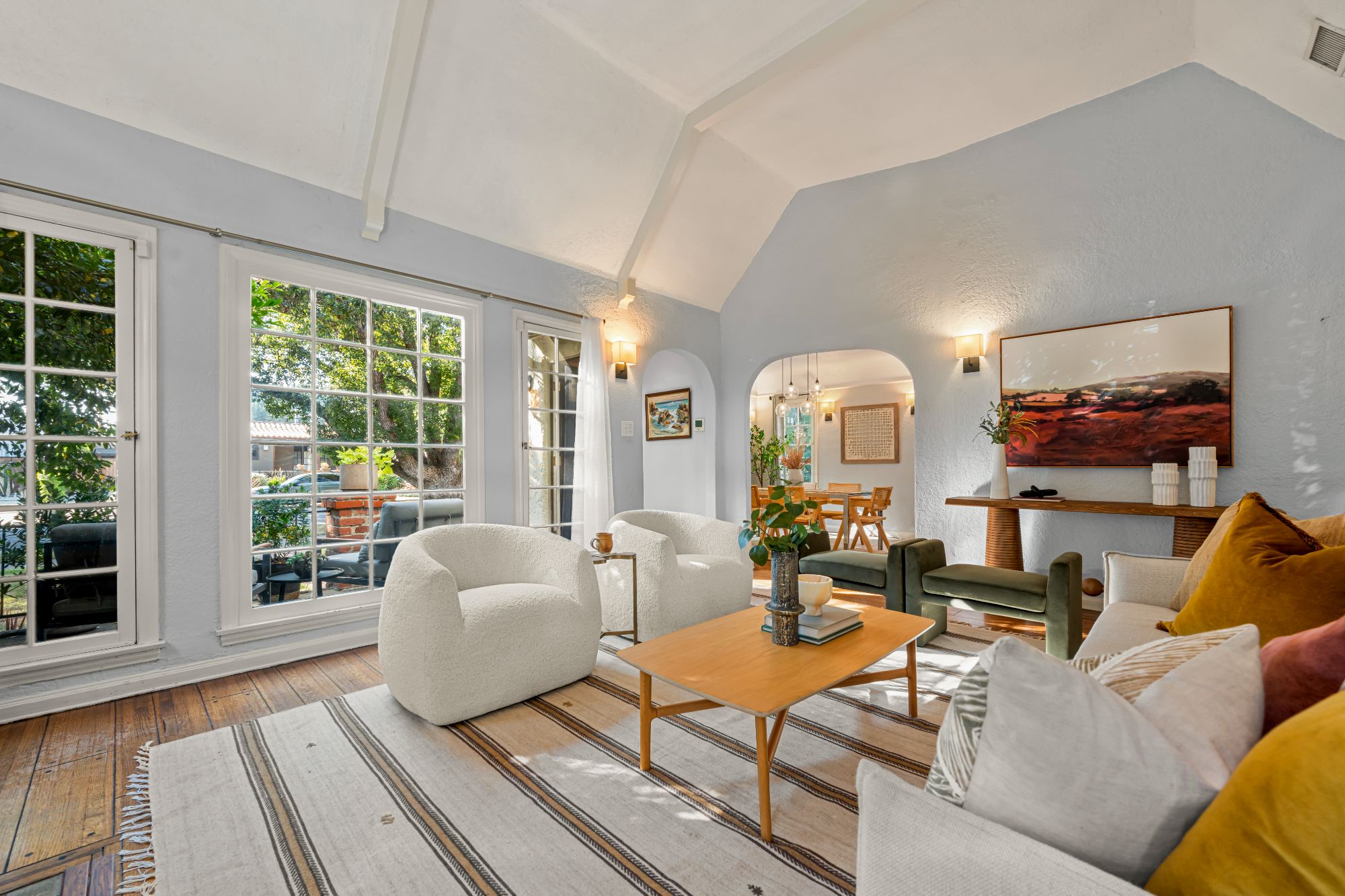 Introducing this exquisite 1927 Tudor home, nestled in the coveted Westwood area. Beautifully updated to blend modern conveniences with timeless character and elegance. This property features a spacious living room adorned with expansive windows, vaulted ceilings, and a focal fireplace which seamlessly flows into the dining room. The dining room looks out onto the grassy front yard through more large windows and leads to the remodeled kitchen with granite counters, stainless steel appliances, and a quaint breakfast nook. The light filled kitchen opens onto a charming patio, lush backyard, and detached two car garage with great guest house/ADU potential. The primary suite has a walk-in closet and updated en suite bathroom. Two spacious bedrooms and elegantly updated bathrooms complete this stunning home. Additional features include refinished hardwood floors throughout, central heat and air, new water heater and new sewer line. This home is ideally located near award-winning Westwood Charter School district.