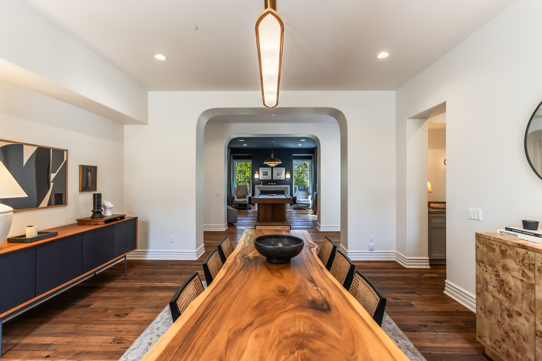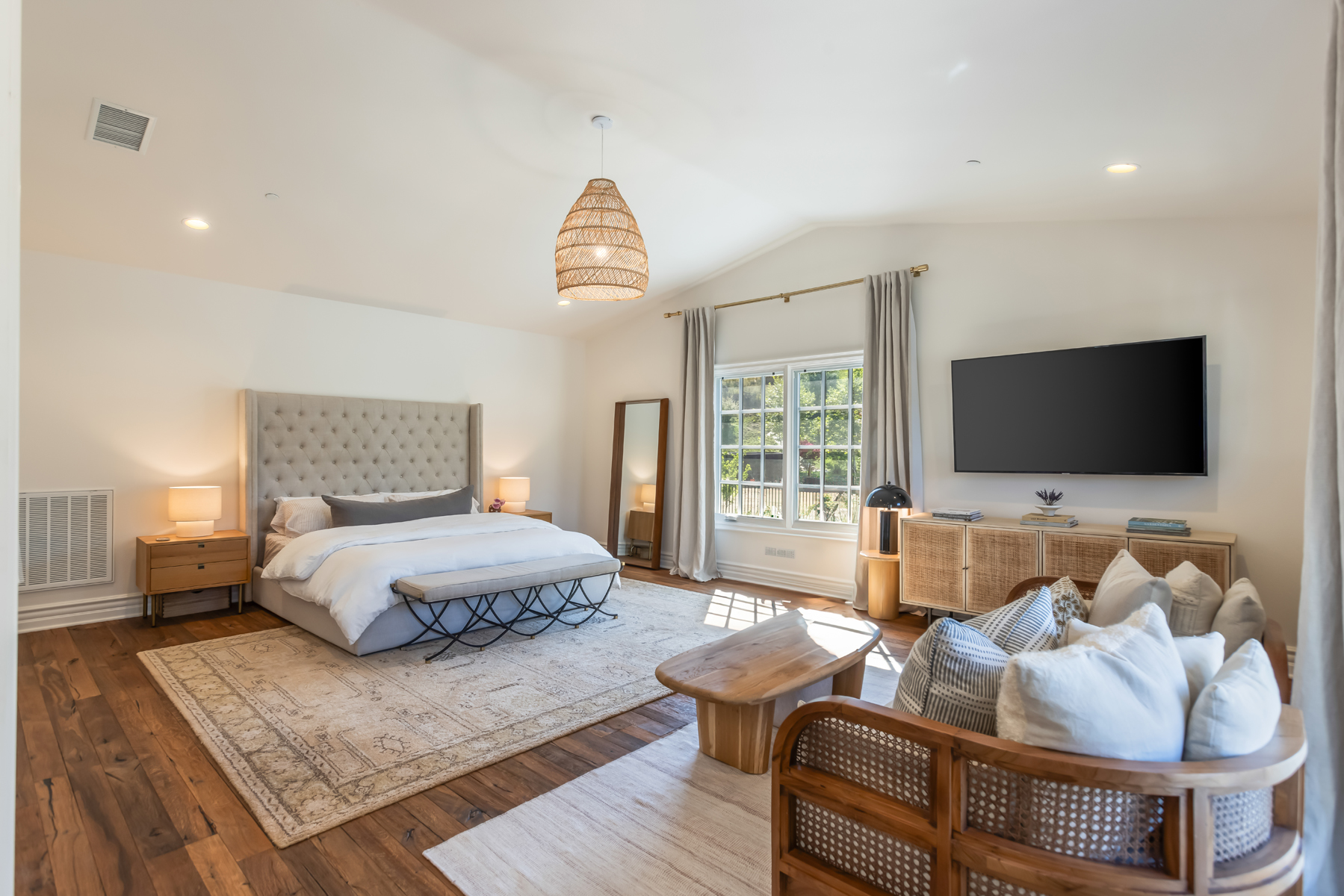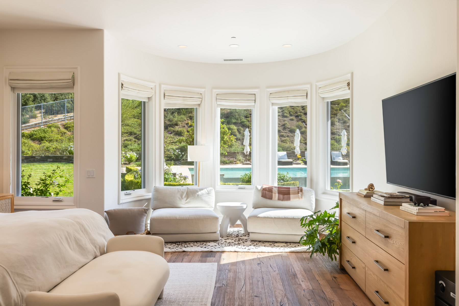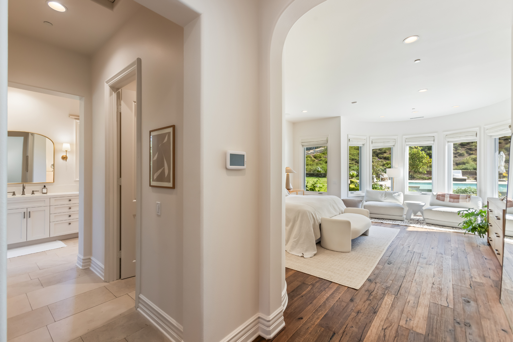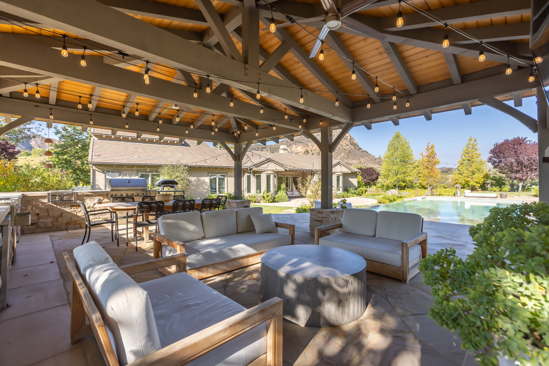 Welcome to a one-of-a-kind retreat, nestled behind private gates in the scenic hills of Agoura, where resort-style living meets timeless elegance. Located in the exclusive Vintage at Hidden Park community, this exquisitely remodeled estate sits on nearly 1.5 acres of beautifully landscaped grounds, offering the perfect blend of luxury, privacy, and natural beauty. The home features four spacious ensuite bedrooms, a thoughtfully designed nursery, and five fully remodeled bathrooms, each appointed with premium finishes and spa-inspired details. A completely renovated gourmet kitchen serves as the heart of the home, boasting top-of-the-line appliances, custom cabinetry, and designer stone countertopsideal for both everyday living and elevated entertaining.The open-concept floor plan is filled with natural light and high ceilings, creating a seamless flow between the expansive living and dining areas. The luxurious primary suite offers a peaceful sanctuary, complete with a spa-like bathroom and dual walk-in closets, providing both functionality and indulgence. For wellness enthusiasts, the home includes a private gym and sauna, creating a true at-home retreat.Designed with health and wellness in mind, this home features a whole-house water filtration system and non-toxic paint products throughout, ensuring a cleaner, healthier indoor environment for you and your loved ones.Step outside into your own resort-style backyard, where a sparkling pool is surrounded by lush landscaping, mature trees, and a tranquil al fresco dining area perfect for outdoor entertaining or quiet evenings under the stars. Additional features include a 4-car garage, ample driveway parking, and access to nearby hiking trails and open space preserves. All of this, just minutes from the iconic beaches of Malibu, offering the best of both hillside privacy and coastal lifestyle. This move-in ready estate has been meticulously upgraded and styled to perfection an exceptional opportunity to own a turnkey luxury home on nearly 1.5 acres in one of Agoura's most desirable gated communities.