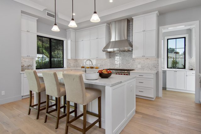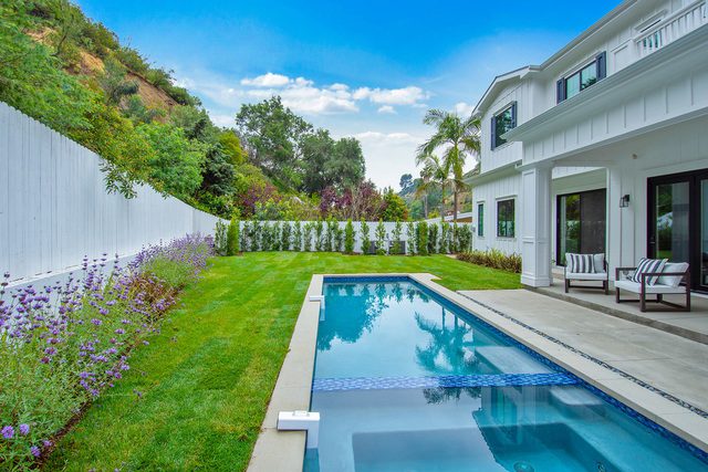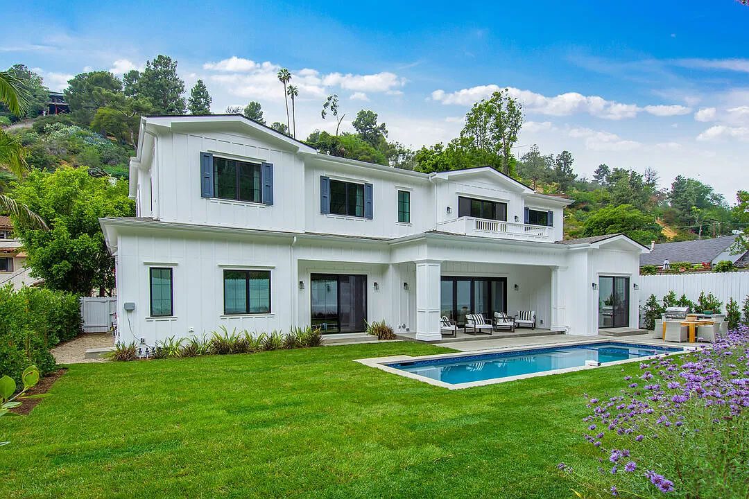 Located in highly coveted Bel Air, sits this exquisitely rebuilt, traditional style home. Entertain in the casual living space, anchored by a white brick fireplace, opening graciously to the breakfast nook and modern kitchen featuring stainless steel appliances, column refrigerator, marble counters and large center island. The second floor boasts sizable bedrooms with closets and luxurious ensuite baths. Unwind in the lavish master suite featuring a fireplace, vaulted ceilings, balcony, built-ins, soaker tub, glass shower and walk-in closets. Take advantage of California's sunshine in the expansive backyard with a tranquil pool, spa, patio and BBQ. The home's exquisitely designed floorplan and finishes include hardwood floors, contemporary light fixtures, laundry room, office and two car garage. End your days in your new home relaxing on the serene front porch.