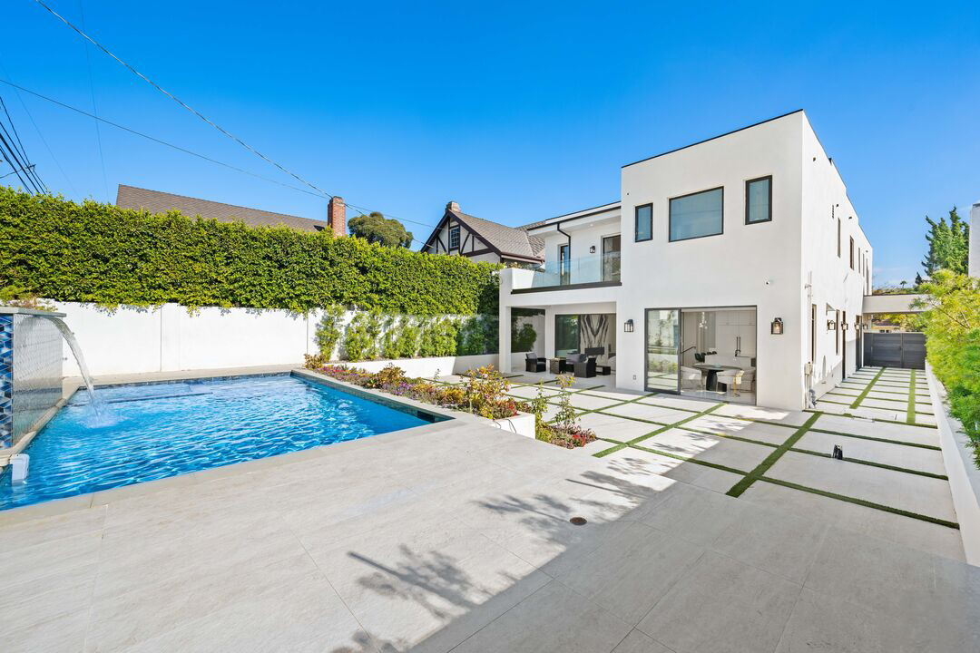 Exquisite Brand-New Contemporary Modern in Beverly Hills. Nestled in one of Beverly Hills' most sought-after neighborhoods, this brand-new contemporary modern residence offers an exceptional blend of sophisticated design, luxurious finishes, and state-of-the-art amenities. With striking curb appeal, expansive living spaces, and seamless indoor-outdoor flow, this home defines modern luxury.The open-concept floor plan is highlighted by 12-foot ceilings in the main living areas, creating a sense of grand volume. Expansive Fleetwood sliding windows and doors flood the space with natural light, while recessed lighting adds warmth and ambiance throughout. High-end finishes are evident at every turn, including Italian porcelain tile floors in the living areas and rich mahogany wood in all bedroom doors and floors. The chef's kitchen features Miele appliances, including a full-size refrigerator and freezer, an 8-burner stovetop, dual ovens, and a built-in espresso machine. A large central island provides ample space for meal prep and casual dining, and the kitchen flows effortlessly into the living and dining spaces perfect for entertaining guests or enjoying quiet family moments.Each of the home's bedrooms offers a serene retreat with spacious walk-in closets and spa-inspired bathrooms featuring custom finishes. The primary suite stands out with floor-to-ceiling sliding glass doors that open to a private balcony overlooking the pool and spa. The en-suite bathroom is a sanctuary, featuring an 8-jet soaking tub, a rain shower with steam, and sleek stone finishes.The expansive lower level includes a vast game room with 14-foot ceilings, ideal for a gym, home theater, or additional entertainment space. A full bar provides the perfect place to host guests, while the dedicated theater room offers a true cinematic experience. The fitness center is equipped to meet your every wellness need. An elevator ensures easy access to every level of the home.Outside, the beautifully landscaped grounds feature a stunning pool and spa with a waterfall feature, and a custom fire pit ideal for evening gatherings. The expansive backyard provides ample space for high-end entertaining or private relaxation. Smart home technology integrates lighting, climate control, security, and audio-visual systems, providing convenience at the touch of a button.Just moments from world-class shopping, dining, and entertainment, this property offers the ultimate in modern living, luxury, and convenience in one of the world's most prestigious locations.