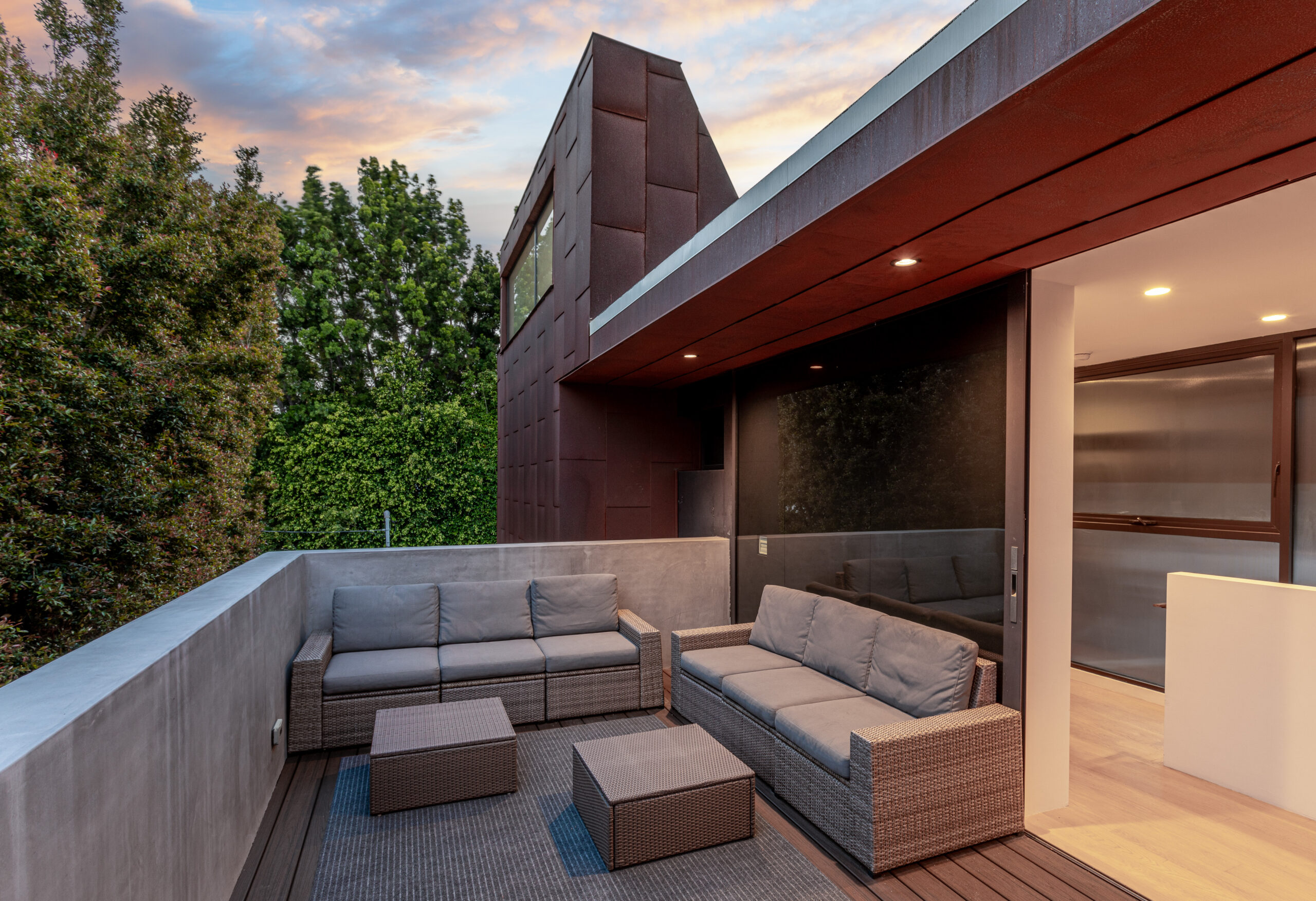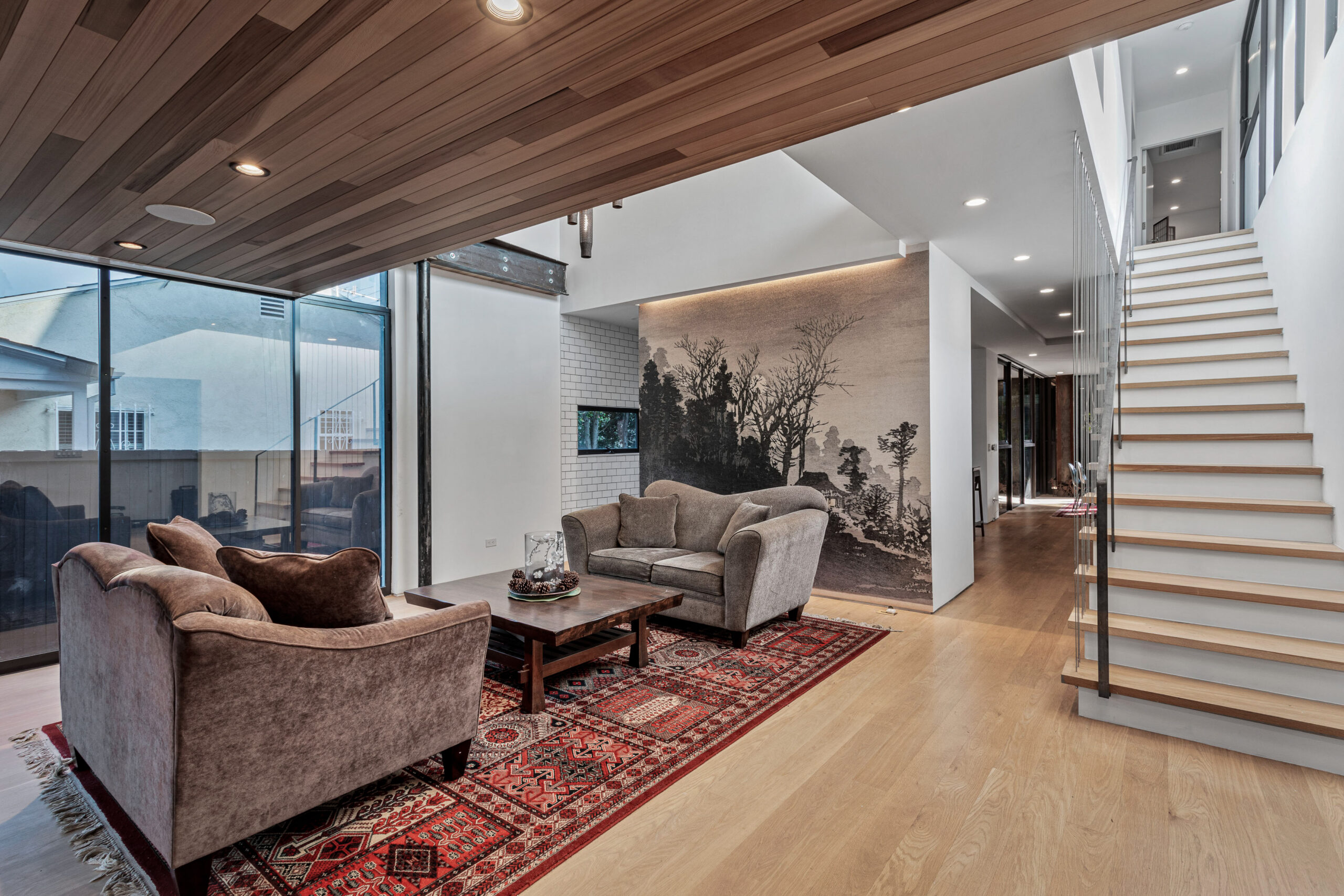 Stunning Architectural Masterpiece in Westwood/Century City! Designed by AIA's Tony Pleskow Architects, this exceptional home features walls of glass that fill the space with natural light while maintaining privacy. The open floor plan is perfect for entertaining, with custom disappearing pocket doors and striking steel structural elements that create a double-height ceiling in the living room. The designer kitchen includes high-end Miele appliances, a built-in espresso machine, a large pantry, and an eat-in area. The master suite boasts a spacious walk-in closet, a spa-like en-suite bath, and a private terrace. Additional amenities include Toto toilets, built-in surround sound speakers, automated Somfy blinds, and multi-zone HVAC. The outdoor spaces are equally impressive, with a lounging deck with views, a large private yard, and a garden area. A detached two-car garage completes this exceptional property, located within the Westwood Charter Elementary School district.