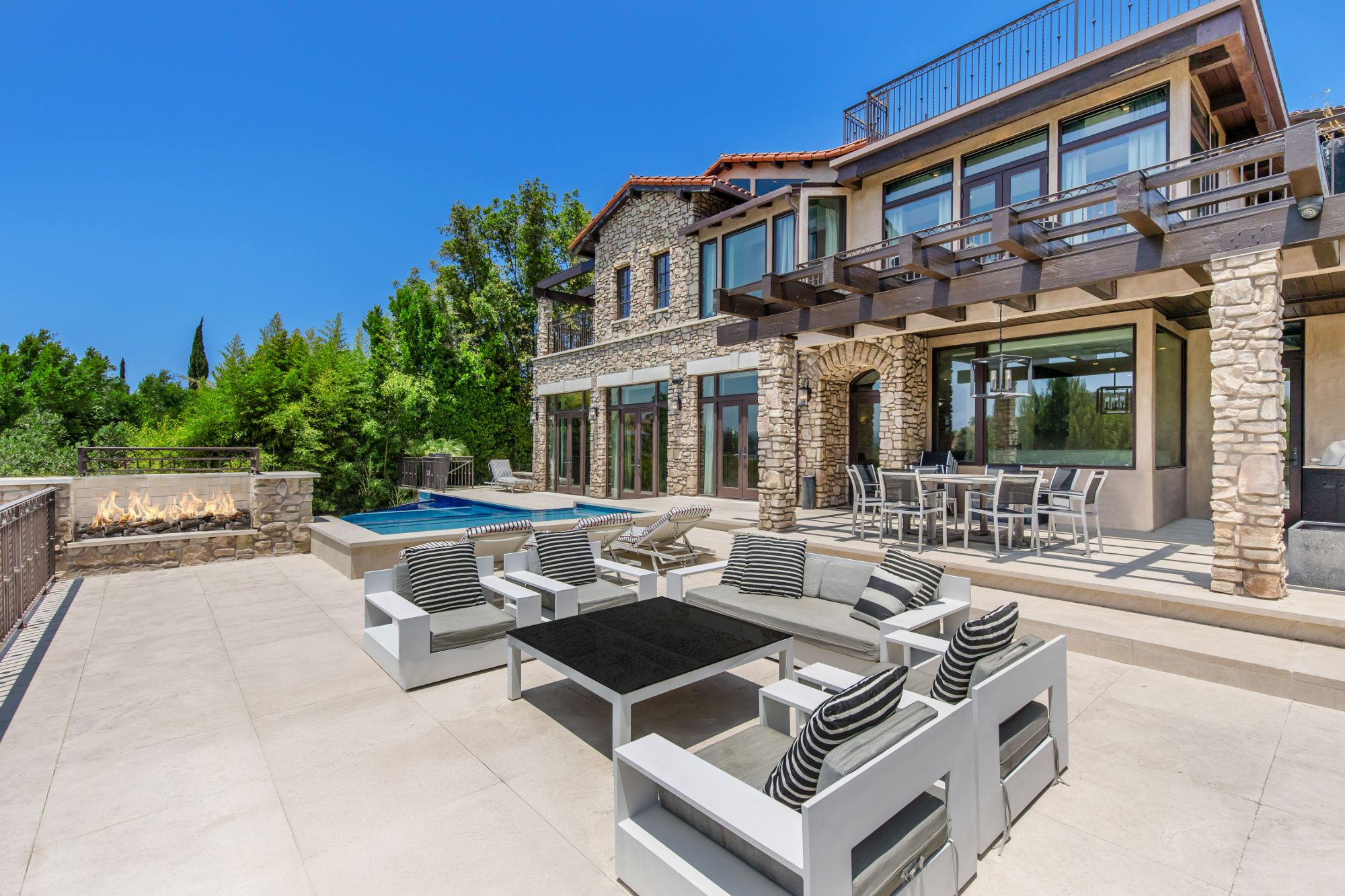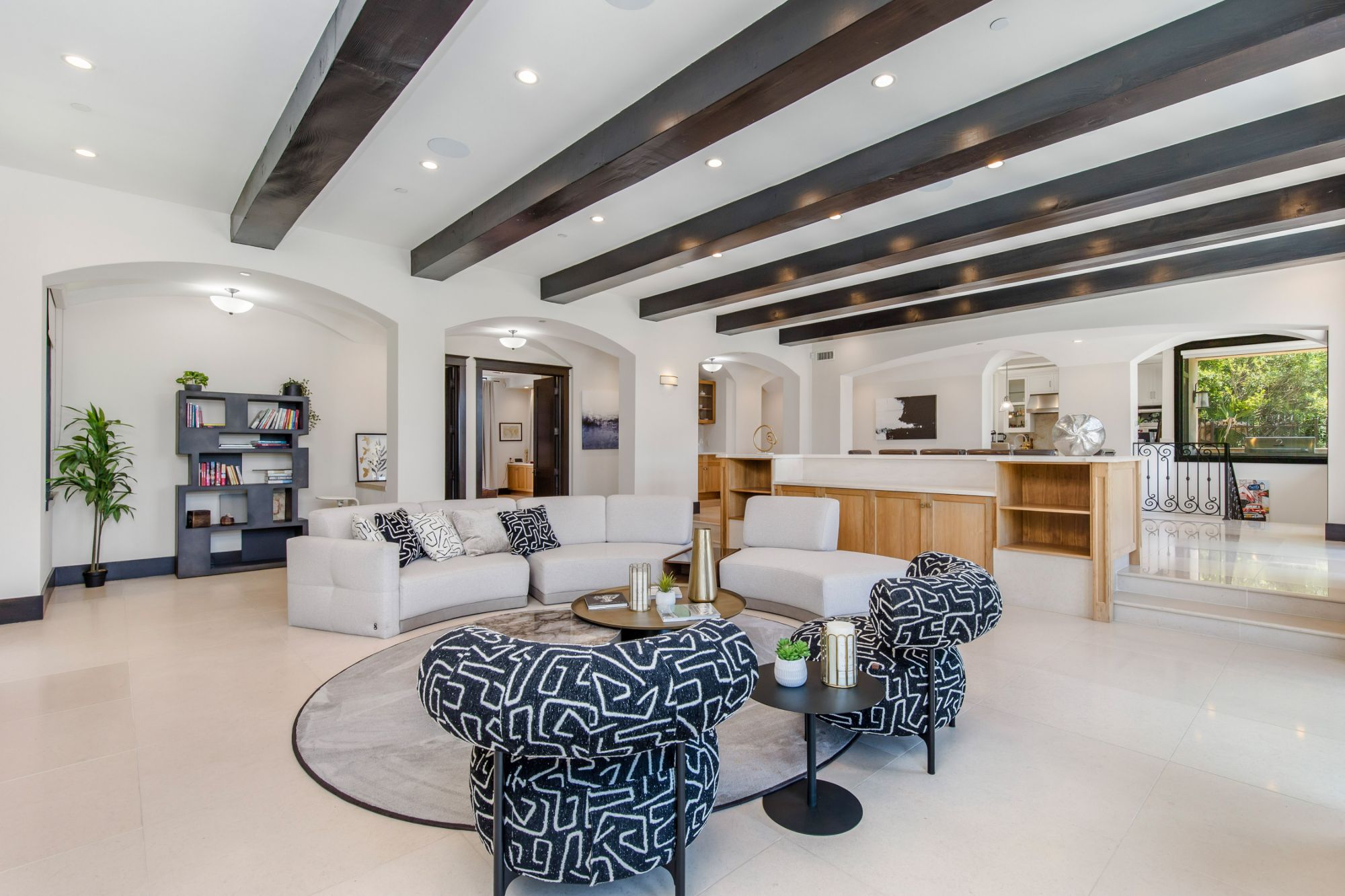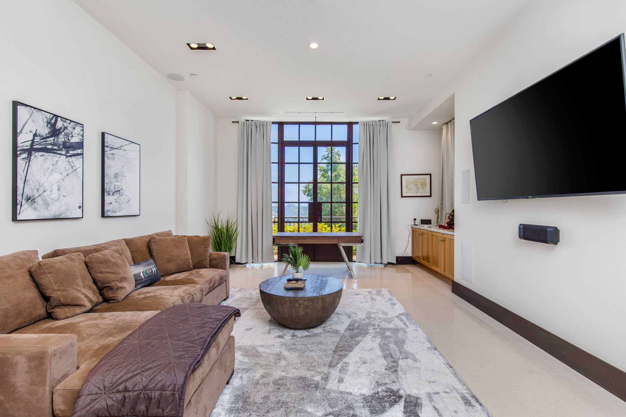 Best price per foot in Beverly Hills. Experience a life of impeccable style and supreme comfort at this expansive, move-in-ready estate designed for the modern entertainer, with a variety of terraces, lounging areas, and outdoor spaces that harmonize with the home's natural surround and dramatic vistas. It enjoys a unique position immediately neighboring celebrity-rich Beverly Park's 24-7 guard-gate, with its around-the-clock patrol, and overlooks the exclusive community's mansion-studded grounds. The home's organic cobblestone facade is complemented by bold, sharp lines, resulting in a fusion of classic and contemporary architecture. Enter the elegant foyer to discover a totally done layout with everything included. In the step-down living room, bursts of greenery appear through arched windows flanking the river-rock fireplace. Exposed beams overhead repeat into the formal dining room as a bank of French doors open to the outside. The gourmand's kitchen features an oversized island, farm and prep sinks, garden window, an abundance of cabinetry, beautiful stone backsplash, recipe desk, and chef-grade appliances including Wolf range with hood and pot filler. In the family room, floor-to-ceiling paned windows frame gorgeous rolling hills and mountains. Upstairs, the primary suite has its own private balcony plus lavish spa-inspired bath with jetted marble tub, separate oversized shower, and dual-sink vanity. A large walk-in closet has built-ins and dresser island. A wraparound terrace with fireplace can be accessed by primary and secondary bedrooms, perfect for evening conversation fireside. Other amenities include an elevator, large media/gaming room, massage area with steam room, wine cellar, and gated driveway leading to a massive finished ~2,172-square-foot eight-car garage, an auto enthusiast's dream! Facing breathtaking views, the rear grounds include an infinity pool and spa, baja shelf, multiple gathering and lounging patios, and outdoor dining room with barbecue for dining al-fresco. Ascend the Tuscan spire to the top-most-level and behold 360-degree vistas from the sprawling rooftop deck. Relish this fresh, private lifestyle just moments to Sunset Boulevard, The Beverly Hills Hotel, the fine dining and shopping of Beverly Hills, and all the Westside has to offer. Priced to sell.