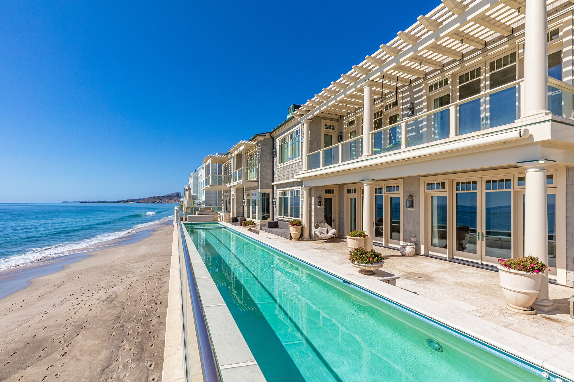 Situated on Malibu's famed "Billionaire's Beach", this ultra-private estate offers 150 feet of frontage on one of the most sought-after locations on the Southern California coast. The estate encompasses half an acre, featuring unparalleled architecture with every detail thought out. Elegant interiors include Aremberg hardwood floors, gourmet kitchen, formal dining, and floor to ceiling glass doors that seamlessly flow onto the 3,800 sq. ft. oceanfront deck. Offering incomparable 180-degree ocean views that stretch along the entire Santa Monica Bay from Point Dume to Palos Verdes, this expansive deck features an oversized lap pool, outdoor kitchen, and large grassy lawn. Upstairs features 5 ensuite bedrooms, plus the primary suite with two grand fireplaces, stunning ocean-view terrace, walk-in dressing rooms, and spa-style bath with soaking tub and marble shower. This home is the pinnacle of luxury including a state of the art media room, library with an aquarium accent wall, wine cellar.