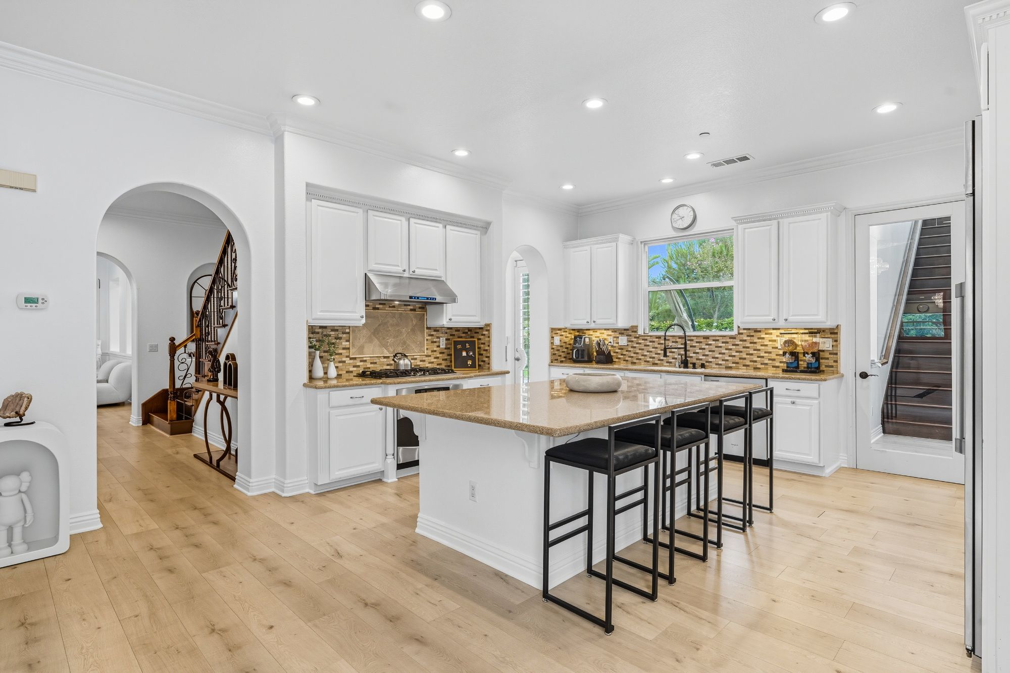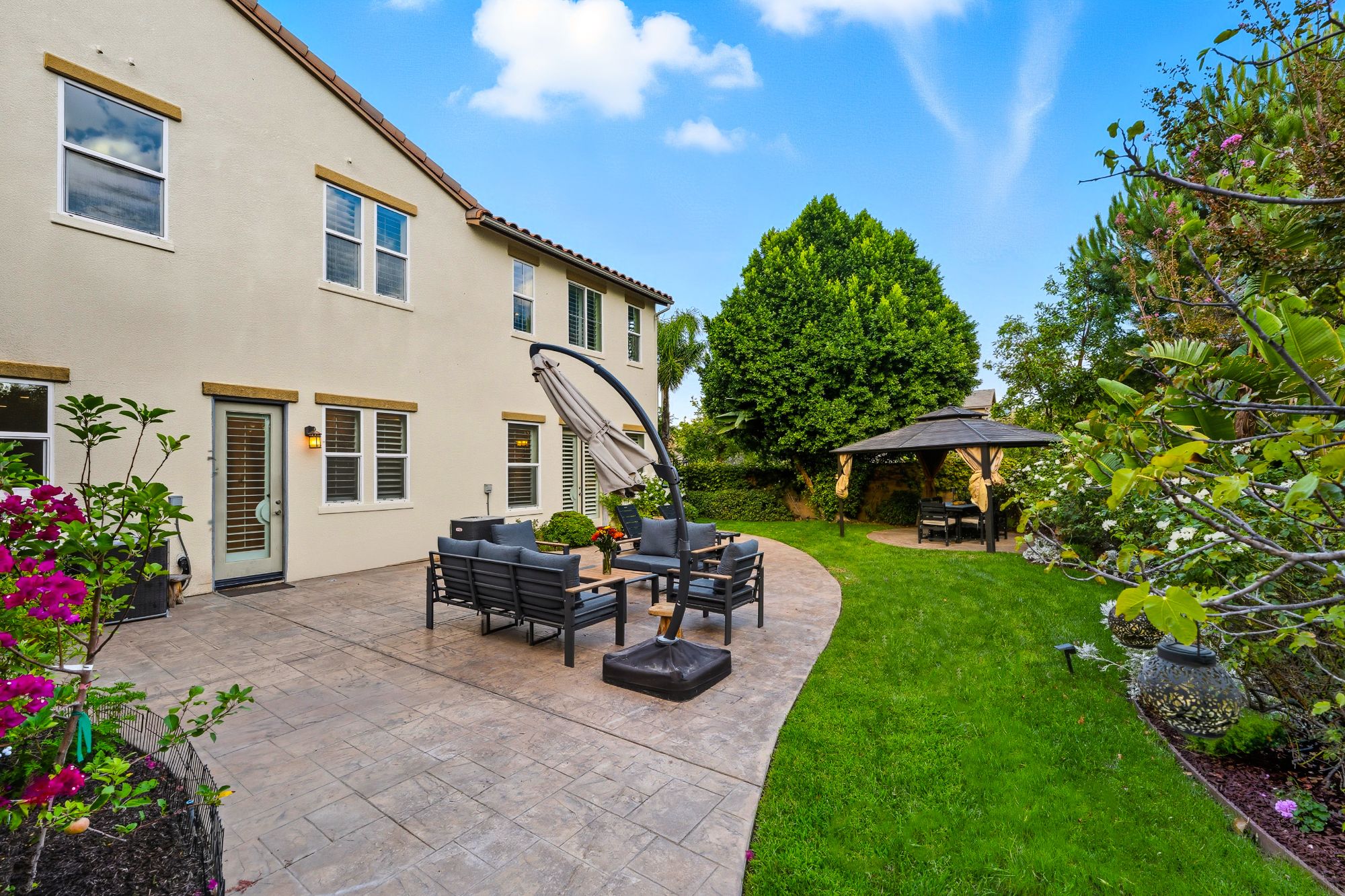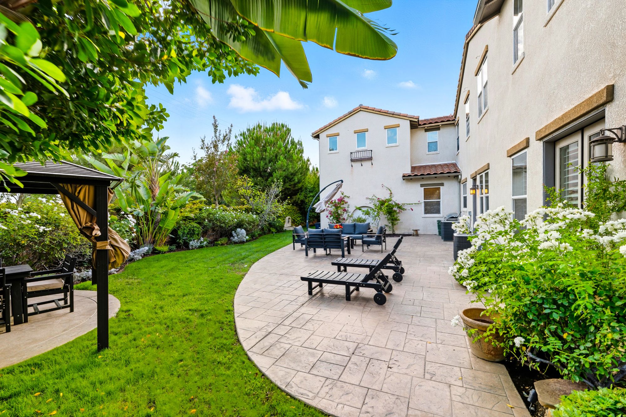 Step into this stunning 5-bedroom, 5.5-bathroom Chatsworth residence, nestled in the gated enclave of Stonehaven Estates. With just under 4,500 square feet of thoughtfully designed living space, this home blends luxury with everyday comfort. From the moment you enter, you notice the ceiling height sets a luxurious tone, guiding you into the elegant formal living and dining rooms, perfect for memorable gatherings and celebrations. The kitchen features upgraded stainless steel appliances, an oversized center island ready for culinary works, and a walk-in pantry large enough to make any chef swoon. Off the kitchen, discover a unique and private guest suite complete with its own living room, bedroom, and bathroom; ideal for visitors or extended family stays. The kitchen opens seamlessly into a sprawling family room, anchored by a beautiful entertainment center and fireplace. A chic powder room and an additional guest bedroom with a full bathroom complete the main floor. Head upstairs to find a spacious family lounge; your future game room, play area, or home theater awaits. The light-filled primary suite is a luxurious retreat with a generous walk-in closet and a spa-inspired bathroom. Three additional guest bedrooms and an upstairs balcony provide ample space, rounding out the second level. Step out back to your personal oasis; beautifully landscaped grounds and a charming gazebo set the stage for unforgettable outdoor entertaining or peaceful relaxation.