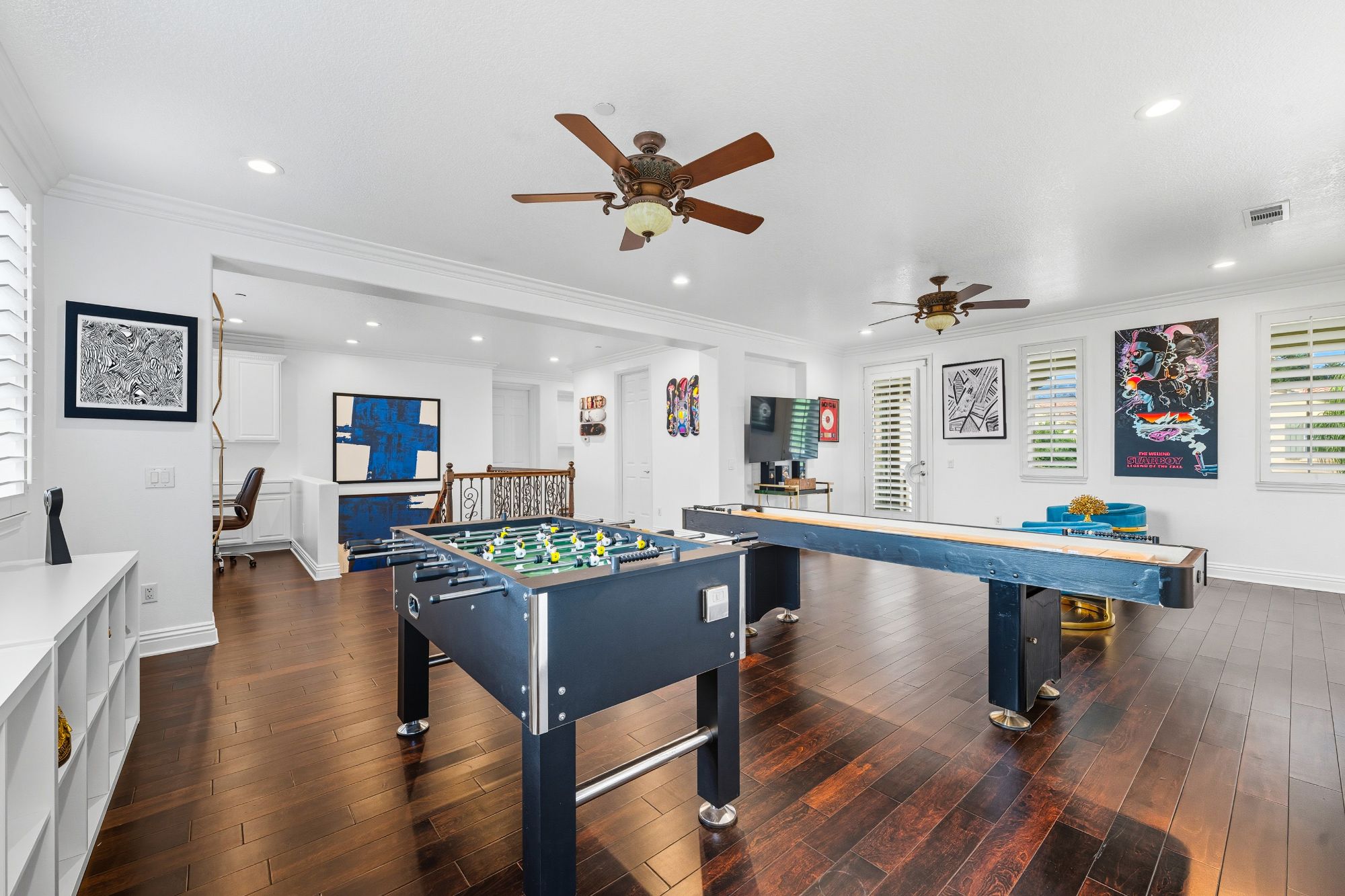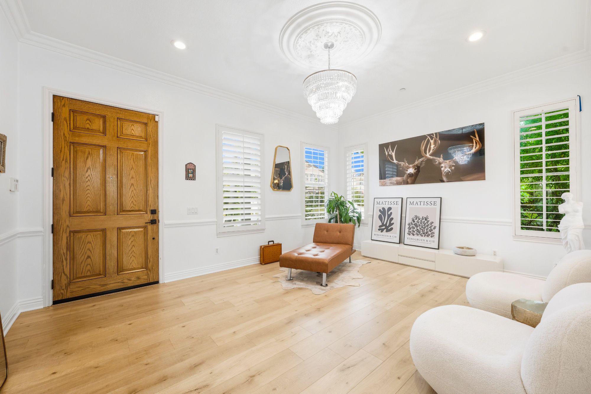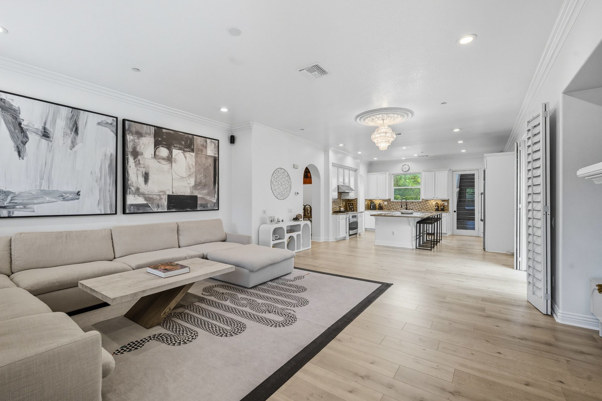 Step into this stunning 5-bedroom, 5.5-bathroom Chatsworth residence, nestled in the gated enclave of Stonehaven Estates. With just under 4,500 square feet of thoughtfully designed living space, this home blends luxury with everyday comfort. From the moment you enter, you notice the ceiling height sets a luxurious tone, guiding you into the elegant formal living and dining rooms, perfect for memorable gatherings and celebrations. The kitchen features upgraded stainless steel appliances, an oversized center island ready for culinary works, and a walk-in pantry large enough to make any chef swoon. Off the kitchen, discover a unique and private guest suite complete with its own living room, bedroom, and bathroom; ideal for visitors or extended family stays. The kitchen opens seamlessly into a sprawling family room, anchored by a beautiful entertainment center and fireplace. A chic powder room and an additional guest bedroom with a full bathroom complete the main floor. Head upstairs to find a spacious family lounge; your future game room, play area, or home theater awaits. The light-filled primary suite is a luxurious retreat with a generous walk-in closet and a spa-inspired bathroom. Three additional guest bedrooms and an upstairs balcony provide ample space, rounding out the second level. Step out back to your personal oasis; beautifully landscaped grounds and a charming gazebo set the stage for unforgettable outdoor entertaining or peaceful relaxation.
