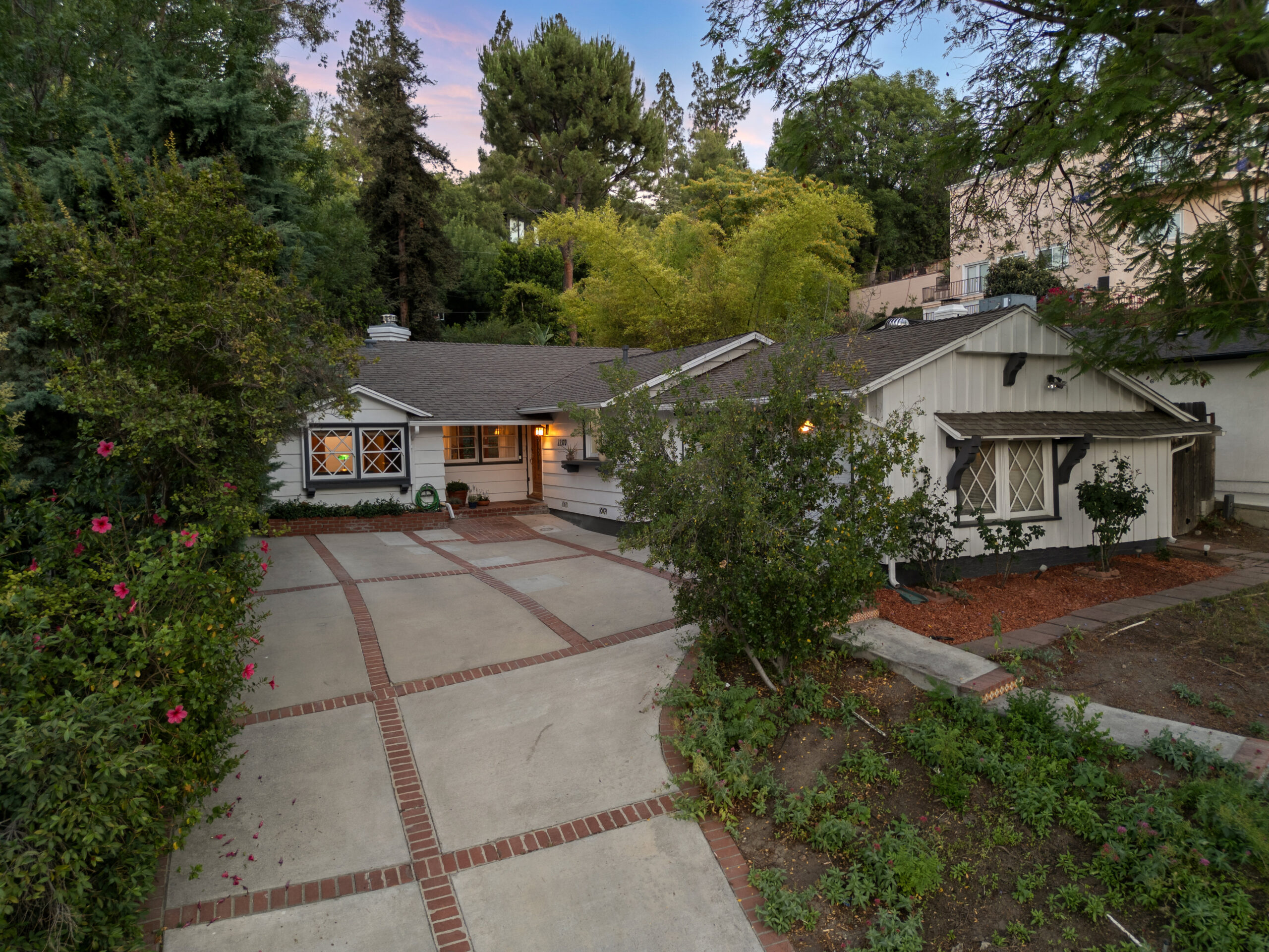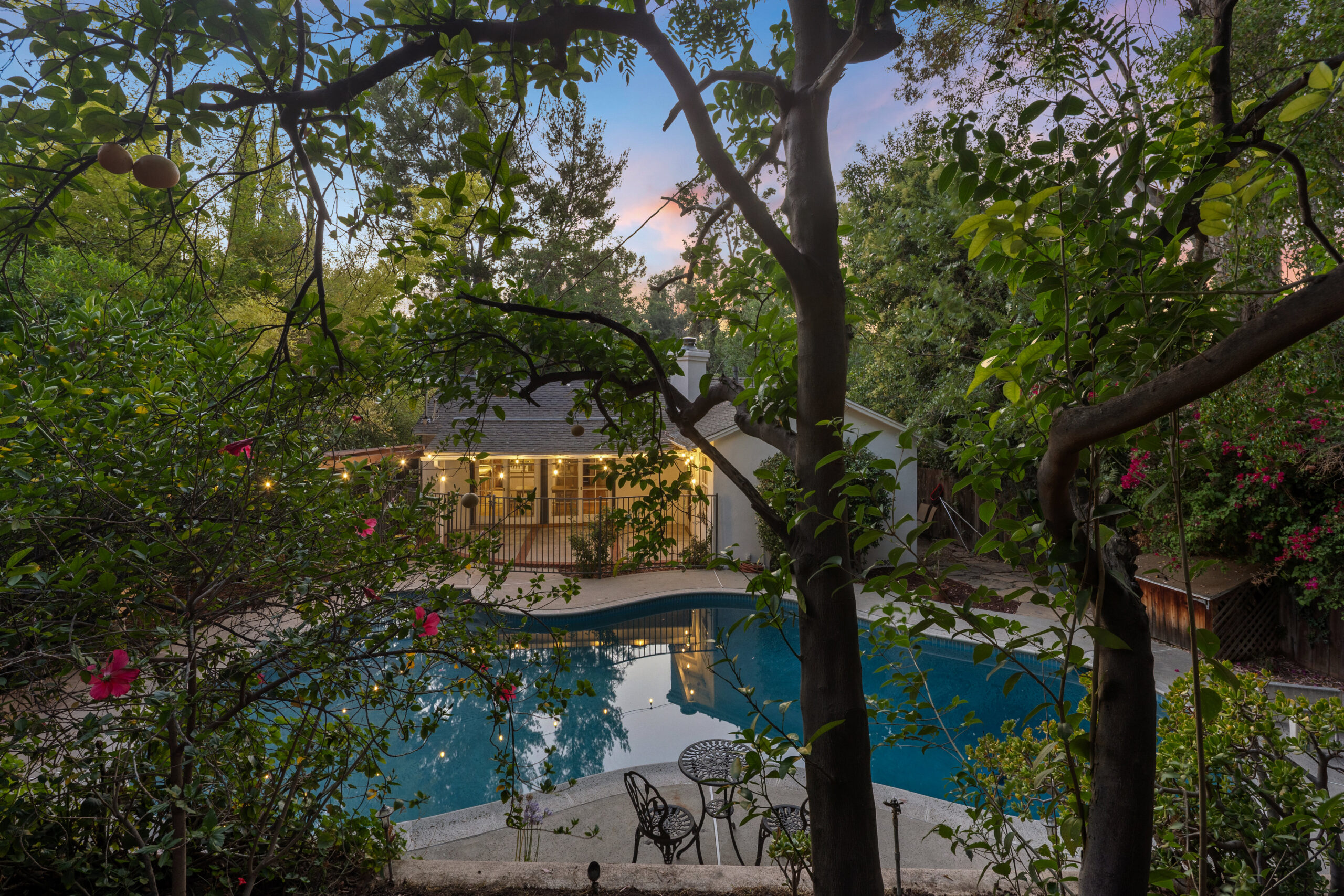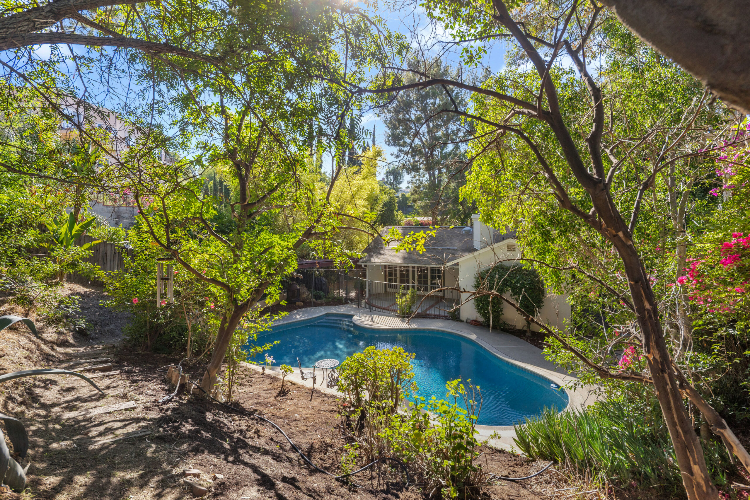 Welcome to this charming single-story ranch home nestled South of Ventura Blvd in the heart of Woodland Hills. This 3-bedroom, 2-bathroom residence offers over 1,250 sqft of bright, open living space situated on an expansive 11,000+ sq ft lot. Designed for easy California living, the open-concept layout features two sets of sliding glass doors that seamlessly connect the indoor living areas to the lush backyard. The spacious primary suite offers direct access to the outdoors, creating the perfect retreat. Enter outside and unwind beneath the covered patio, ideal for al fresco dining or lounging poolside. The recently resurfaced large swimming pool is surrounded by mature fruit trees and thoughtfully tiered landscaping, offering multiple spaces for play, gardening, or even a private storage area. Whether you're looking to entertain, relax, or reimagine the outdoor potential, this home offers endless possibilities in one of Woodland Hills' most desirable pockets.
