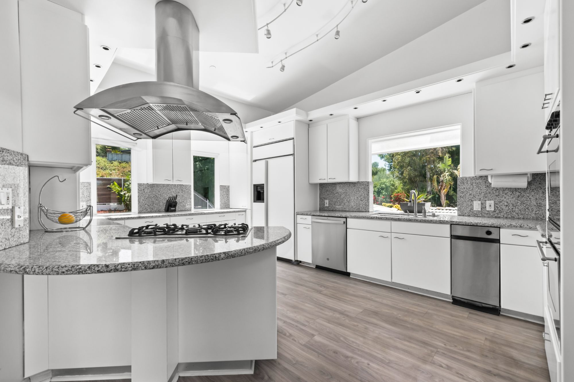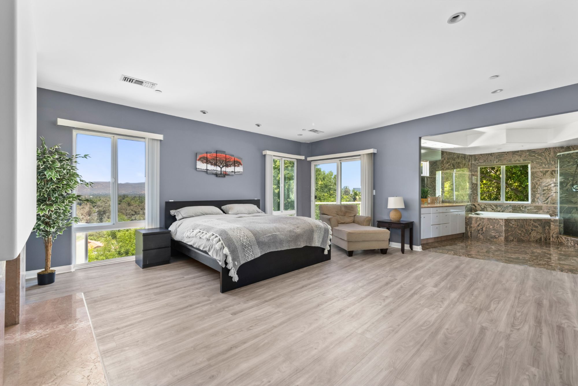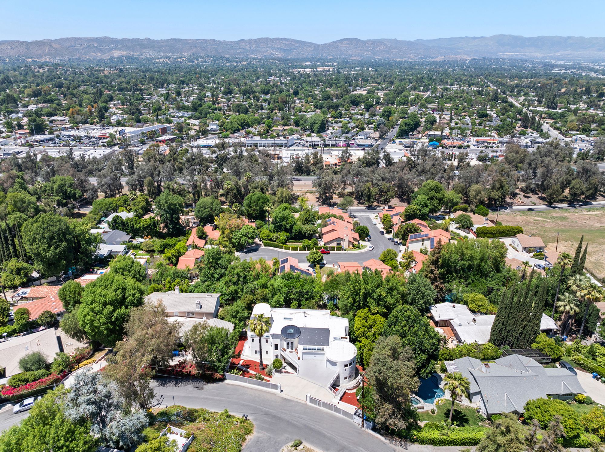 Live in the main house and collect income from three units, three are vacant. Architectural Elegance with Income Potential & Breathtaking Views. Tucked just south of Ventura Boulevard, this distinctive estate blends modern sophistication, privacy, and versatility, framed by sweeping mountain vistas. The main home features 3 bedrooms and 3.5 baths in a light-filled, contemporary design. A dramatic central staircase connects open living spaces with soaring ceilings, skylights, and refined finishes. The living room, with fireplace and wet bar, sets the stage for gatherings, while the formal dining room and gourmet kitchen with granite counters and stainless appliances cater to everyday living and entertaining. Upstairs, the serene primary suite offers a fireplace, spa-inspired bath, and walk-in closet. Two additional ensuite bedrooms open to private balconies, with a versatile loft for flexible living. Enhancing the property are 6 additional bedrooms with private entrances and kitchen/kitchenette amenities - 3 empty and 3 - vacant providing excellent income potential while preserving owner privacy. Opportunities include an SB9 lot split for future development. With elegance, comfort, and financial upside, this rare Woodland Hills offering is ideal as a luxurious primary home, investment property, or both, all within moments of premier dining, shopping, and amenities.
