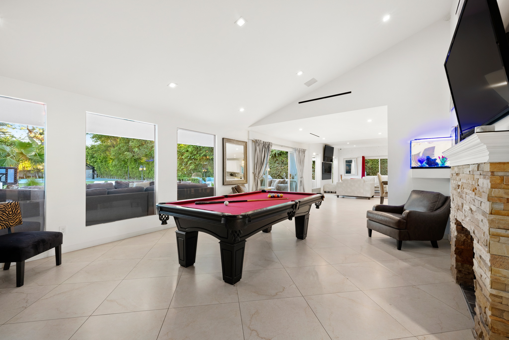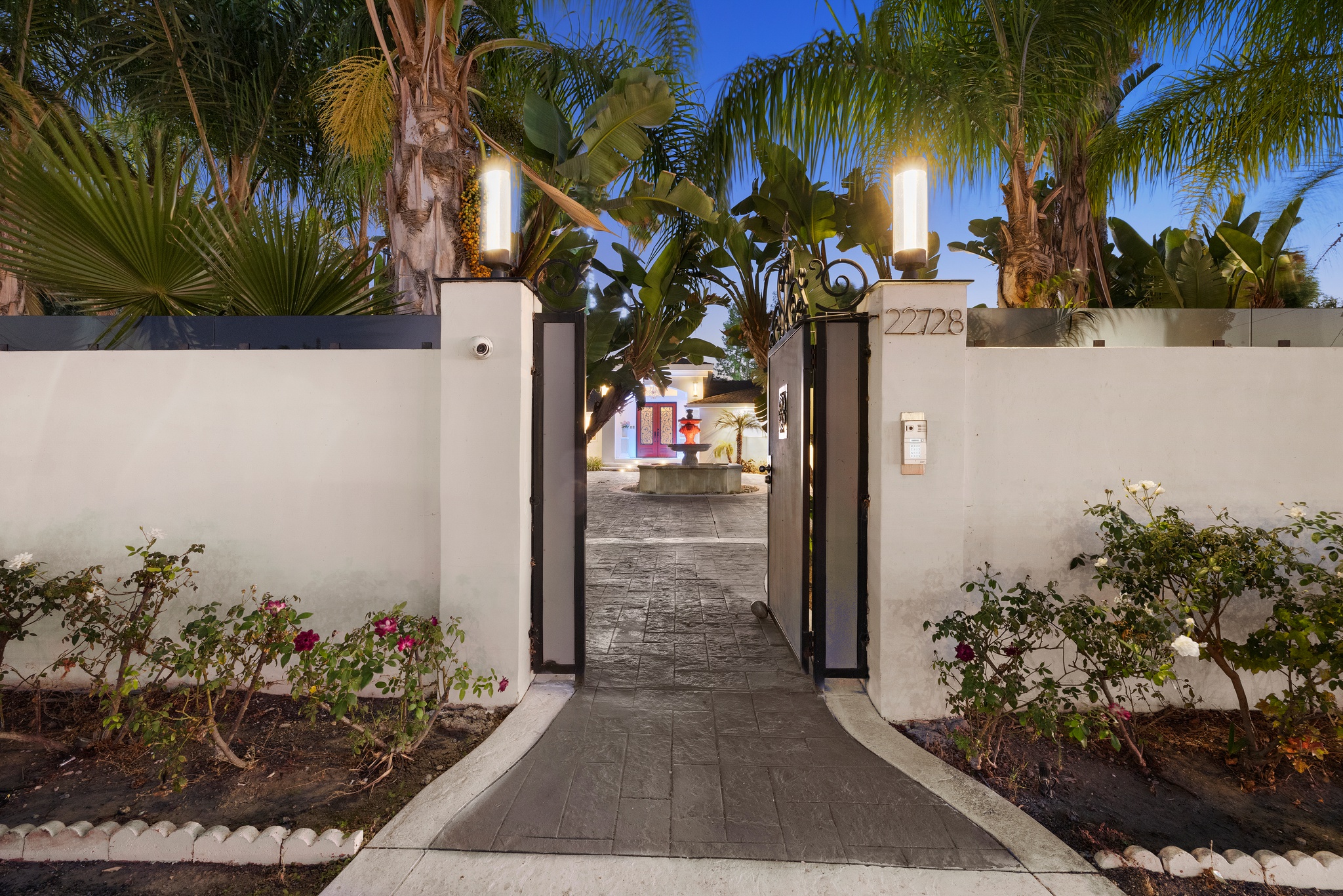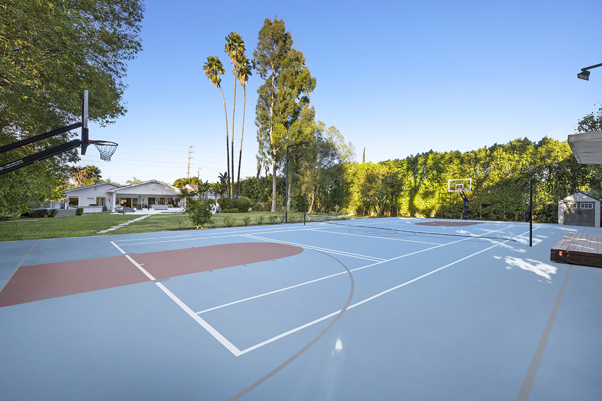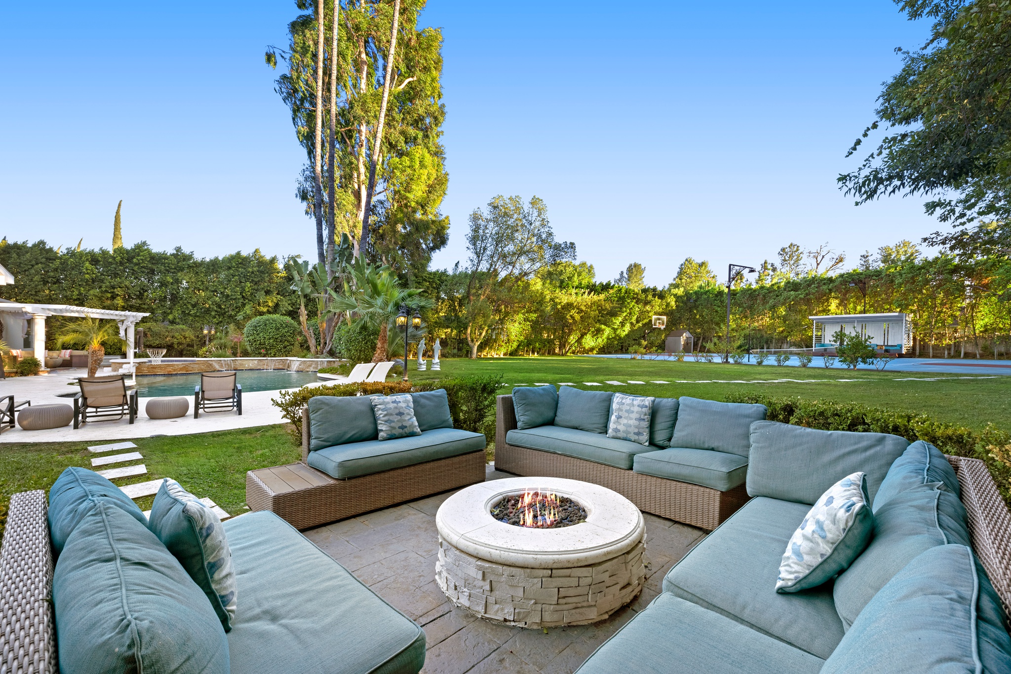 Welcome to a lifestyle of elegance and leisure in this exquisite custom estate sprawling across a 36,000 sq ft flat lot - an indoor-outdoor haven for those who crave luxury and relaxation. Enclosed by sleek, private gates, a grand circular driveway greets you with abundant parking for over 10 vehicles, RV access, and an ambiance of exclusivity from the moment you arrive.Designed for outdoor living at its finest, this property boasts a full-size basketball, tennis, and pickleball court with professional-grade lighting, a stunning Baja-entry pebble tech pool and spa, a lush manicured lawn, and a putting green. Gather around any of the four cozy fire pits, retreat to one of two private cabanas, or indulge in the beach-style lounge with an outdoor shower - ideal for unwinding under the stars. An impressive outdoor kitchen and effortless indoor-outdoor flow create an entertainer's dream setup.Inside, the 4,318 sqft of luxurious open-plan living spaces welcome you with high vaulted ceilings, a double-sided stone fireplace, and ambient LED lighting throughout. The chef's kitchen is a culinary dream, thoughtfully designed for functionality and style. This estate also features a billiard room, a flexible gym, or a fifth bedroom with a private bath, opulent Roberto Cavalli wall coverings, newly installed custom windows, and a primary suite with dual walk-in closets for the ultimate in comfort.Equipped with 80 fully-paid solar panels, this estate blends sustainable living with refined luxury. Perfectly situated just a mile from Topanga Social, renowned restaurants, and the Rams' practice facility and music venue, this turnkey masterpiece is more than a home - it's an invitation to a lifestyle where dreams come true.