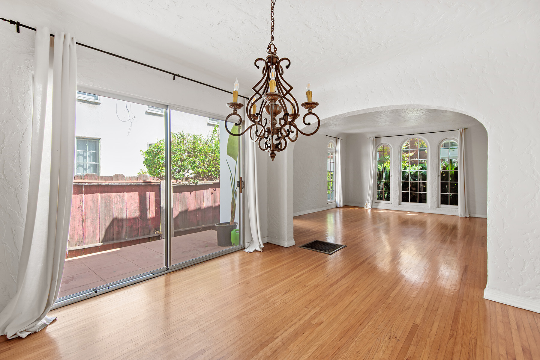 Discover this beautifully crafted, sun-drenched one-bedroom, one-bathroom Spanish-style unit nestled in the heart of Beverly Hills. The moment you step inside, you'll be captivated by the stunning hardwood floors and the elegance of the large, picturesque windows that fill the space with natural light. The formal dining room, adorned with a vintage chandelier, opens to a serene outdoor patio.The spacious bedroom offers an abundance of light, continuing the theme of bright and airy living, complemented by the timeless hardwood floors. The fully-equipped kitchen includes an in-unit washer and dryer for added convenience.This unit also features a decorative fireplace, a nod to its charming 1920s heritage, and offers one-car parking. A rare find in Beverly Hills, this large, single-story unit has no neighbors above and is situated on a tranquil, tree-lined street. Don't miss this exceptional opportunity to own a piece of Beverly Hills history.