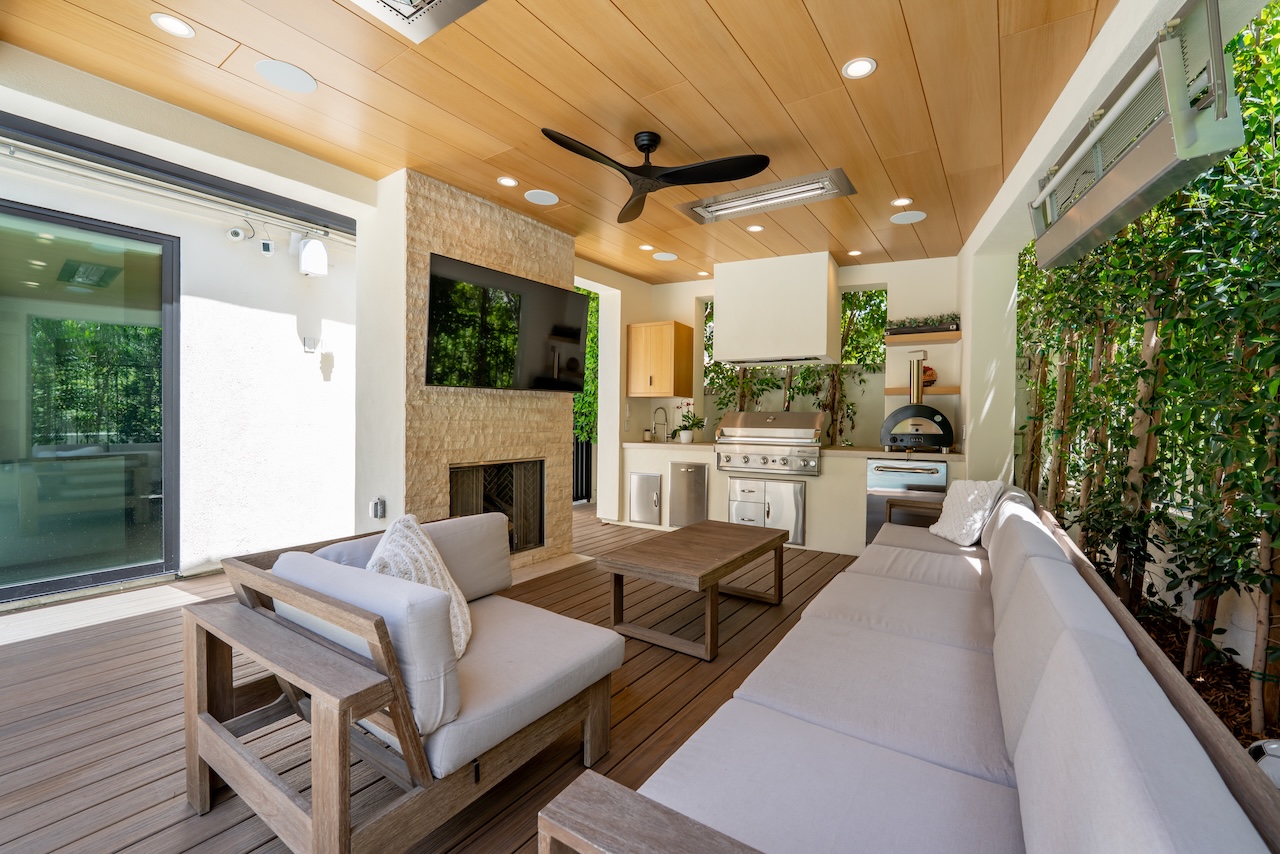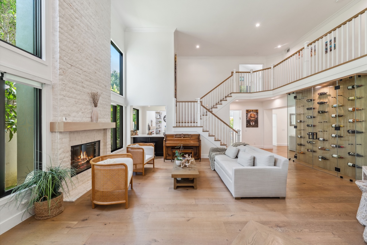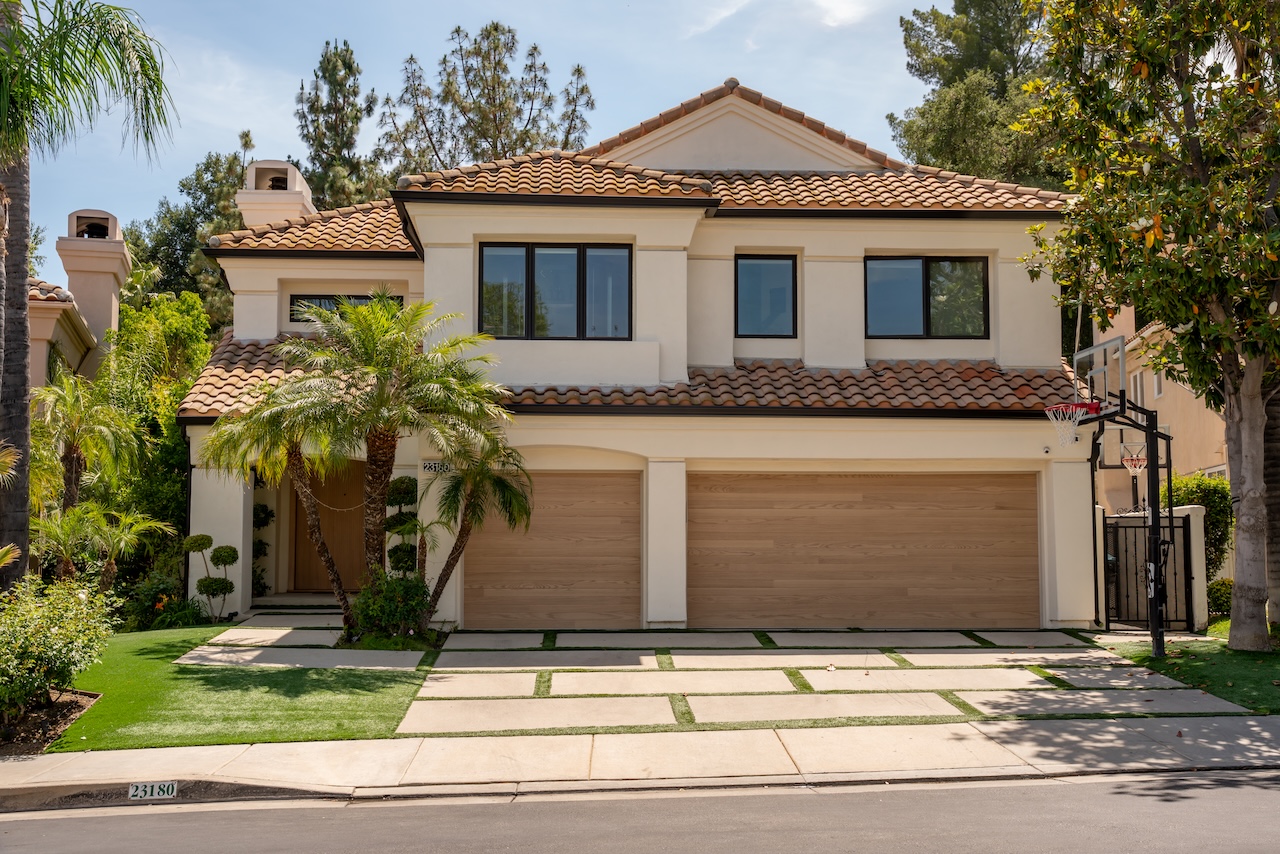 Completely remodeled and move-in ready, this stunning smart home is located in the prestigious guard-gated Bellagio community in Calabasas. Set on a prime cul-de-sac, the property showcases a brand-new yard with lush landscaping, tropical trees, green lawn, and a recently built pool and spa with smart pool equipment and a brand-new heater. Solar panels, a tankless water heater, and a whole-house water filtration system (located in the insulated, soundproofed garage) add comfort, efficiency, and peace of mind.Inside, soaring ceilings, custom ironwork, rich wood floors, and recessed lighting create a bright and airy ambiance. The gourmet kitchen features Viking appliances, granite countertops, custom cabinetry, and a walk-in pantryperfectly positioned to overlook the backyard oasis. The expanded family and dining rooms offer an ideal setting for entertaining.A private downstairs bedroom with an en-suite bath provides a great option for guests or in-laws, while a powder room and separate laundry room offer convenience. Upstairs are four spacious bedrooms with vaulted ceilings and wood floors, including a luxurious primary suite with a fireplace, walk-in closet, and a spa-inspired bath featuring a steam shower.Enjoy year-round resort-style living in the entertainer's backyard, complete with a pool, spa, fountains, cabana with outdoor kitchen and TV, built-in BBQ, fire pit, and multiple lounge areas.Located within the award-winning Las Virgenes School District and just a short stroll from Calabasas Lake and The Commons, this home offers the best of comfort, style, and location.