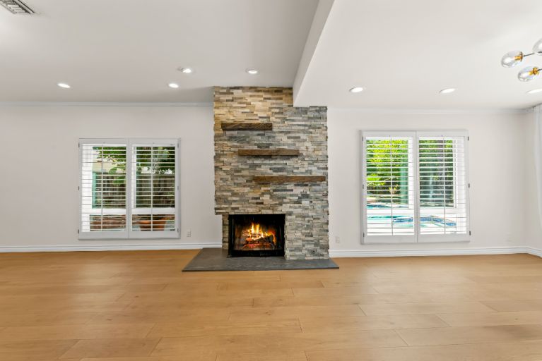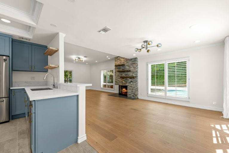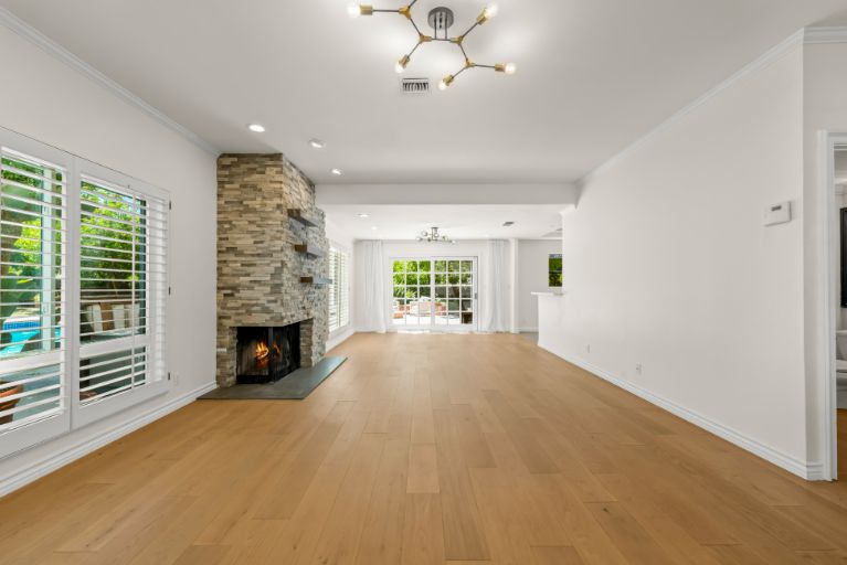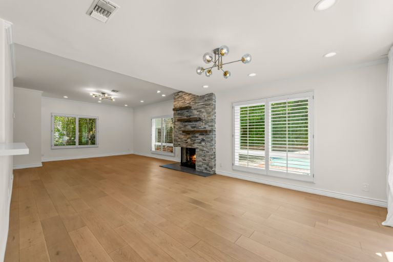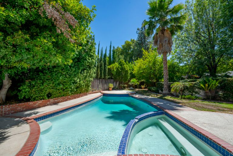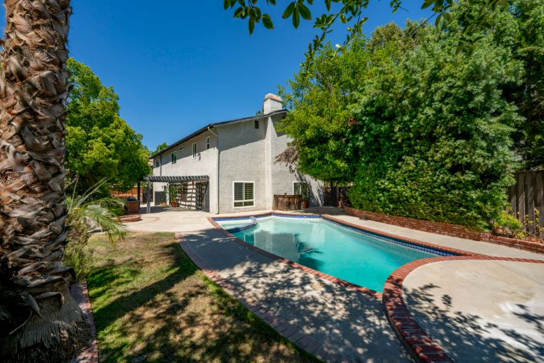 At the end of a serene cul-de-sac, this private 5 bed, 4 bath, dream home in Walnut Acres is over 3,100 sqft of resort living on a lot of almost 13,000 sqft! The charming front yard has beautiful curb appeal with a brick walkway, new 4-car paver driveway, and a large covered front porch. Inside, white oak floors grace the living spaces and new energy-saving large dual-pane windows fill the home with natural light. The living room with striking custom El Dorado stone fireplace flows into the dining room with sliding glass doors which lead to a park-like backyard. In the new designer updated kitchen there are stainless steel appliances, and an extraordinary coffered ceiling. The kitchen opens to a lovely seating area with direct access to the backyard and connects to an inviting family room with a beautiful fireplace. Five generously sized bedrooms upstairs with large closets for plenty of storage and tastefully updated bathrooms. The large master suite has a walk-in closet, luxurious bathroom with dual sink vanity, and walk-in shower. The sprawling private backyard features a sparkling newly re-plastered pool, spa, glass firepit, built-in BBQ with custom countertop, multiple fruit trees, and patio with pergola canopy perfect for outdoor dining. Additional features include upgraded LED lighting throughout, security and Malibu lighting, custom wood moldings, and extra storage closets. Situated within the highly sought after El Camino School district with easy access to the 101 freeway, local hiking trails, beaches, and more.