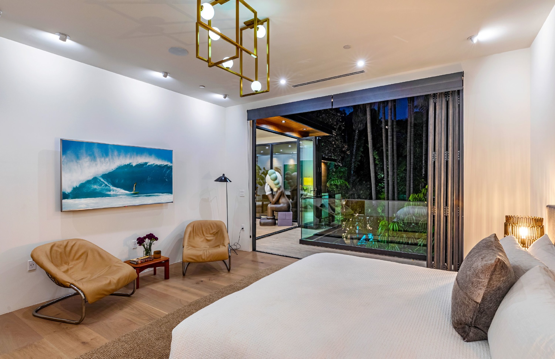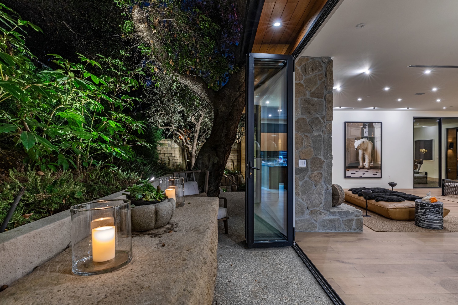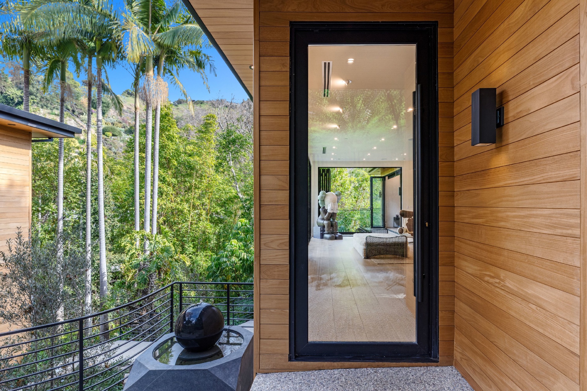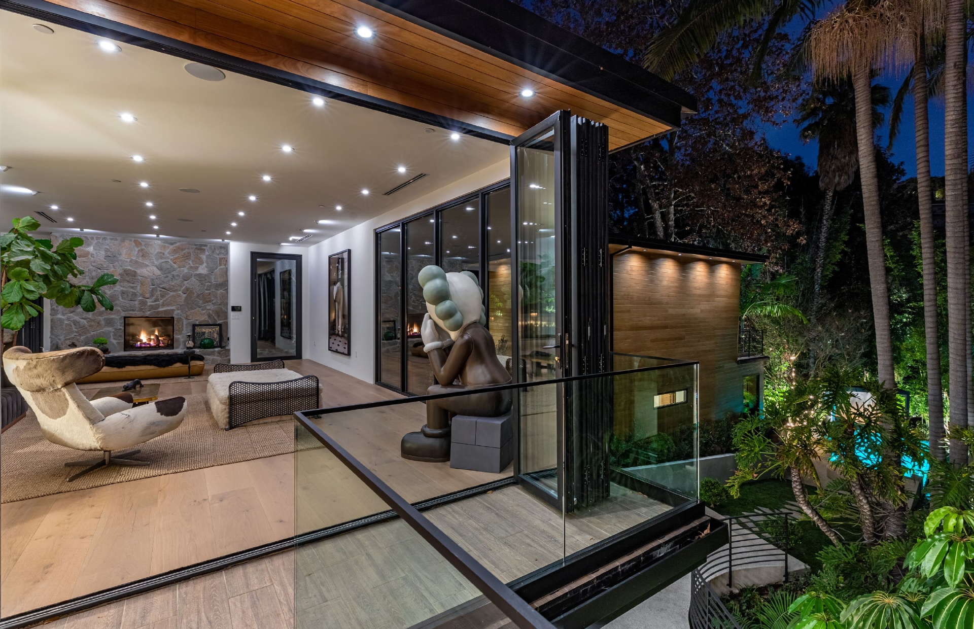 Welcome to Eight Palms, an organic modern private tropical retreat set in the celebrity enclave of Nichols Canyon. This secluded teak-clad dwelling is nestled among the trees and caressed by a trickling stream. Tucked away, yet standing proud in Nichols Canyon’s stunning natural beauty, the clean geometric lines and crisp angles of the structure lend a Zen-like quality that is punctuated by a glass sided pool, carved out of the hillside. Fully retractable sliding glass doors provide an airiness that invites all the natural elements at your whim. With an open-plan main living space and five inviting bedrooms, this sublime woodland residence will encourage you to stay home and relax. Wood, stone, glass, and rich earth tones abound, as the sounds of nature envelope you completely, creating a serene and truly harmonious atmosphere. This is the ultimate one of a kind private tropical oasis not to be missed.