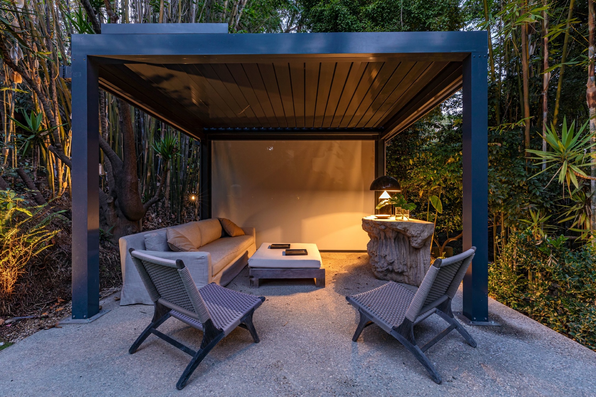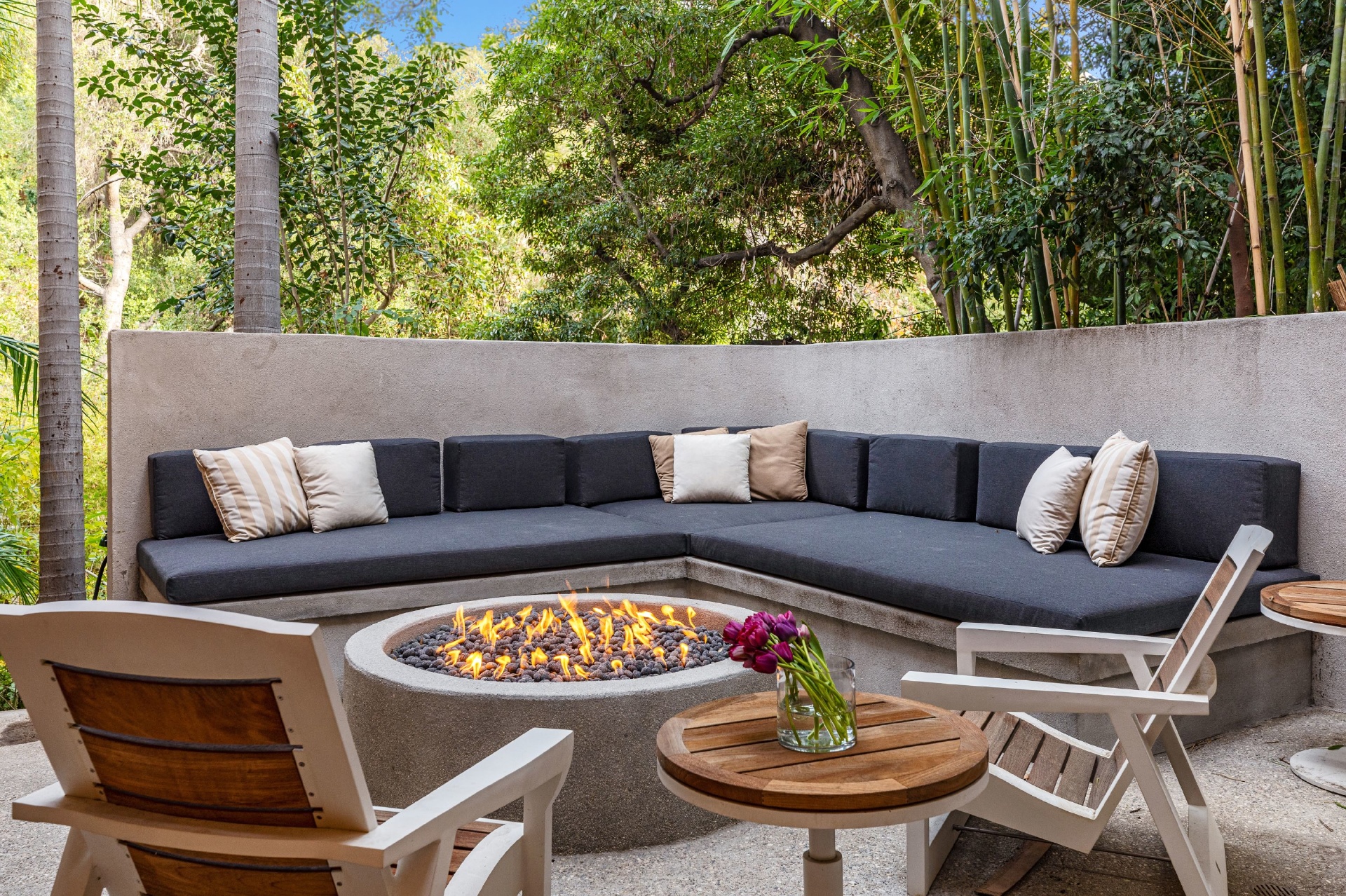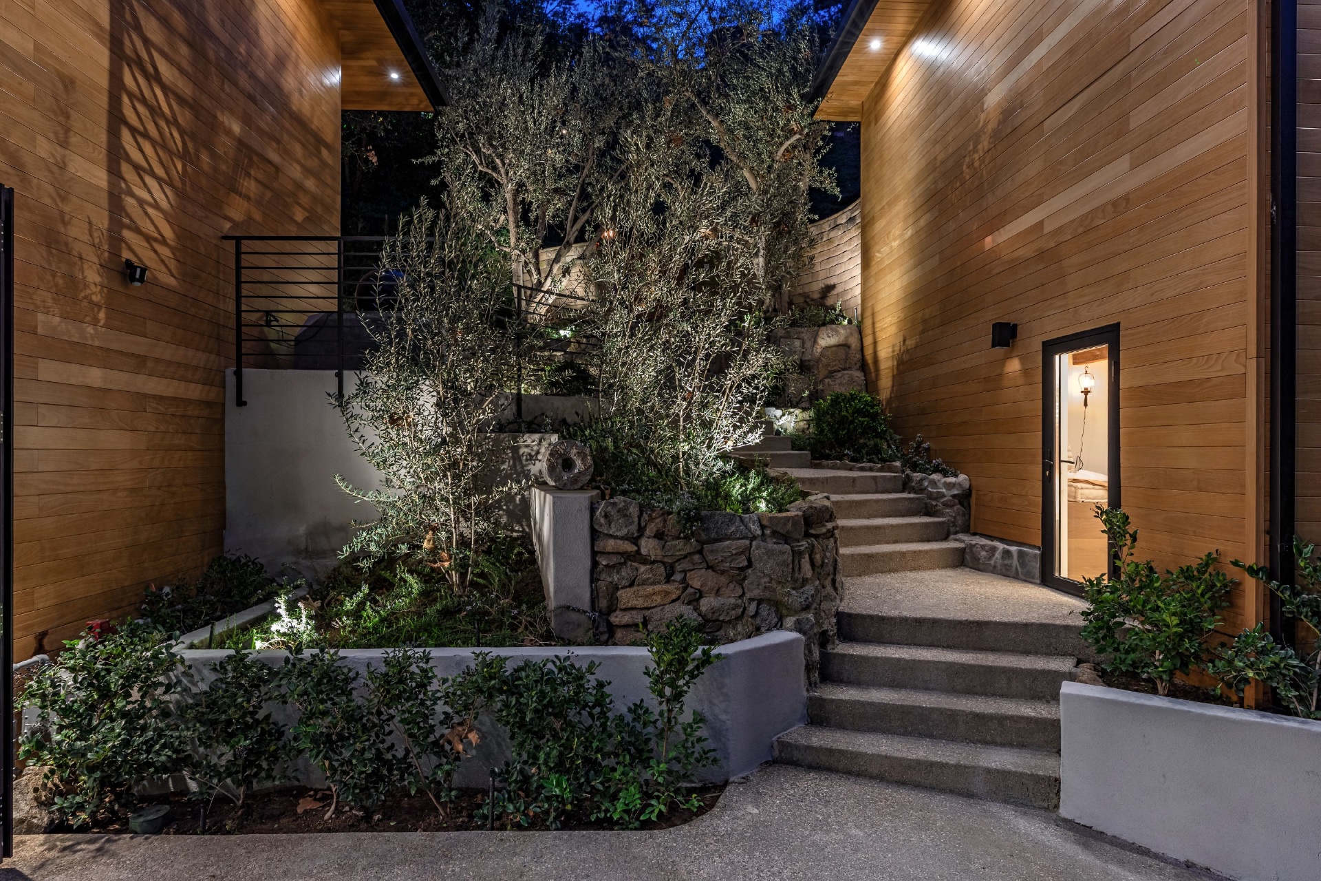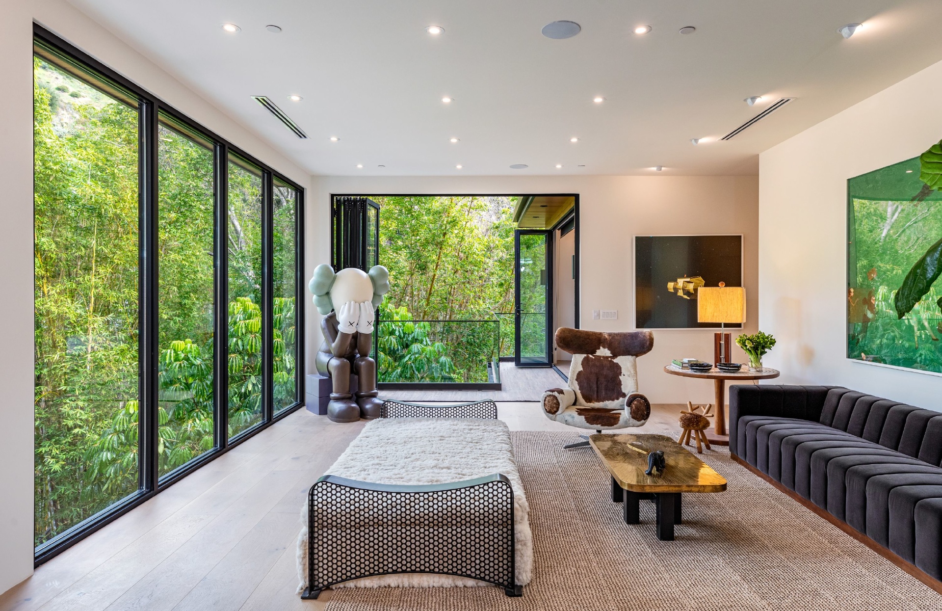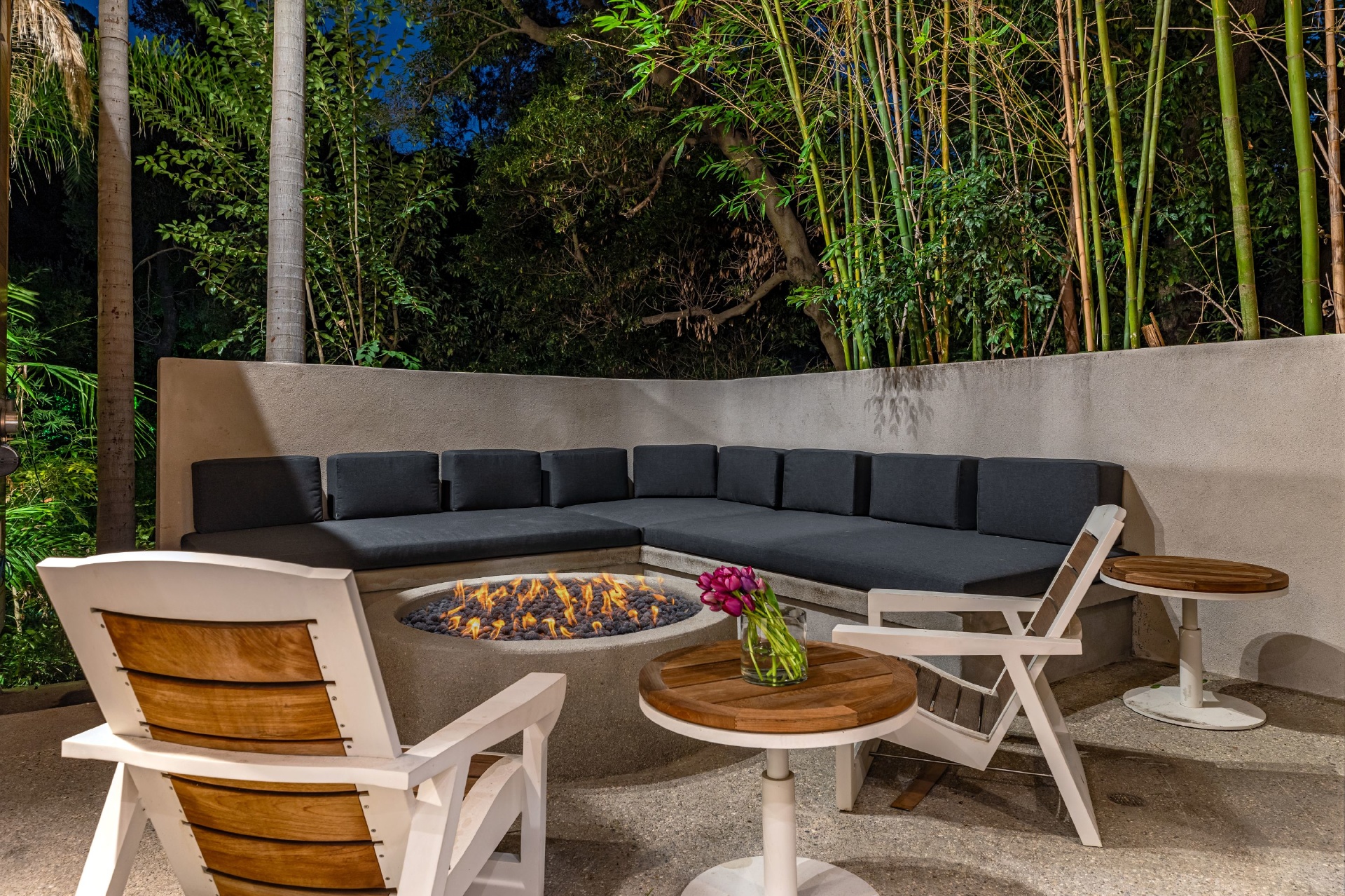 Welcome to Eight Palms, an organic modern private tropical retreat set in the celebrity enclave of Nichols Canyon. This secluded teak-clad dwelling is nestled among the trees and caressed by a trickling stream. Tucked away, yet standing proud in Nichols Canyon’s stunning natural beauty, the clean geometric lines and crisp angles of the structure lend a Zen-like quality that is punctuated by a glass sided pool, carved out of the hillside. Fully retractable sliding glass doors provide an airiness that invites all the natural elements at your whim. With an open-plan main living space and five inviting bedrooms, this sublime woodland residence will encourage you to stay home and relax. Wood, stone, glass, and rich earth tones abound, as the sounds of nature envelope you completely, creating a serene and truly harmonious atmosphere. This is the ultimate one of a kind private tropical oasis not to be missed.