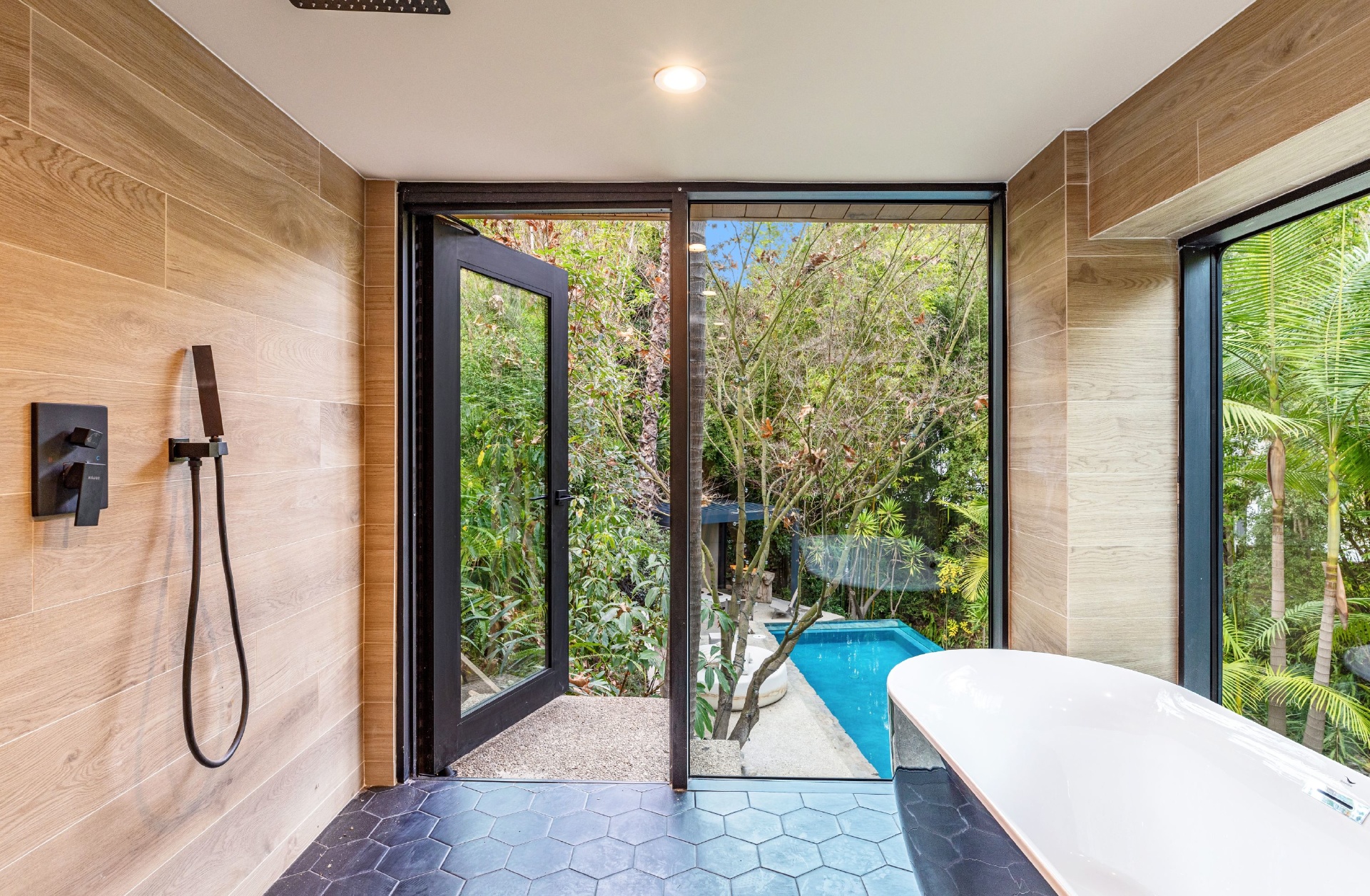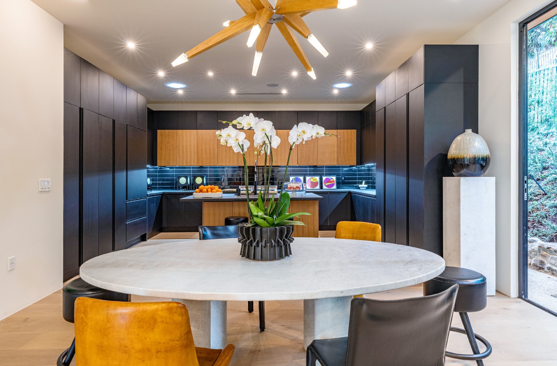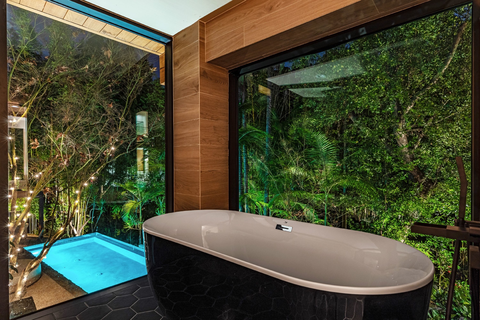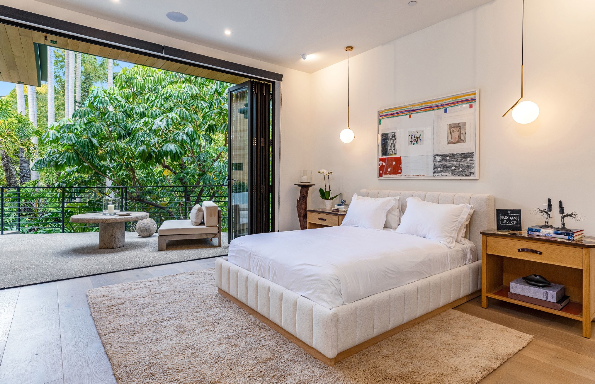 Welcome to Eight Palms, an organic modern private tropical retreat set in the celebrity enclave of Nichols Canyon. This secluded teak-clad dwelling is nestled among the trees and caressed by a trickling stream. Tucked away, yet standing proud in Nichols Canyon’s stunning natural beauty, the clean geometric lines and crisp angles of the structure lend a Zen-like quality that is punctuated by a glass sided pool, carved out of the hillside. Fully retractable sliding glass doors provide an airiness that invites all the natural elements at your whim. With an open-plan main living space and five inviting bedrooms, this sublime woodland residence will encourage you to stay home and relax. Wood, stone, glass, and rich earth tones abound, as the sounds of nature envelope you completely, creating a serene and truly harmonious atmosphere. This is the ultimate one of a kind private tropical oasis not to be missed.