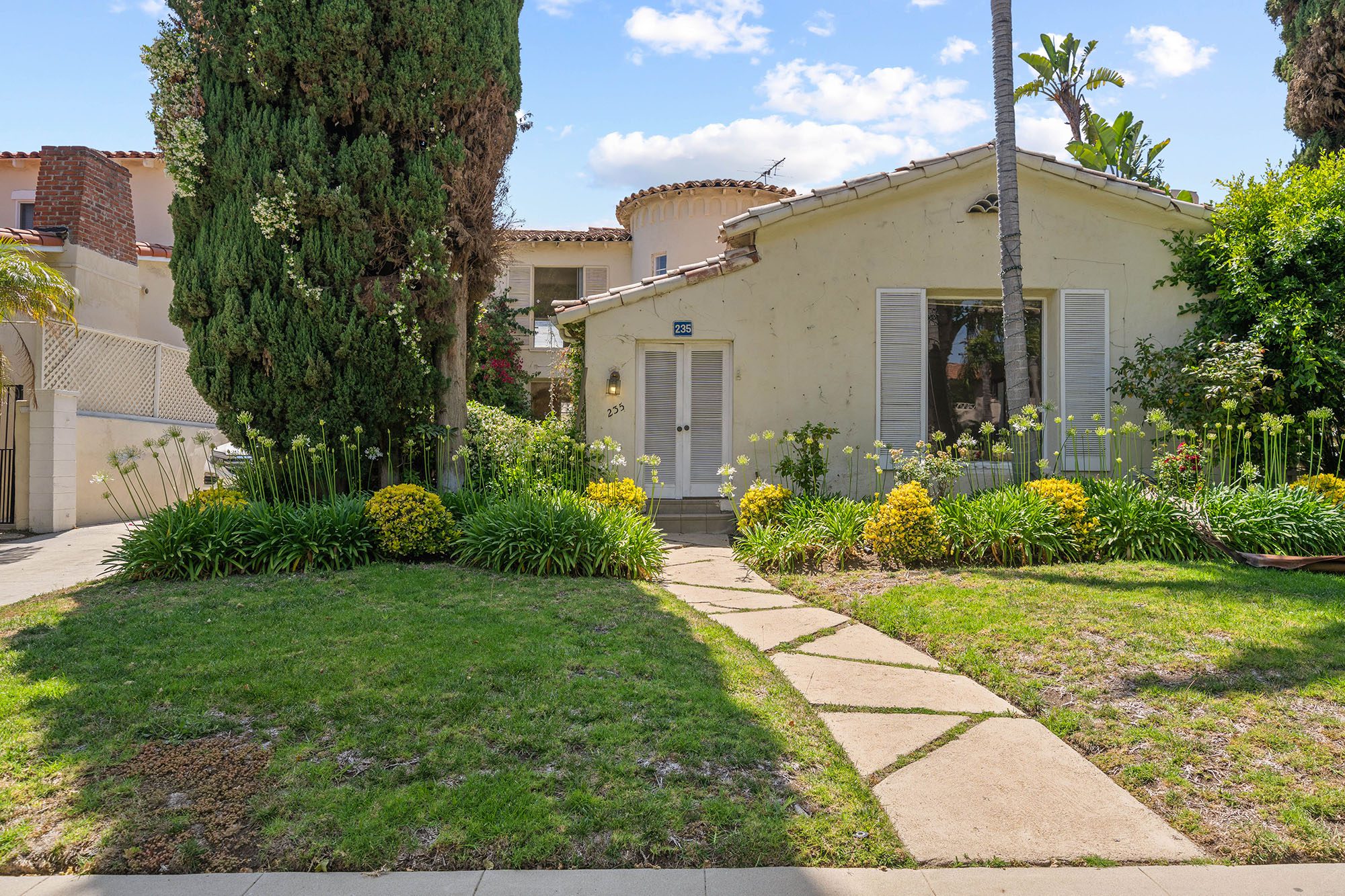 Charming Mediterranean home at 50-yard line of the coveted 200 block of Bedford Drive. Its ideal layout with 1 bed down and 4 up allows for large living spaces on the main floor and makes entertaining easy. The home receives abundant natural light throughout, as it lies on the west-side of the street. Ample backyard space encompassed by mature trees for al fresco dinners. Conveniently accommodates 4+ vehicles along the private, wide driveway leading to a two-car garage. Featuring rear alley access and no commercial property behind it. Moments away from endless and on-trend retail and dining options, Roxbury Park and excellent Beverly Hills district schools.