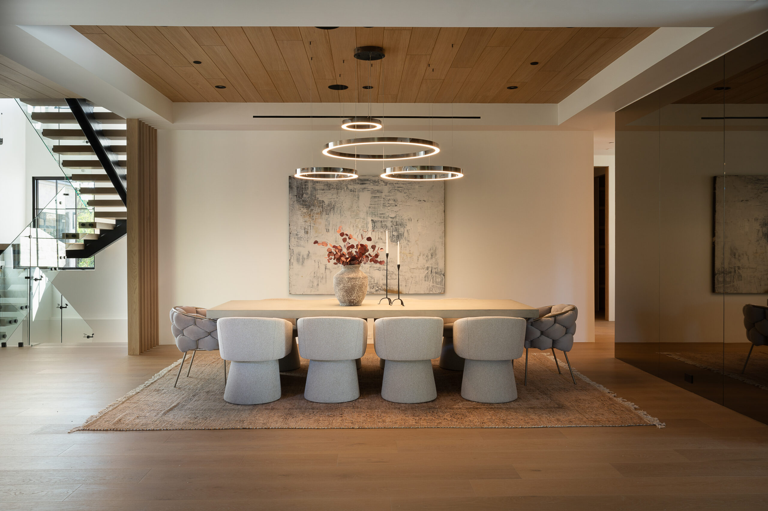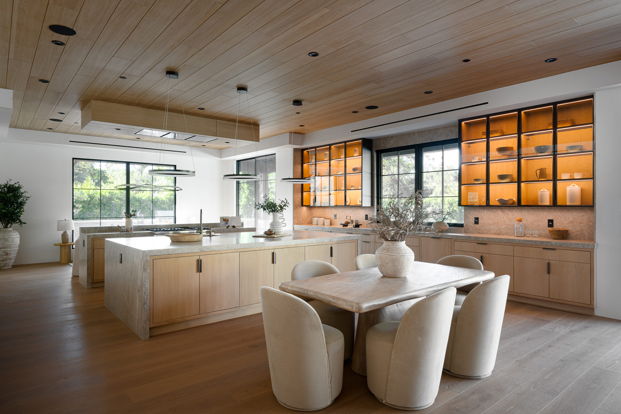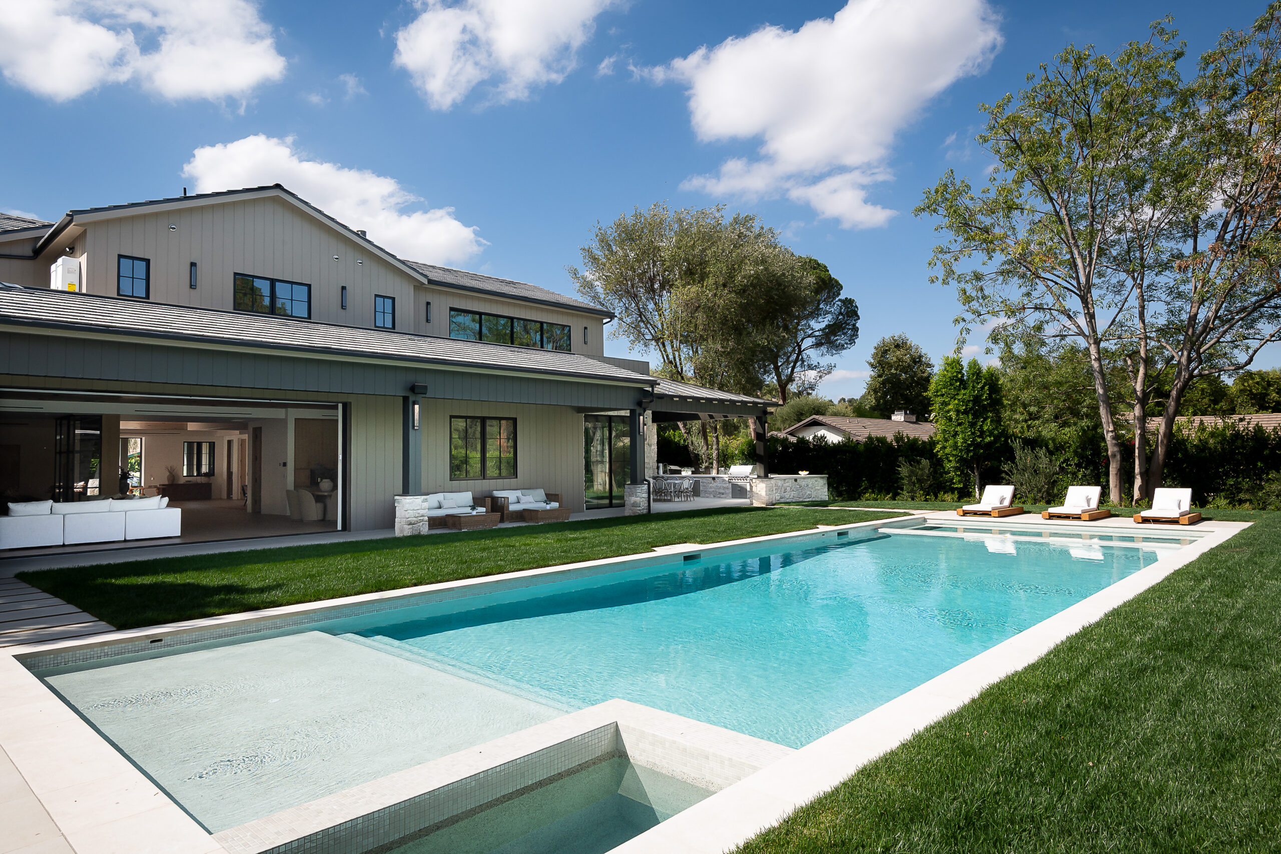 Behind the gates of Hidden Hills, where privacy meets prestige, lies a modern farmhouse of exceptional warmth and character. Designed for those who love to entertain and live beautifully, this residence spans approximately 12,780 sq.ft. of living space and (over 15,000 sq.ft. total including garage and covered patios), blending natural textures with thoughtful architectural details. A circular driveway leads to a grand entry foyer that opens to sun-filled living spaces, an inviting family room with glass wine displays, an elegant dining area with cocktail bar, and a luxurious family kitchen featuring dual counter islands additional full chef's prep kitchen, and walk-in pantry. The main level also includes an office with a glass-enclosed car gallery and a private guest suite. The lower floor/basement level is devoted to wellness and leisure, offering a gym with steam shower and sauna, glass sliding doors opening to a tranquil outdoor patio, a theater room, bar with counter seating, and lounge area with big screen TV, guest/maid suite, and a secure safe room. Upstairs, the primary suite features a private balcony, dual walk in closets, and a spa-like bath, accompanied by four additional en-suite bedrooms and a laundry room. Outdoors, a resort-style setting awaits - with a vast pool and spa, outdoor dining and BBQ pavilion, lush lawns, mature trees, and a separate one-bedroom, one bathroom ADU. A six - car garage, with an additional six parking spaces complete this extraordinary estate, crafted for elegant living in one of Los Angeles' most coveted gated communities.