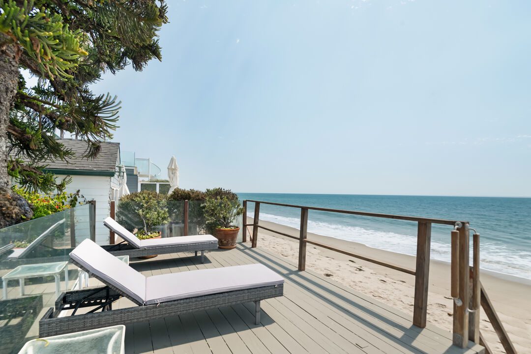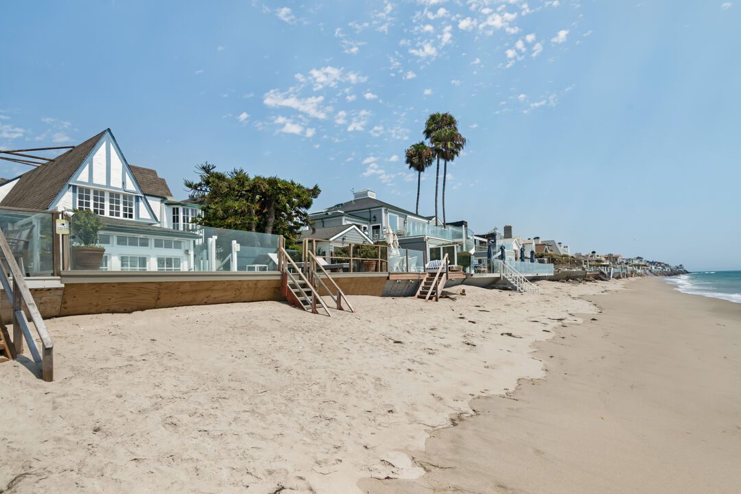Historic Malibu Colony. This home, on 37.5 feet +/- of beach, is located in the sandiest section of The Colony. Built in 1928, and upgraded through the years, it remains a classic. Two-story beachside windows lead to a private patio adjacent to the tea house. Five bedrooms, four and one-half baths (which includes a complete, separate guest quarters with kitchenette), and an office. High ceilings, oversized brick fireplace, and an enchanting bougainvillea covered flagstone entryway. Still the charming, relaxed and comfortable beach home after almost 100 years.
