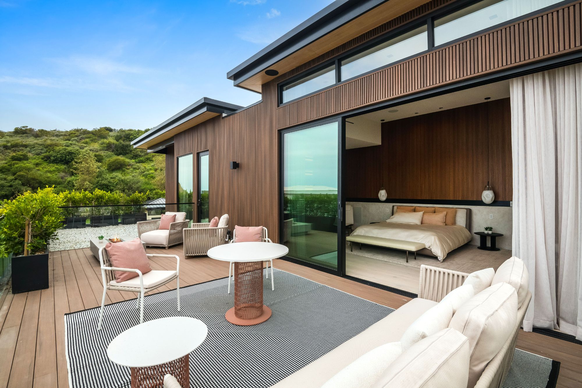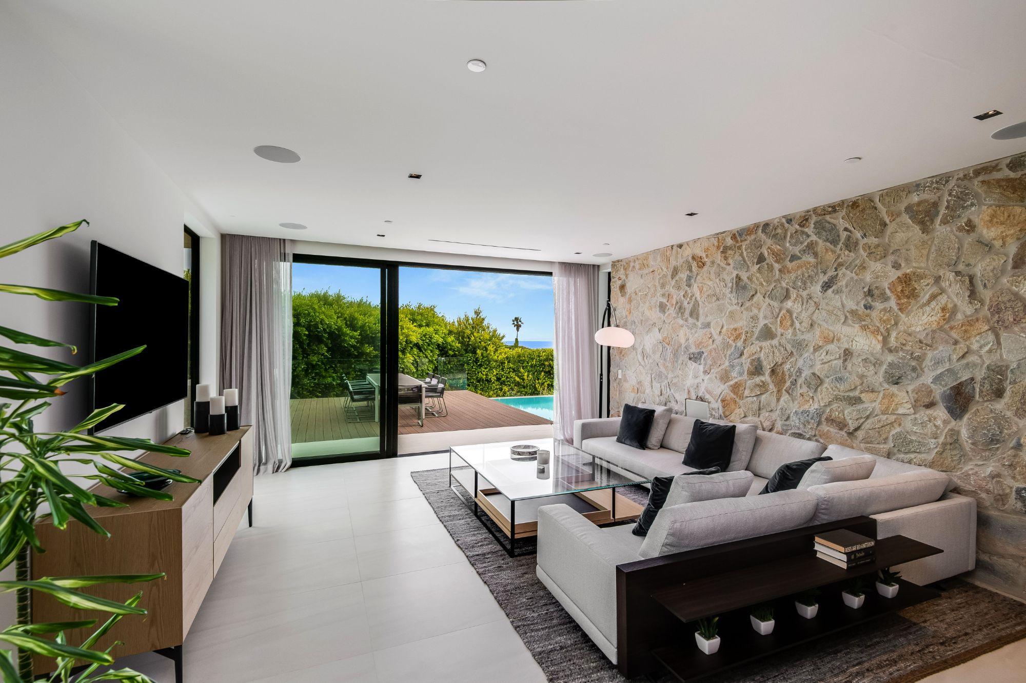 Welcome to Malibu Colony Estates on one of Malibu's most sought-after streets, Malibu Road. This brand new construction warm Contemporary compound sits behind double gates on just over an acre and is surrounded by some of Malibu's most prestigious beach homes and the Pacific Ocean. Extremely private and just a stone's throw from the Malibu Country Mart this home is conveniently located for you to enjoy the safety and privacy of a small gated community with access to the best food and shopping that Malibu has to offer! This one-of-a-kind architectural compound features 6 bedrooms, 8 bathrooms with 7,334 sq ft of luxurious living space. This home has been built with the most high-end construction and finished with the finest materials that were hand-picked and imported from Italy. Upon entering through a beautiful oversized custom wood pivot door you are immediately greeted by the feeling of a warm yet grand modern beach house with a huge yard and stunning exterior views. The open floor plan consists of a perfect balance of indoor/outdoor flow overlooking the infinity pool, spa, and ocean views. Poliform cabinetry, Miele appliances and a porcelain center island complete the kitchen with all top-of -the-line materials and appliances. The grand living and dining rooms sit adjacent to the kitchen allowing the perfect space for family gatherings or entertaining. The primary suite includes a small bar, a private balcony, custom-made Poliform walk-in wardrobe and breathtaking ocean views. The floor-to-ceiling neolith slabs in the primary bathroom engulf you in true Italian opulence. The serene primary bathroom consists of a double sink, grand tub and a large open shower all finished in Cea plumbing. This lower level features a media room with a pool table and private bar completed with state-of-the-art furniture from Minotti, Molteni, B&B Italia and Bonaldo, which are available to be sold with the property. The outdoor living space is truly amazing featuring a huge grassy backyard, guest house, a 45x22 infinity-edge pool with an outdoor BBQ, dining area and private seating area from renowned brands Kettal and Roda.