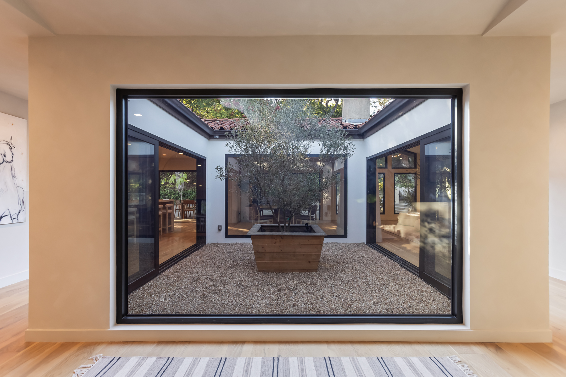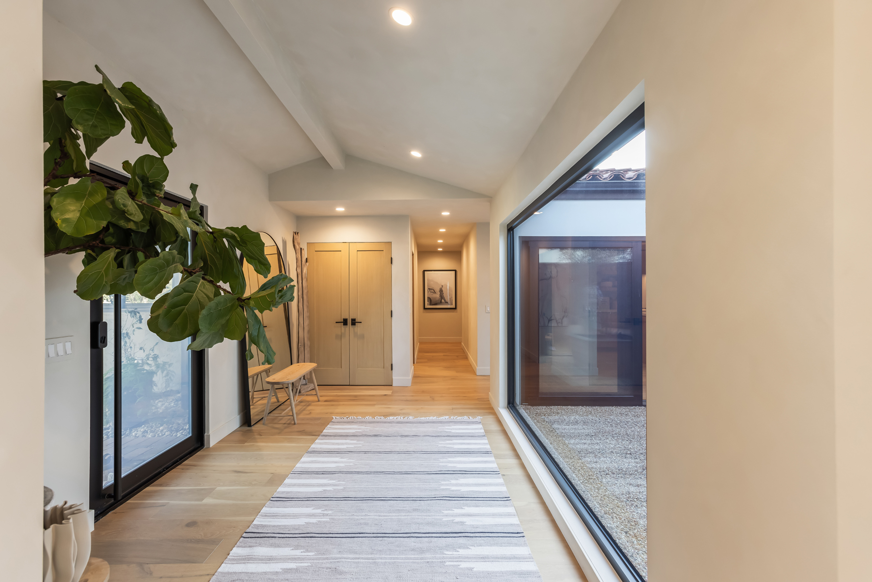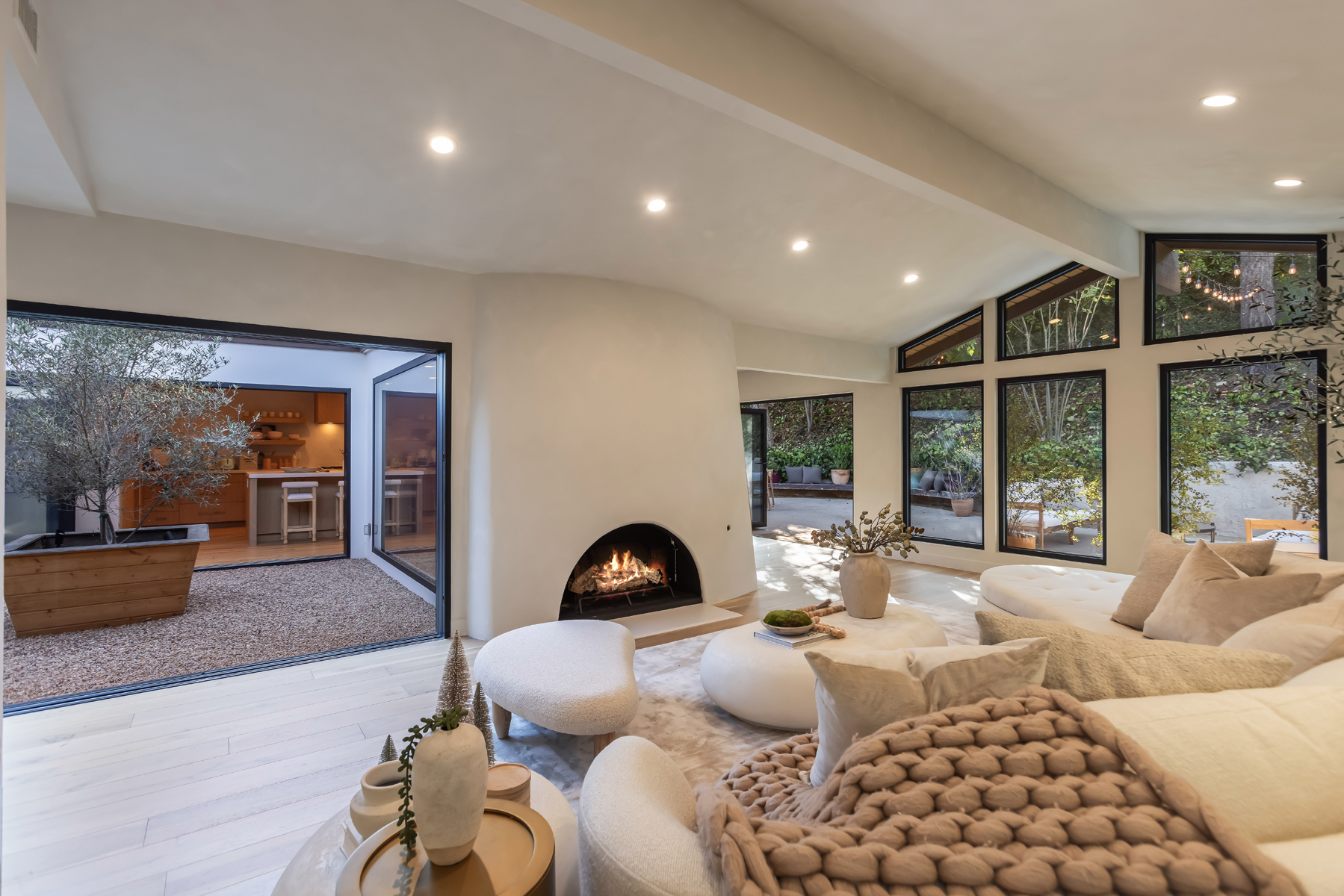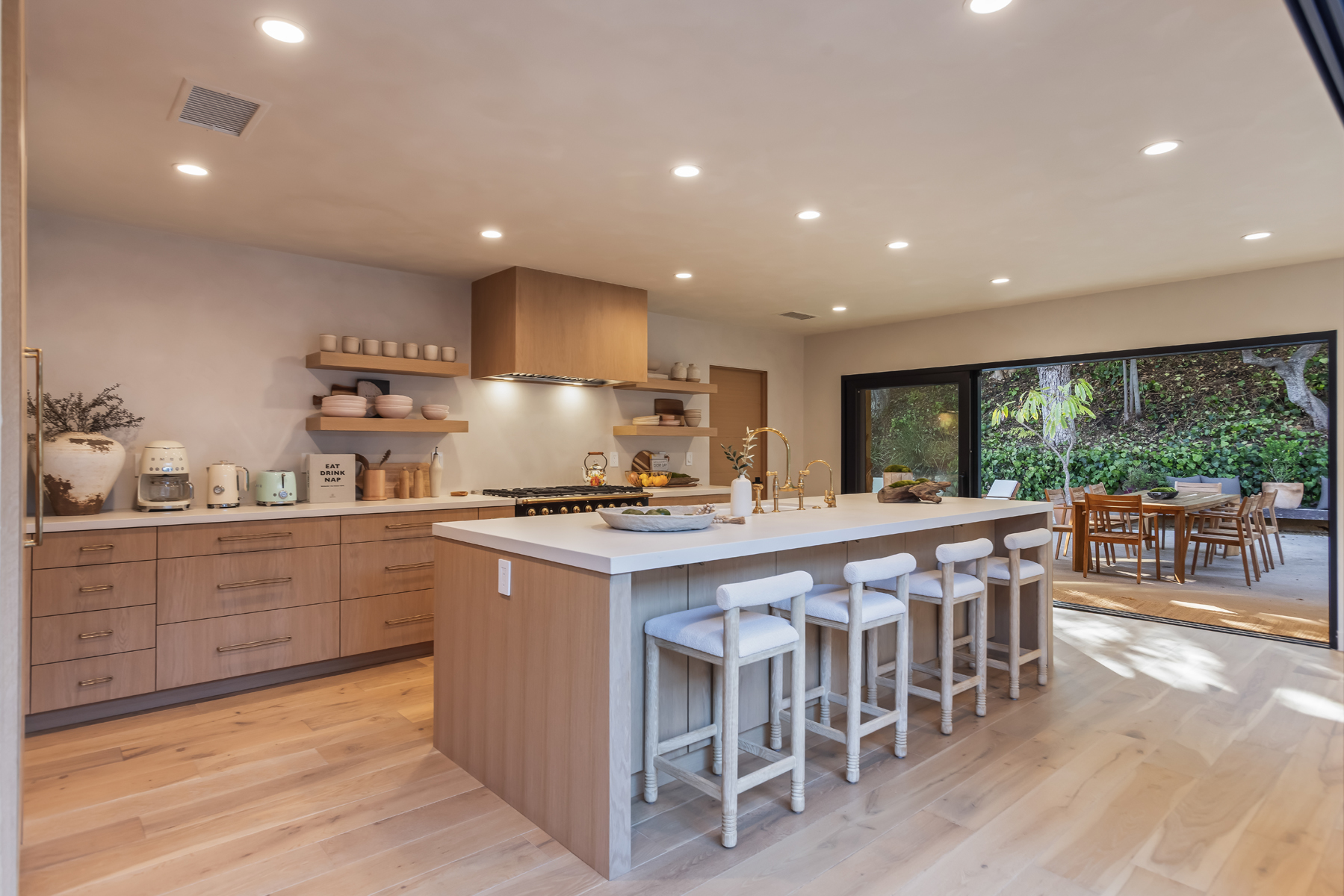 Set in the exclusive Westridge enclave of Mandeville Canyon, this reimagined 5-bedroom, 4-bathroom single-level home offers a rare blend of high design, natural beauty, and city convenience.Inspired by Scandinavian aesthetics, the home features white oak floors, custom oak cabinetry, limewashed walls, and natural textures throughout. At its center, an open-air courtyard with a mature olive tree brings in natural light and a sense of calm.The chef's kitchen pairs La Cornue and Thermador appliances with Dekton countertops, European hardware, and a walk-in pantry balancing function with refined style. Vaulted ceilings and expansive living areas create a seamless, sunlit flow.The primary suite offers a private escape with a spa-like bath, freestanding soaking tub, and dual vanities. Each additional bathroom has been thoughtfully updated with designer finishes. A flexible bonus room (currently used as a gym) and a whole-house water filtration system support wellness-focused living.With direct trail access to sweeping city and coastline views just minutes from Brentwood, the beach, and the Westside this is a rare opportunity to own a private, design-forward retreat in one of L.A.'s most sought-after canyon settings.