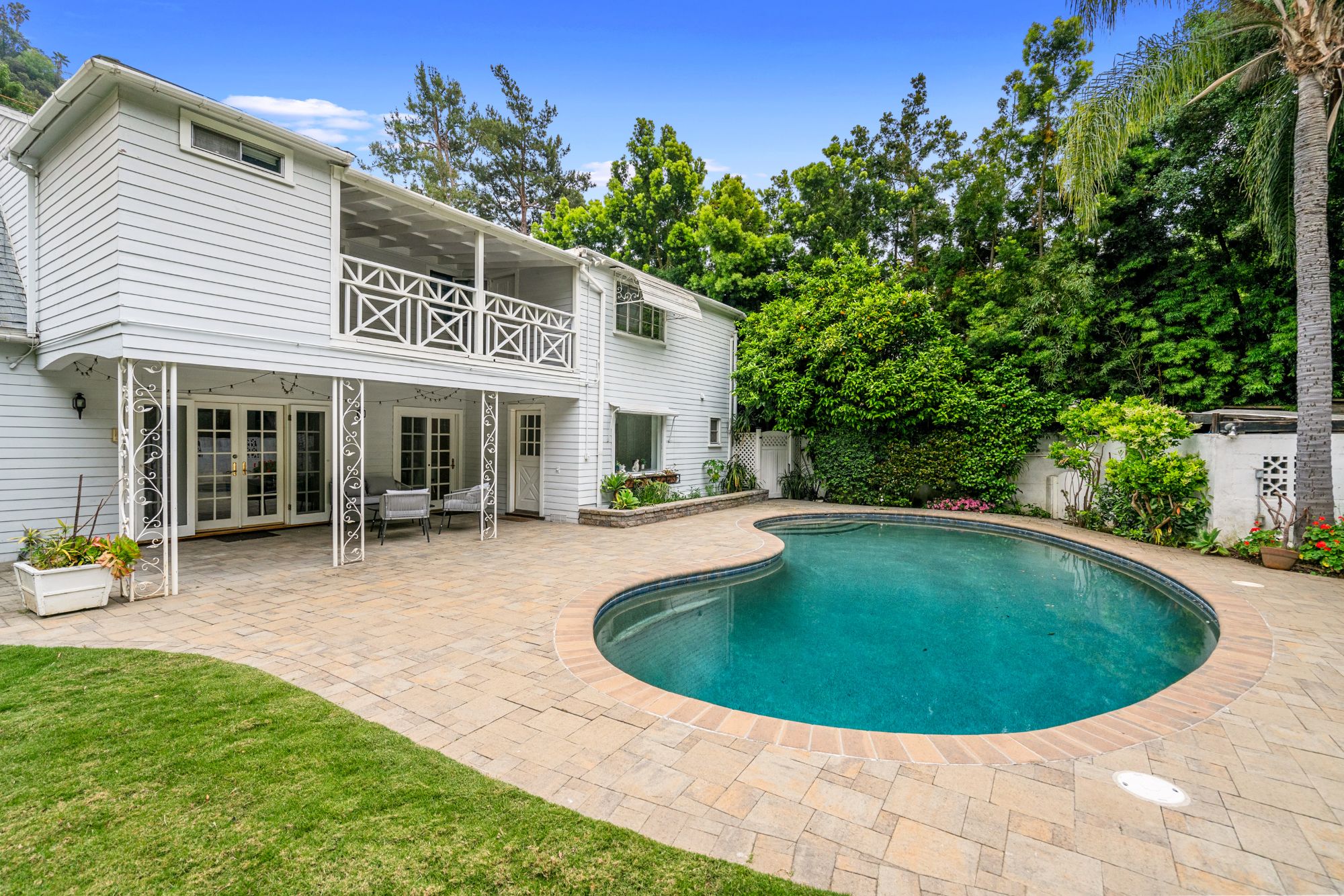 Welcome to 2427 Benedict Canyon Drive in Beverly Hills, where traditional charm meets modern conveniences. This residence spans over 2,200 square feet nestled on a substantial 10,800 square foot lot, offering a blend of comfort and potential for updates or expansion. The home features three bedrooms and four bathrooms, accompanied by two additional rooms that are great for an office or den, providing flexibility for conversion to bedrooms or other uses according to your needs. The primary bedroom boasts his and hers walk-in closets and a large covered balcony that overlooks a lush backyard perfect for enjoying quiet moments outdoors. Significant updates include a newly renovated kitchen equipped with the latest high-end appliances and premium finishes, ensuring a blend of elegance and functionality. Step outside to a refreshing Pebbletec pool with updated equipment, surrounded by a newly installed patio ideal for hosting gatherings or enjoying the California sun. The garden is adorned with thriving rose bushes and citrus trees against a backdrop of stunning canyon views. This home features and attached two-car garage and additional parking for four cars in the gated circular driveway, ensuring ample space for vehicles and storage. Recent updates also include new HVAC, updated plumbing and electrical. Located just three miles from the renowned Warner Elementary School. This property offers a perfect canvas for those looking to gradually shape their dream home while enjoying the benefits of a move-in ready space with significant areas remodeled. Whether you're looking to invest or create your own personalized retreat in Beverly Hills, 2427 Benedict Canyon Drive presents an excellent opportunity to craft a home that truly reflects your vision and lifestyle.