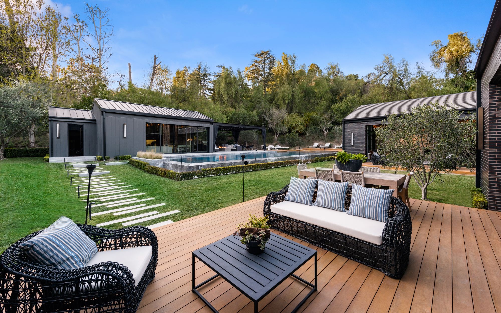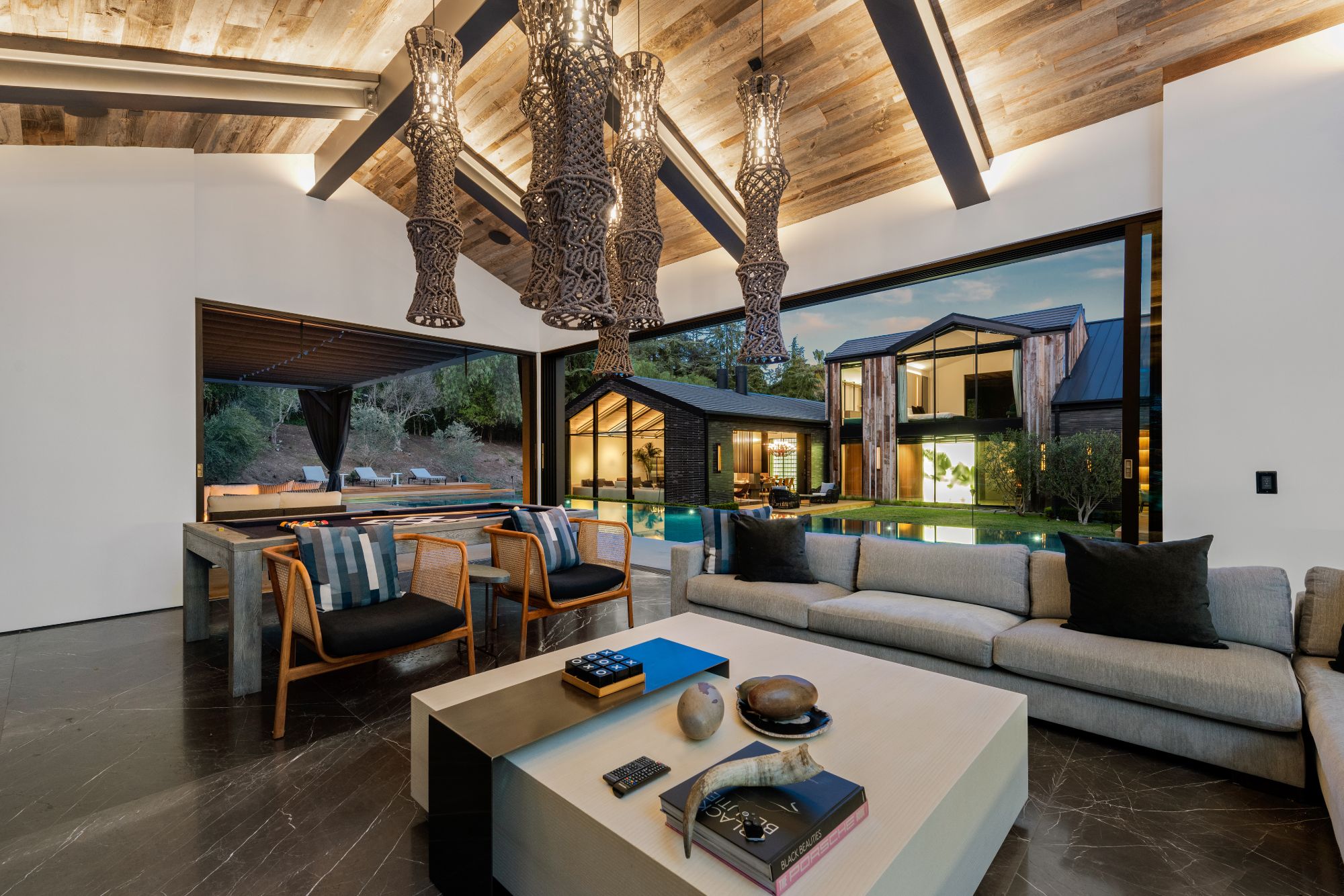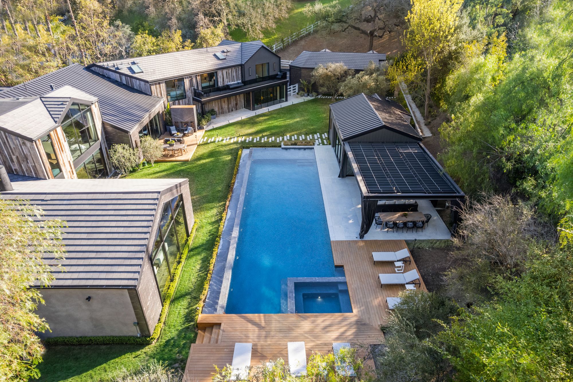 AUCTION: Bid April 18-30. Listed for $17.495M | No Reserve | Starting Bids Expected Between $7M-$12M | Showings by appointment. Welcome to this luxurious, modern farmhouse retreat in the ultra-coveted Hidden Hills community. Set on an acre and a half at the end of a private cul-de-sac in the guard-gated community, this estate offers the ultimate in privacy and security. The home's unique architecture, designed by Nobel LA, offers the best in indoor/outdoor living. The interior features double-vaulted wood ceilings, glass walls, and opulent details, such as the bespoke brass fireplace and dual Preciosa chandeliers. The stunning primary suite offers a fireplace with a sitting area, a designer walk-in closet, and a spa-like bathroom with dual chiseled stone vanities, a steam shower, and a soaking tub. The principal residence and a separate guest house are surrounded by an outdoor oasis offering a large flat lawn, a hardscape outdoor entertaining area, and a 65' swimming pool with a spa. Poolside cabana with indoor sitting area/game room, bathroom, built-in BBQ, fire pit, and video wall. Additional amenities include a home theater and fitness/music studio. Nestled within the tranquil Hidden Hills, this exquisite modern farmhouse retreat is not just a home; it's a testament to luxury living at its finest.