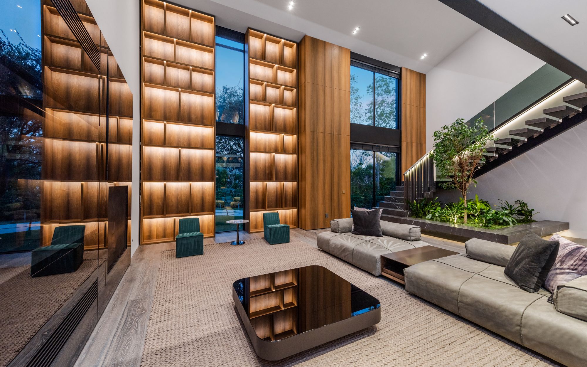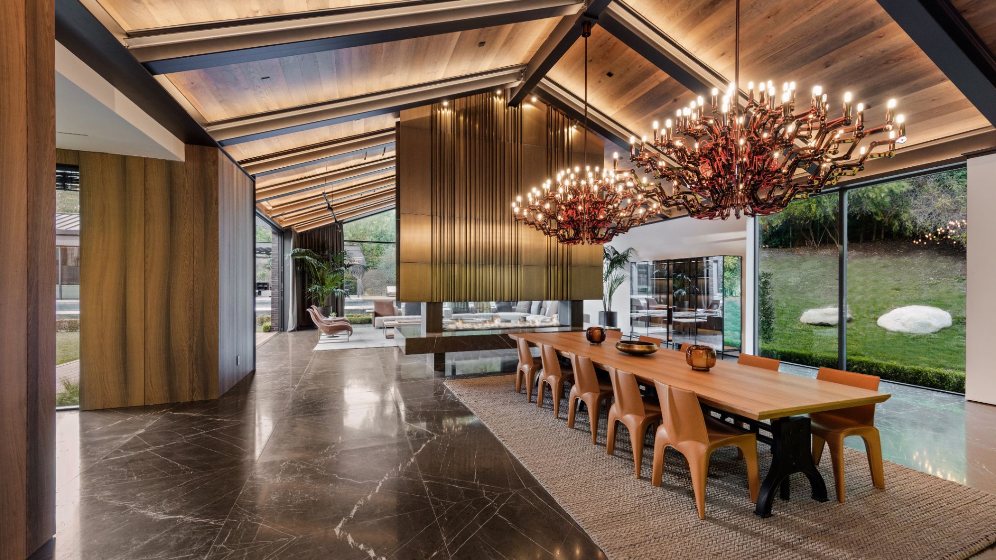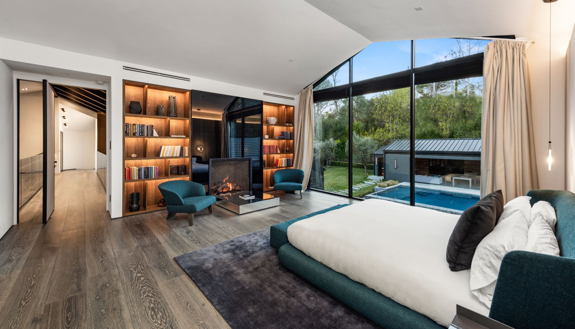 AUCTION: Bid April 18-30. Listed for $17.495M | No Reserve | Starting Bids Expected Between $7M-$12M | Showings by appointment. Welcome to this luxurious, modern farmhouse retreat in the ultra-coveted Hidden Hills community. Set on an acre and a half at the end of a private cul-de-sac in the guard-gated community, this estate offers the ultimate in privacy and security. The home's unique architecture, designed by Nobel LA, offers the best in indoor/outdoor living. The interior features double-vaulted wood ceilings, glass walls, and opulent details, such as the bespoke brass fireplace and dual Preciosa chandeliers. The stunning primary suite offers a fireplace with a sitting area, a designer walk-in closet, and a spa-like bathroom with dual chiseled stone vanities, a steam shower, and a soaking tub. The principal residence and a separate guest house are surrounded by an outdoor oasis offering a large flat lawn, a hardscape outdoor entertaining area, and a 65' swimming pool with a spa. Poolside cabana with indoor sitting area/game room, bathroom, built-in BBQ, fire pit, and video wall. Additional amenities include a home theater and fitness/music studio. Nestled within the tranquil Hidden Hills, this exquisite modern farmhouse retreat is not just a home; it's a testament to luxury living at its finest.