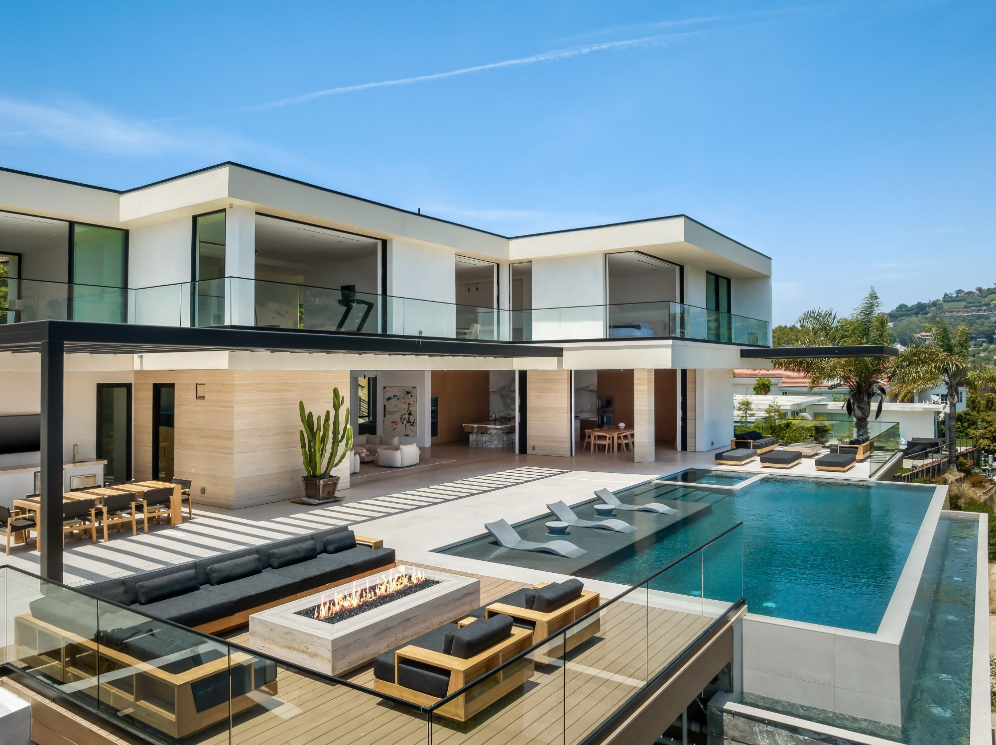 INTRODUCING AN UNPARALLELED LUXURY RESIDENCE NESTLED ALONG THE RIDGE OF THE PRESTIGIOUS JUPITER DRIVE IN MOUNT OLYMPUS. This newly constructed masterpiece epitomizes refined elegance, boasting meticulous design and grand scale throughout. Upon entering, be captivated by the modern wood panel ceilings and St. Raphael limestone floors, seamlessly integrating an open floor plan that fluidly connects all principal rooms. The chef's kitchen is a culinary dream, fully outfitted with state-of-the-art Gaggenau appliances, dual islands, and breathtaking views framed by Italian automatic glass doors that vanish into the walls, epitomizing the quintessential indoor/outdoor California lifestyle. The main floor is an entertainer's paradise, featuring a sophisticated wet bar with an ice maker and refrigerator, a full-size wine cellar, a private cinema, a stylish powder room, an en-suite bedroom, a laundry room, direct access to a two-car garage, and an outdoor kitchen. Ascend the striking 16-foot staircase to the primary suite, a sanctuary of luxury with a living area, refreshment center, expansive bedroom with a fireplace and city views, a walk-in closet that doubles as a safe room, and a lavish bathroom adorned with Borghini Italian marble, a steam shower with a seating area and fireplace, and a large bathtub. The second floor, with its exquisite white oak floors, houses two additional en-suite bedrooms and a versatile open area perfect for a gym, fourth bedroom, office, or additional living space, complemented by a secondary laundry area. The exterior is an oasis of tranquility and luxury, featuring a magnificent zero-edge pool and jacuzzi overlooking the canyon and cityscape, an outdoor living room with a fire pit and TV, and a fully equipped outdoor kitchen with a BBQ, sink, and bathroom with a shower. This residence, situated on one of the finest streets in Mount Olympus, offers an unparalleled lifestyle of sophistication and comfort. Experience the epitome of luxury living with this extraordinary property.