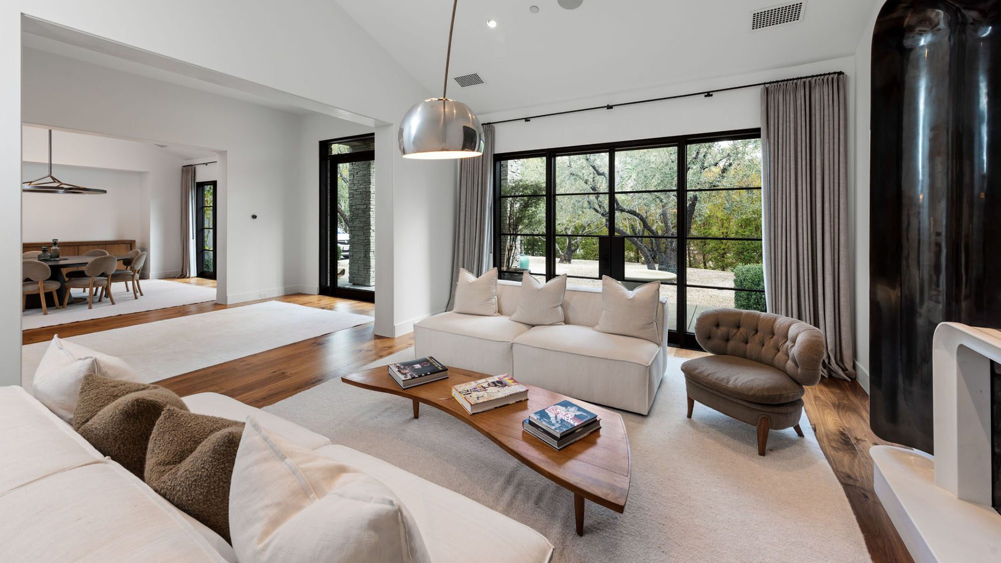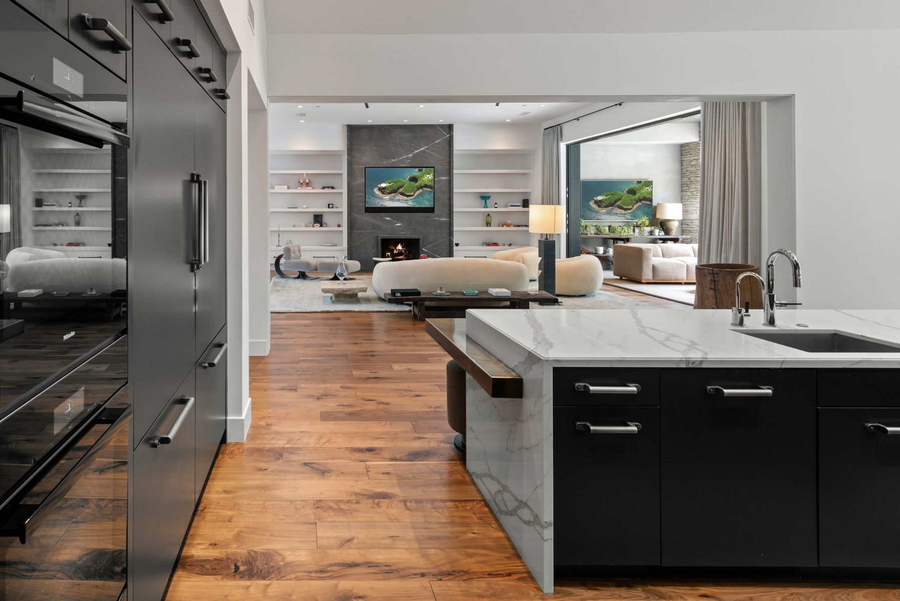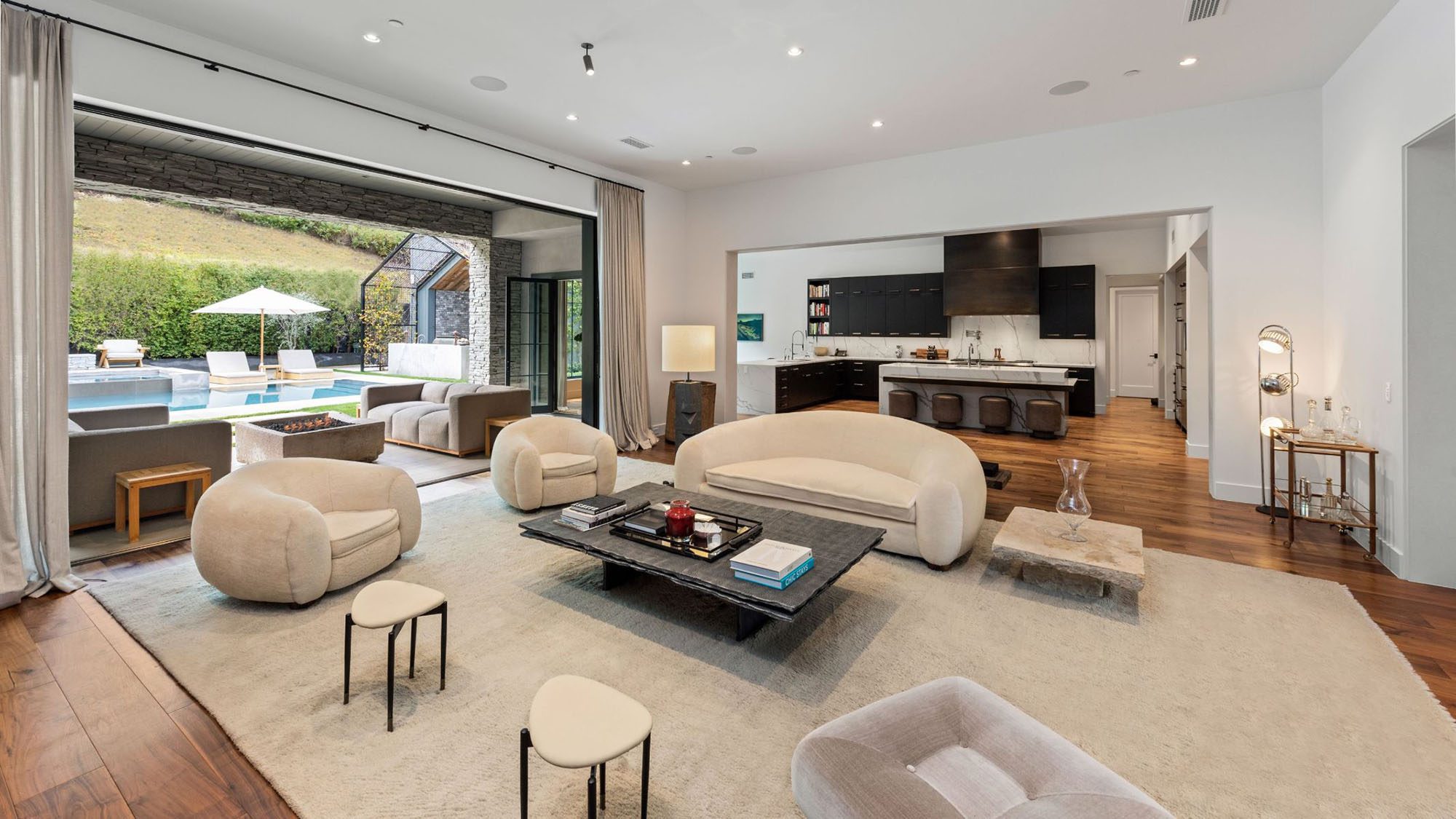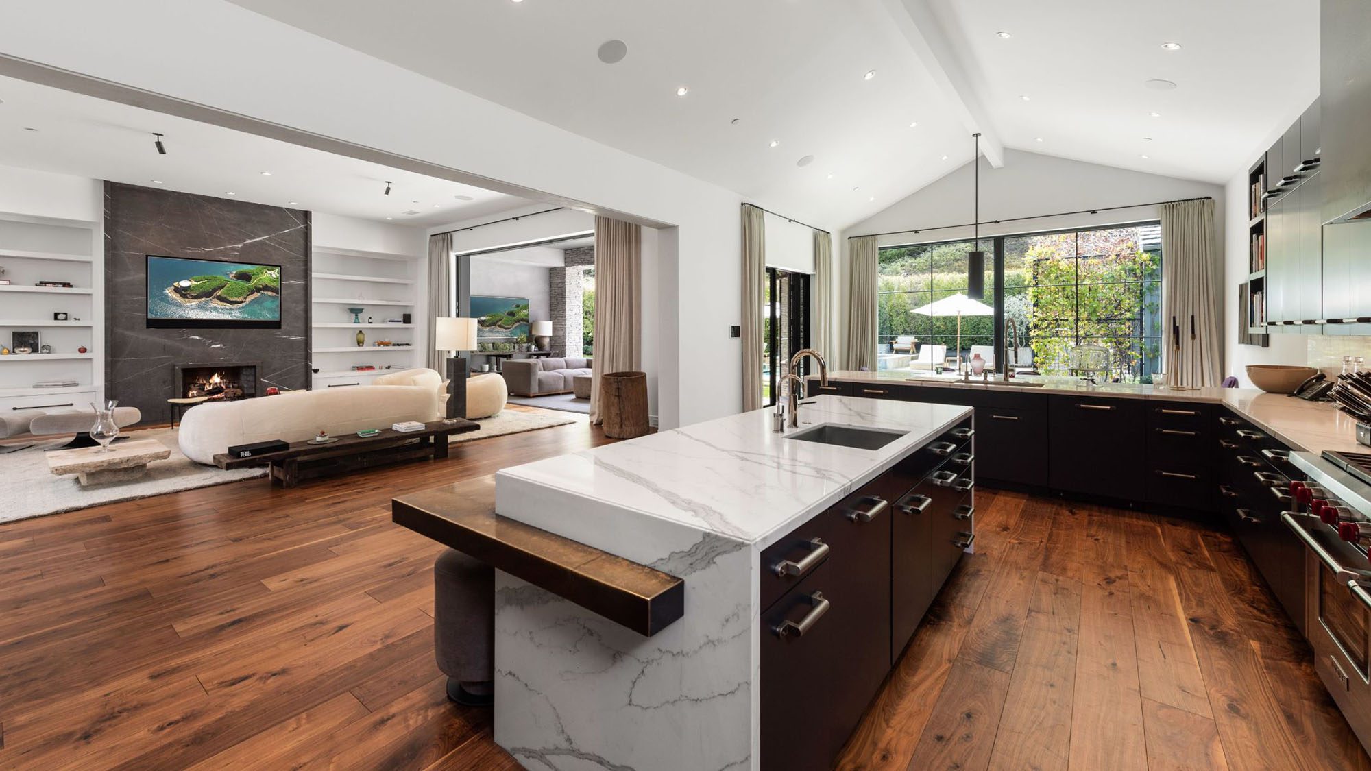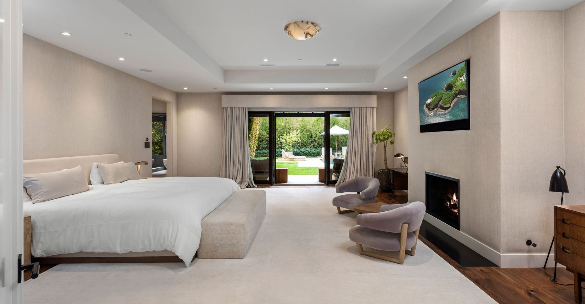 Custom-built celebrity compound designed by the legendary Waldo Fernandez. Situated amidst lush, mature trees on the most sought after street in Hidden Hills on a quiet cul-de-sac. The contemporary design features a bright and airy open floor plan with a stunning chef's kitchen boasting Wolf & Miele appliances, adjoining breakfast room with panoramic windows that showcase the picturesque landscape, and a large family room with a fireplace and high ceilings. All of the finishes have been custom curated from around the globe, including Walnut floors throughout, with all the latest and greatest amenities. The first-floor primary suite is a rare find, complete with an oversize custom closet and steam shower. Additional amenities include floating staircase, smart home system, gym, and custom home theater. Step outside to the impeccably landscaped grounds highlighted by a sparkling zero-edge pool, 10+ person spa, BBQ center, fire pit, and rolling lawns. Separate guest house offers bar, lounge area, and fireplace. Short distance to community tennis courts and pool. Experience the ultimate in luxury living in this custom-built compound designed by Waldo Fernandez, boasting stunning features and amenities throughout the luxurious property.