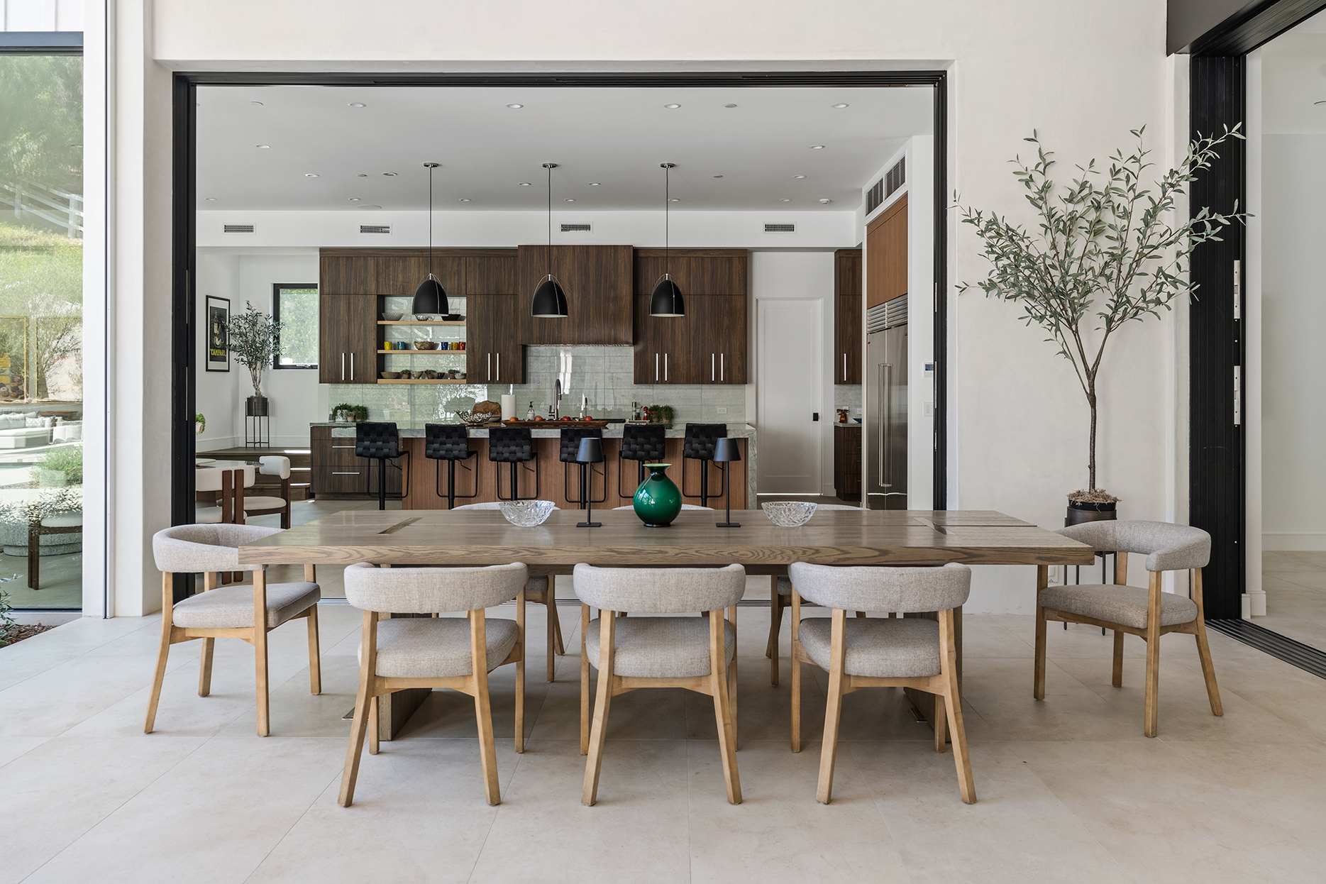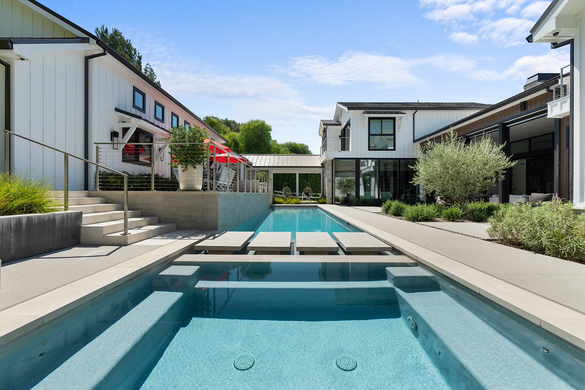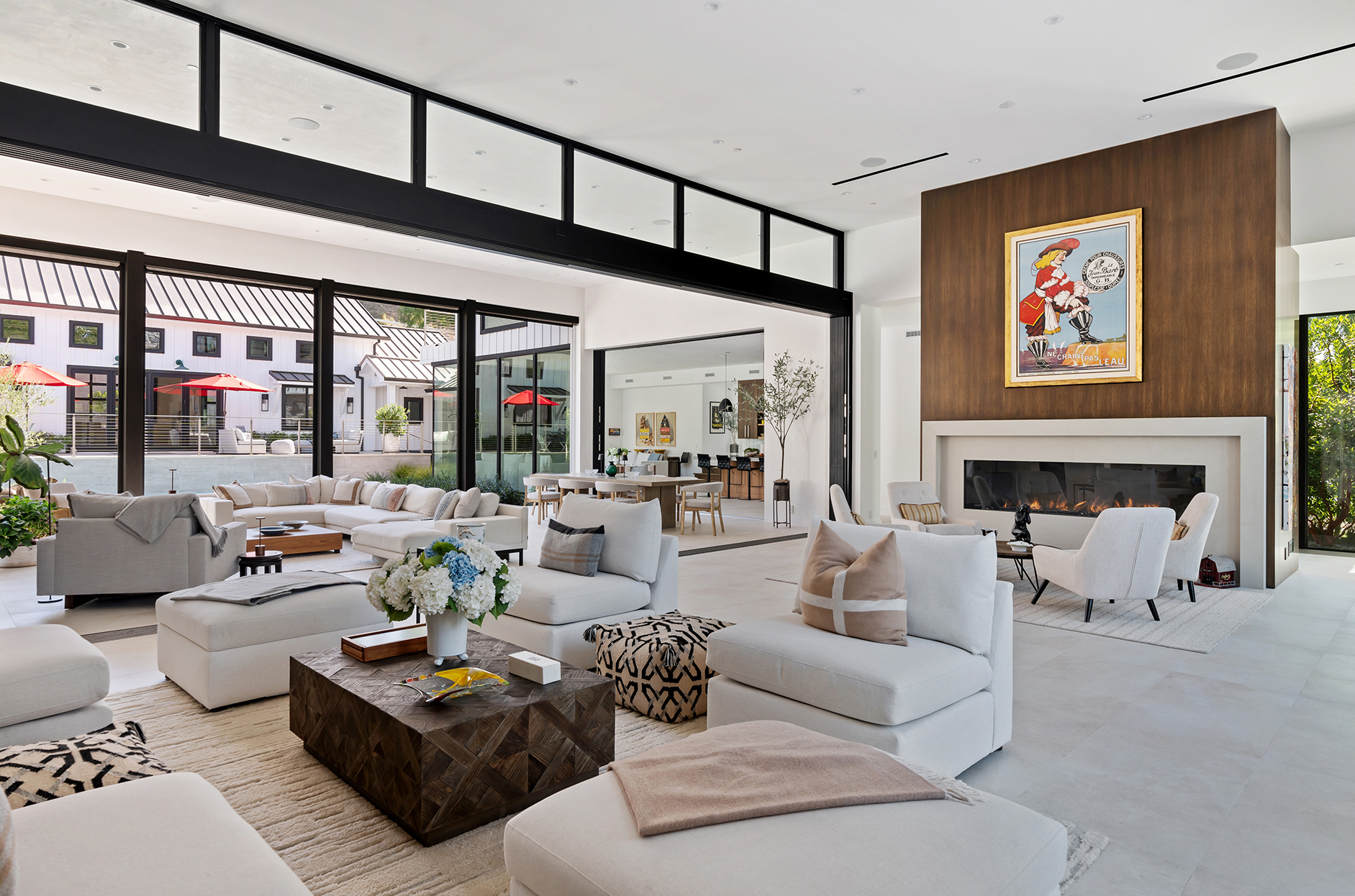 NEW LOOK, NEW VIBE, NEW PRICE AND A STELLAR OPPORTUNITY TO OWN THE COOLEST HOUSE IN HIDDEN HILLS! Don t miss this stunning 6-bedroom, 11-bathroom Hidden Hills modern estate spanning approximately 9,000 sq.ft. on 1.22 acres! This property epitomizes the ultimate California lifestyle, blending timeless elegance with modern luxury. Designed for entertaining and family enjoyment, the home features soaring 15-foot ceilings, over 40 feet of fully pocketed glass doors for seamless indoor-outdoor living and walls of stone and wood accents. Enter through a massive glass pivot door and be transported to luxury resort living, with views of the waterfall featured pool. The chef's open-concept kitchen is a culinary enthusiast's dream, featuring a massive center island, professional-grade appliances and a hidden second fully functional chef s kitchen. Lounge outside by the pool and adjacent spa that seats 15, expansive deck, and fire pit area. Want more privacy? -then sunbathe outside either of the two primary bathrooms in a private garden. And don t forget to check out the versatile party barn, equipped with a high-end commercial sized wet bar complete with second ice machine as well as a 100 inch tv and surround sound, guest suite, two powder rooms and a full bath - a space perfect for entertaining clients, creating personal space extraordinaire or letting the teens have their fun. AND this house was designed with the environment in mind - SMART HVAC, sustainable drought resistant garden and water reclamation and cleaning system in place. With an integrated music system inside and out, Vantage lighting system, an upper bocce court and yard area, and over 16 producing fruit trees there is nothing missing.
