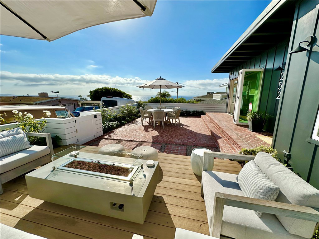 Sweeping Coastline views from this darling remodeled, single-level home just above Heisler Park and Shaws Cove Beach. This completely remodeled, turn-key home is beachy-chic, with all-new designer decor and everything you need for a luxurious escape to enchanting Laguna Beach. Sunlight-filled, open-concept floorplan has walls of windows that pocket open and flow from the charming Living room - with high-beamed ceilings and cozy fireplace - to an expansive outdoor entertaining area (complete with al fresco dining for six and patio seating nestled in a lovely, enclosed garden). Almost all rooms enjoy the Catalina Island ocean views. The Chef's quality kitchen opens to the dining area and features Top-of-the-line appliances and beautiful built-in cabinetry. The dining room also looks to the view and seats 6 guests. The Primary suite has a king-sized bed overlooking the patio and dreamy coastline views. The ensuite bathroom has a step-in shower and is equipped like a luxury spa. The secondary suite has a Queen bed and overlooks the back patio and ocean views to the north. A third guestroom has a convertible day-bed that becomes a King-sized bed when pulled out. The second bathroom also features a step-in shower. The Back Patio has a BBQ area and a wonderful entertaining space. This quintessential Laguna Cottage is within walking distance of the beach and town, the Boat Canyon shopping center (with Pavillions, Yoga and Fitness centers, and a half dozen restaurants) just half a block away. Riddle Field Park is at the end of the street.