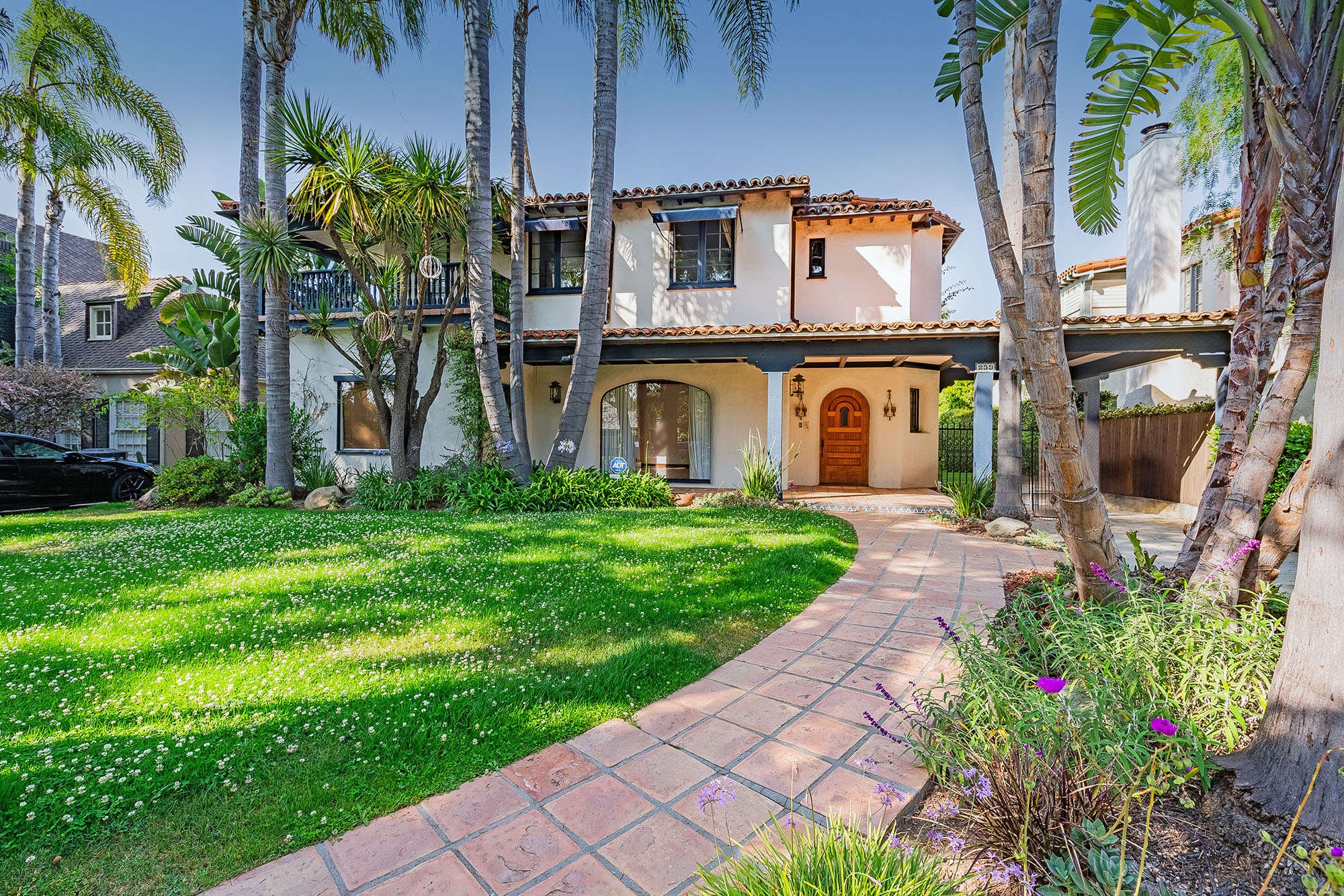 Welcome to this enchanting 1920s Spanish residence, where timeless elegance meets modern comfort. This stunning home showcases authentic period details and unparalleled craftsmanship. Step into the oversized living room, featuring original red oak floors, a large wood-burning fireplace, and French doors that open to a charming courtyard adorned with a fountain and rare Camellia trees planted between 1927 and 1930. The foyer and elegant dining room boast original crown molding with seven layers of hand-applied gold leaf, adding a touch of opulence to every meal. A cozy library off the living room offers a perfect retreat, while the family room with a fireplace leads to an outdoor oasis. Here, you’ll find an ozone pool and spa, both with waterfalls, surrounded by a lush yard. The large finished garage provides versatile space, ideal for a recreation room. Upstairs, each bedroom offers its own private balcony and spacious dressing room, ensuring comfort and privacy for everyone. The expansive 8,940 sq ft lot, located on the west-facing side of the street, provides stunning sunset views on one of the most picturesque, tree-lined blocks in the area. Come experience the magic of this beautiful home and make it your own.