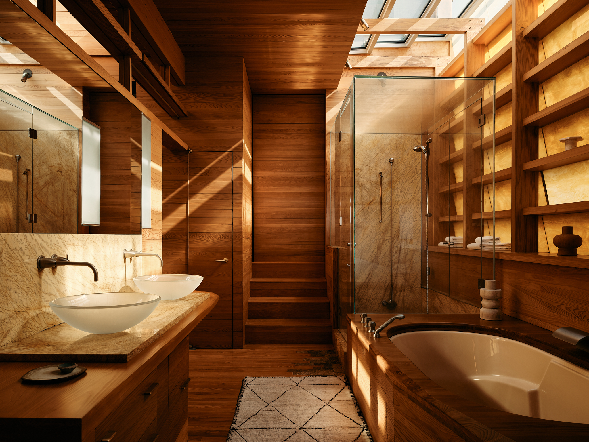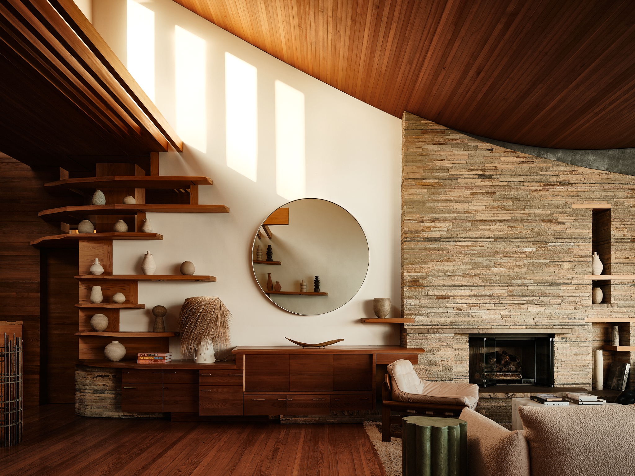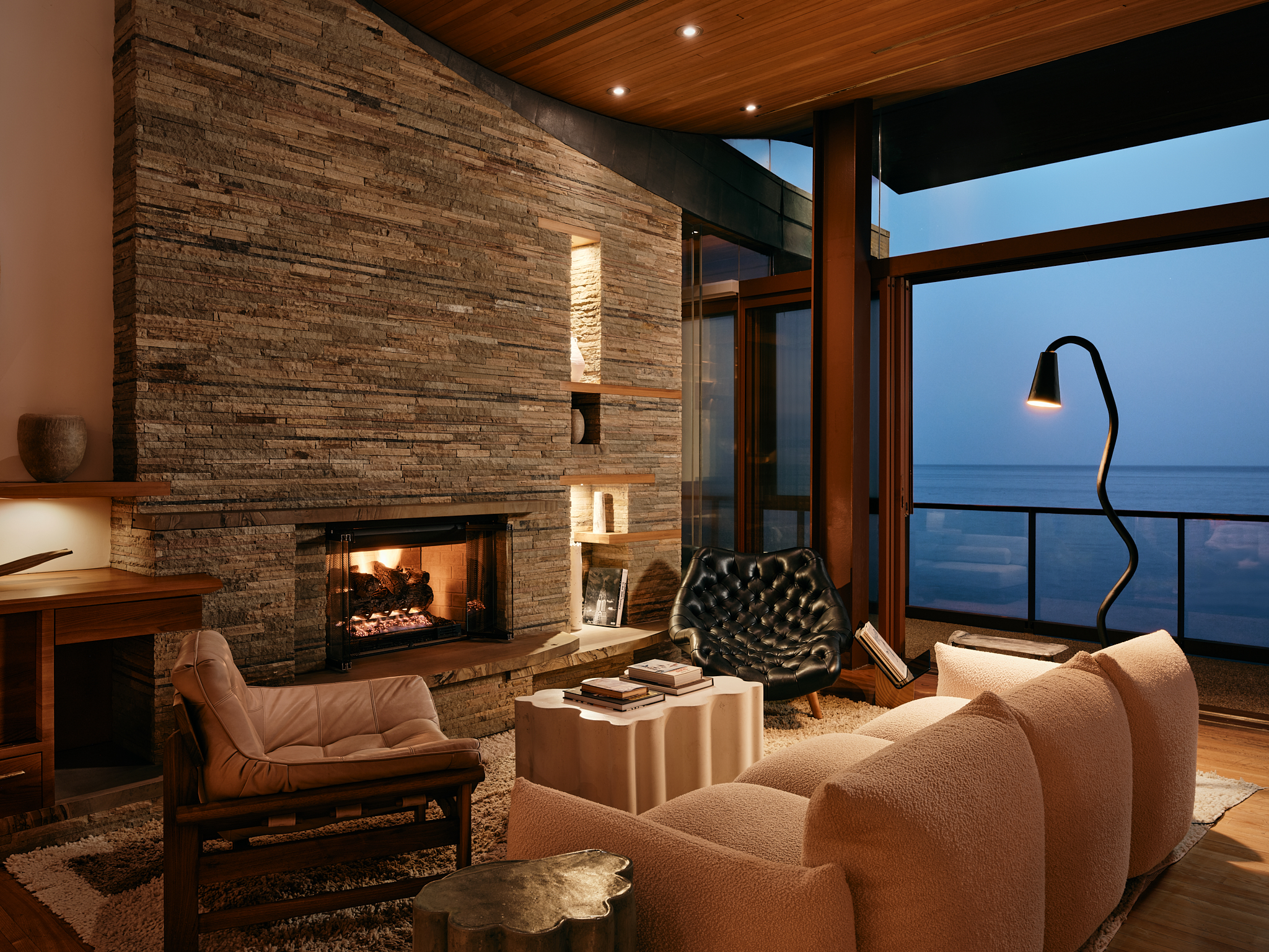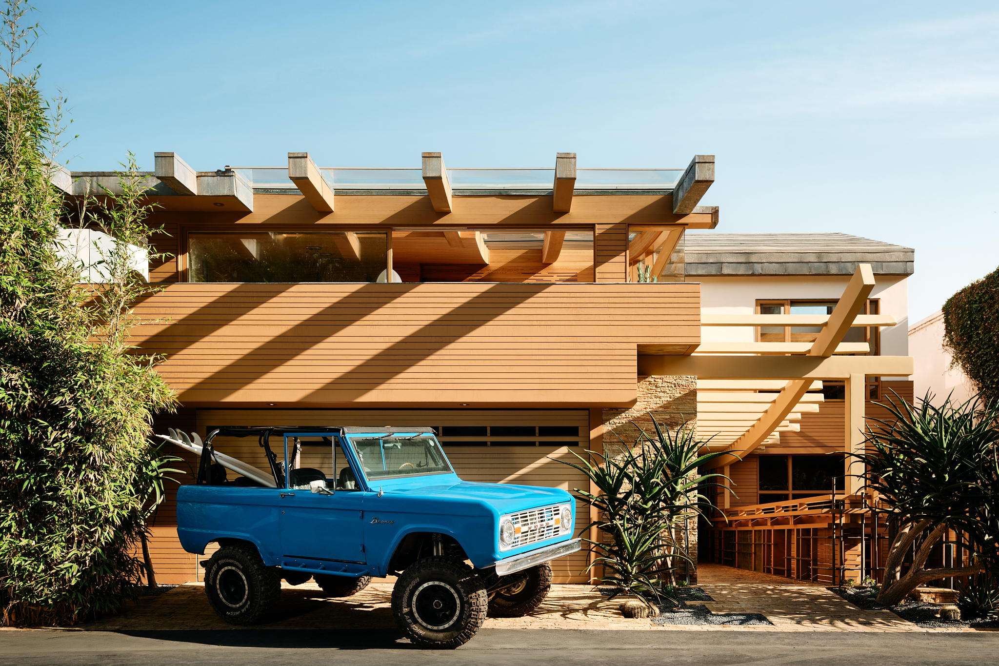 This architectural marvel features an intricate blend of vertical and horizontal planes of wood, stone, and metal, bathed in natural light streaming through sliding glass walls, strategically placed skylights, and an artistic glass floor. Designed by architect Jay Vanos, the finest woodworkers used American Southern cypress for its durability and golden hue on the floors and walls, complemented by a soaring wave redwood ceiling. With ocean views from almost every room, the home boasts a great room with a fireplace, a sitting/dining area, a gourmet kitchen with high-end appliances, and glass walls that open to an outdoor deck perfect for intimate or lavish entertaining. It includes three spacious master suites with fireplaces, luxurious spa-like baths, large closets, and ocean view decks, along with two additional bedrooms. Additional spaces include a sun-filled office/den, a cozy reading/library area, an art studio, an indoor sauna, a zen-style wellness area with sauna and cold plunge, and more. Steps lead to a lower-level surfboard storage area and provide direct access to the beach and renowned Latigo surf spot, making it an ideal home for surfing enthusiasts.