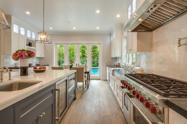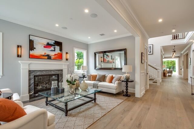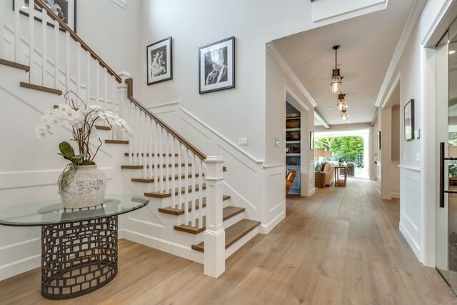 Extraordinary New Construction in the heart of Brentwood. Nestled on a majestic tree lined street North of Sunset, this home offers 5br / 5.5 baths and the highest attention to detail. A grand entry leads to double height ceilings accessorized with stylish designer light fixtures and 9" wide oak floors. The spacious chef's kitchen featuring Wolf & Sub Zero appliances will take your breath away as it opens to the great room and allows natural light to flow through the classic French doors. A seamless wall of glass pocket doors opens the great room to the covered patio, outdoor fireplace and grassy backyard with pool and spa. Impressive master retreat w/lg balcony, sitting area & spa quality bath. Other notable features in this house include an automatic pool cover, Control 4 Smart home system, Restoration Hardware lighting fixtures and much more.
