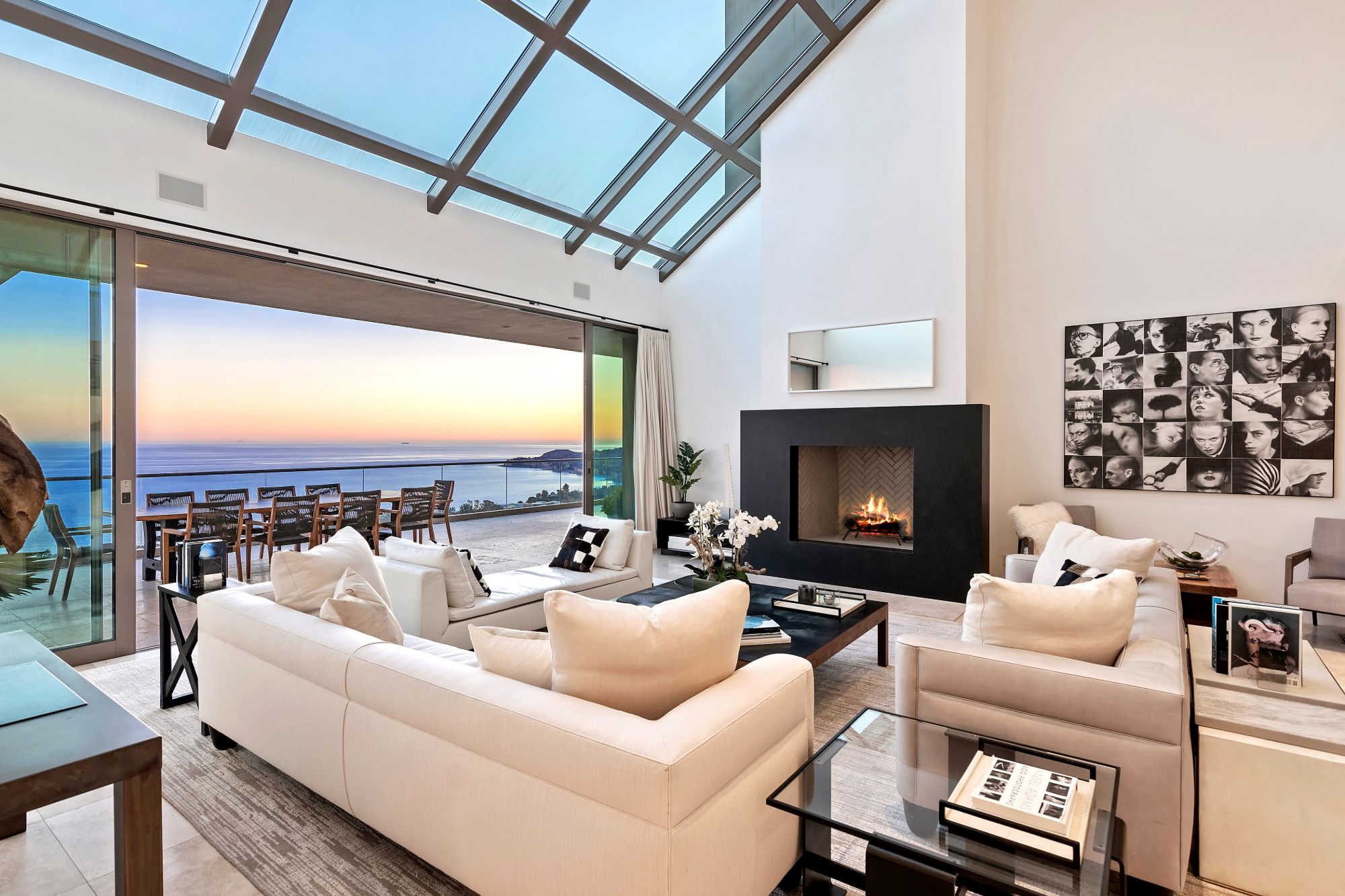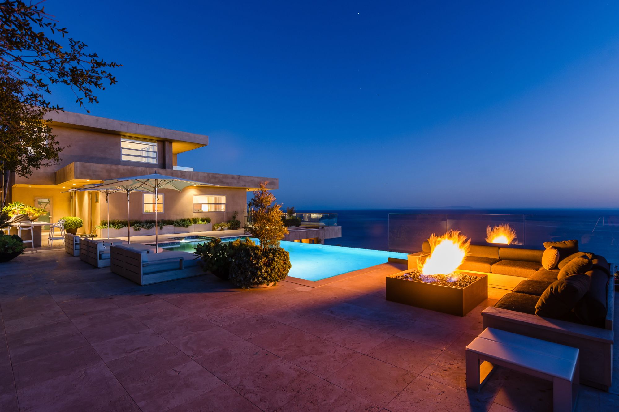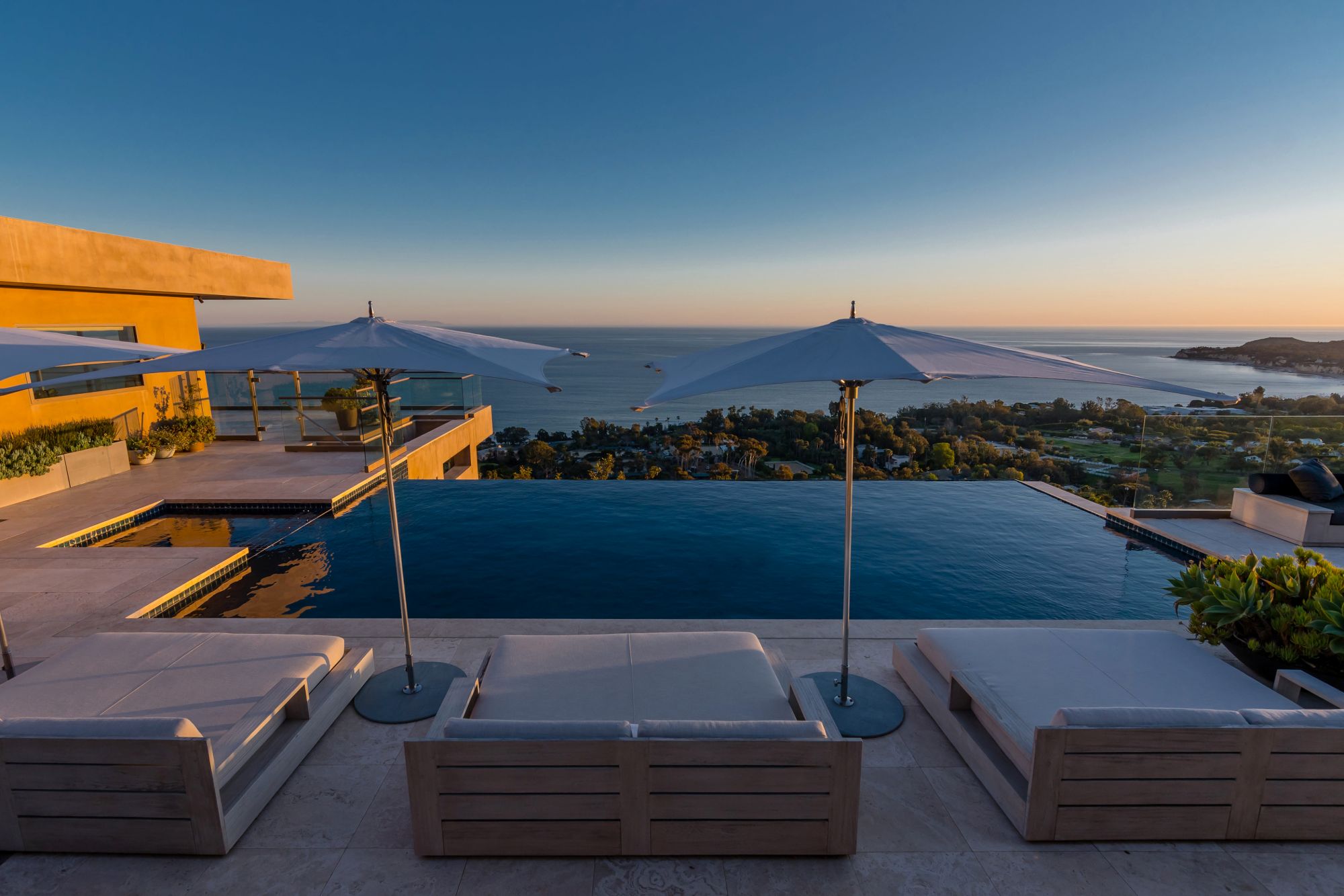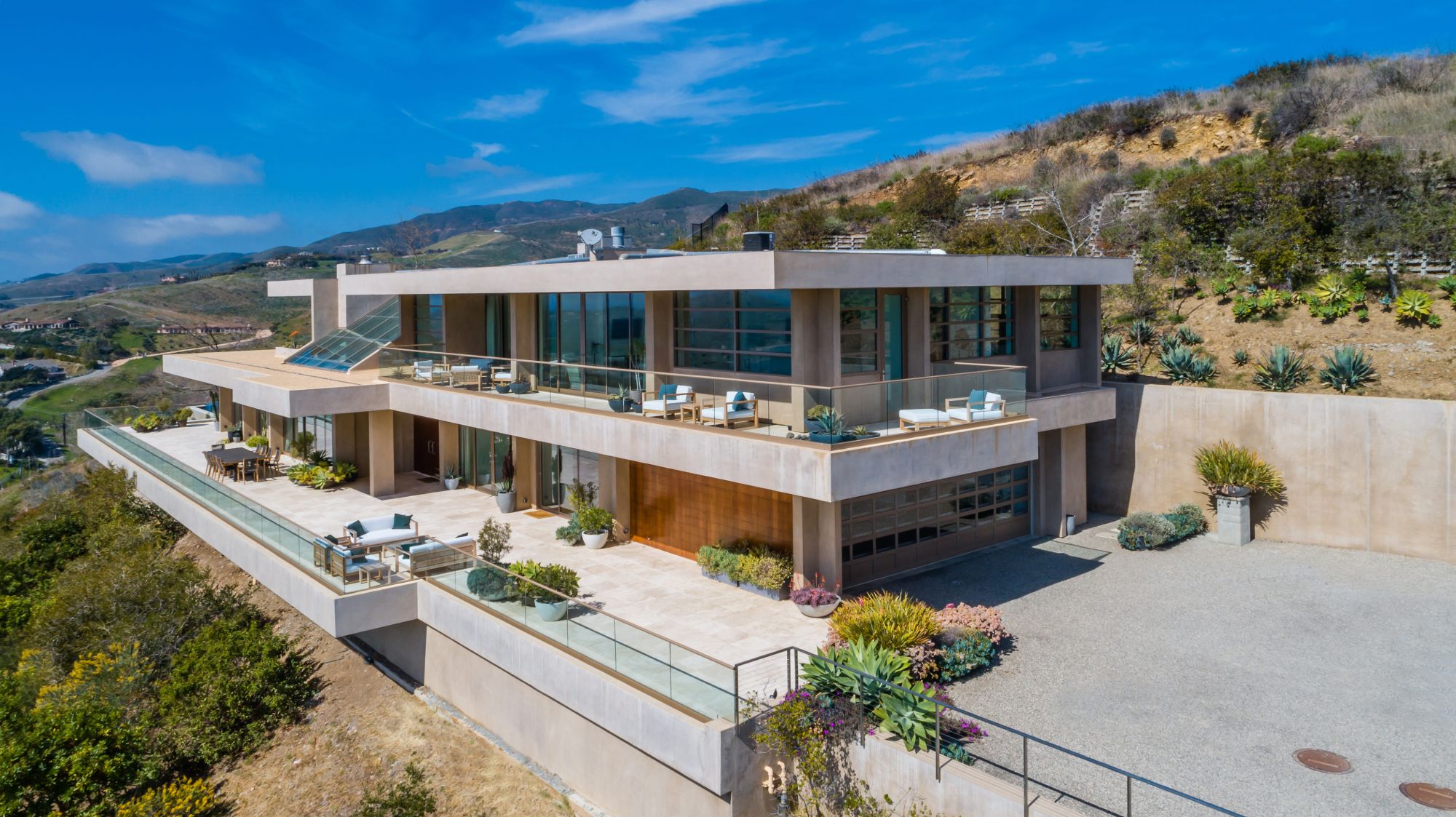 Set on approximately 15.5 acres in Malibu at the top of Winding Way, this contemporary masterpiece by architect Michael E. Barsocchini offers panoramic ocean views from Palos Verdes to Point Mugu. A double height entry welcomes you to a stunning great room featuring a fireplace, disappearing glass walls, travertine floors & an open floor plan with gorgeous views throughout. The living, dining, kitchen & media rooms all open, via wide glass doorways, onto the deck that stretches the length of the home. A floating walkway leads to the primary wing featuring a spacious suite with fireplace, luxury bath, exercise/yoga room, custom closet, office & private deck overlooking the Pacific. Three additional en-suite bedrooms with ocean views. A beautifully landscaped lawn sits beside the infinity pool, spa & BBQ area. Just beyond the pool trails leading to add'l acreage above the house allowing you to reconnect with nature. Enjoy incredible sunsets from this designer home set in the hills of Malibu.