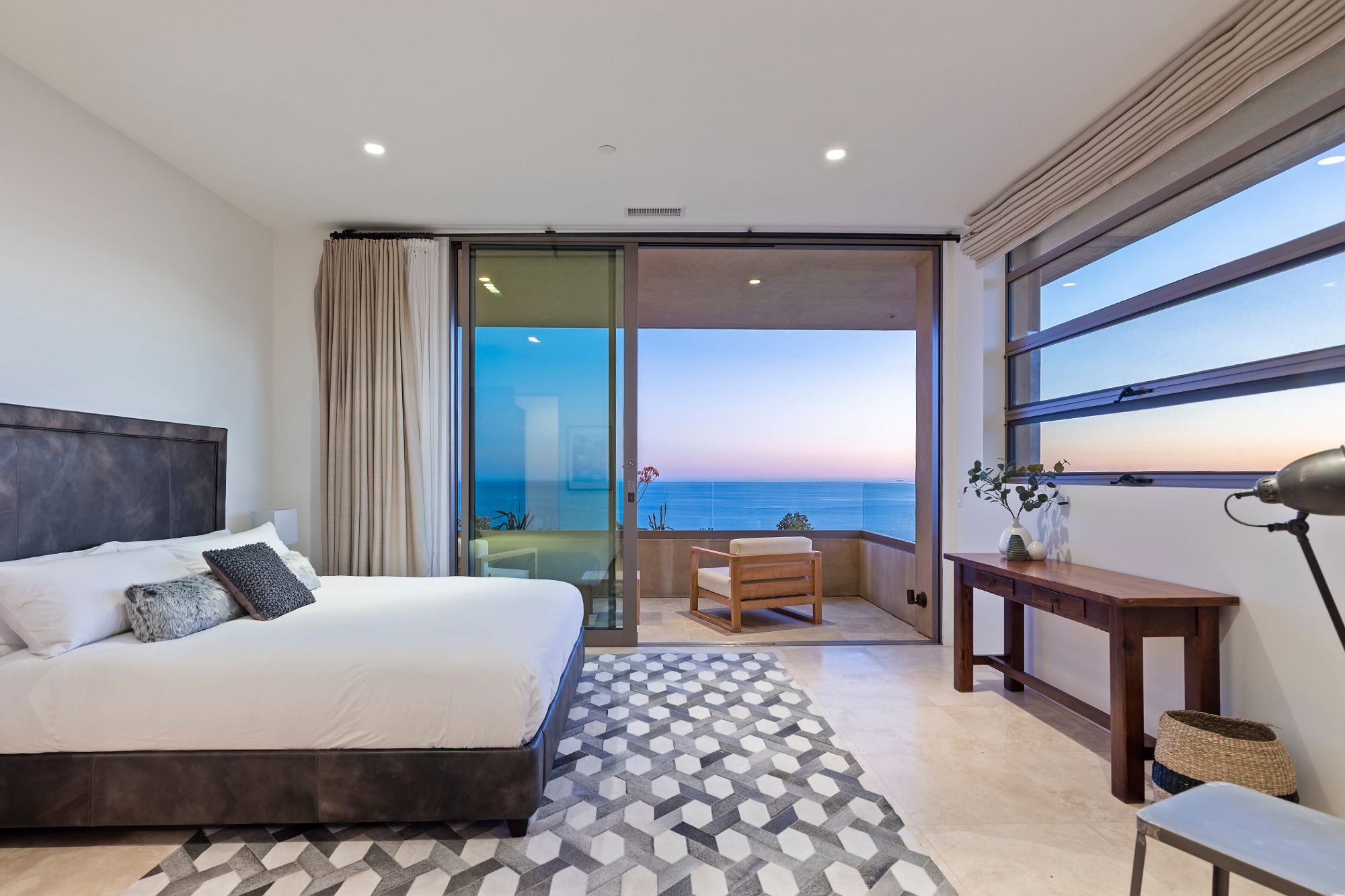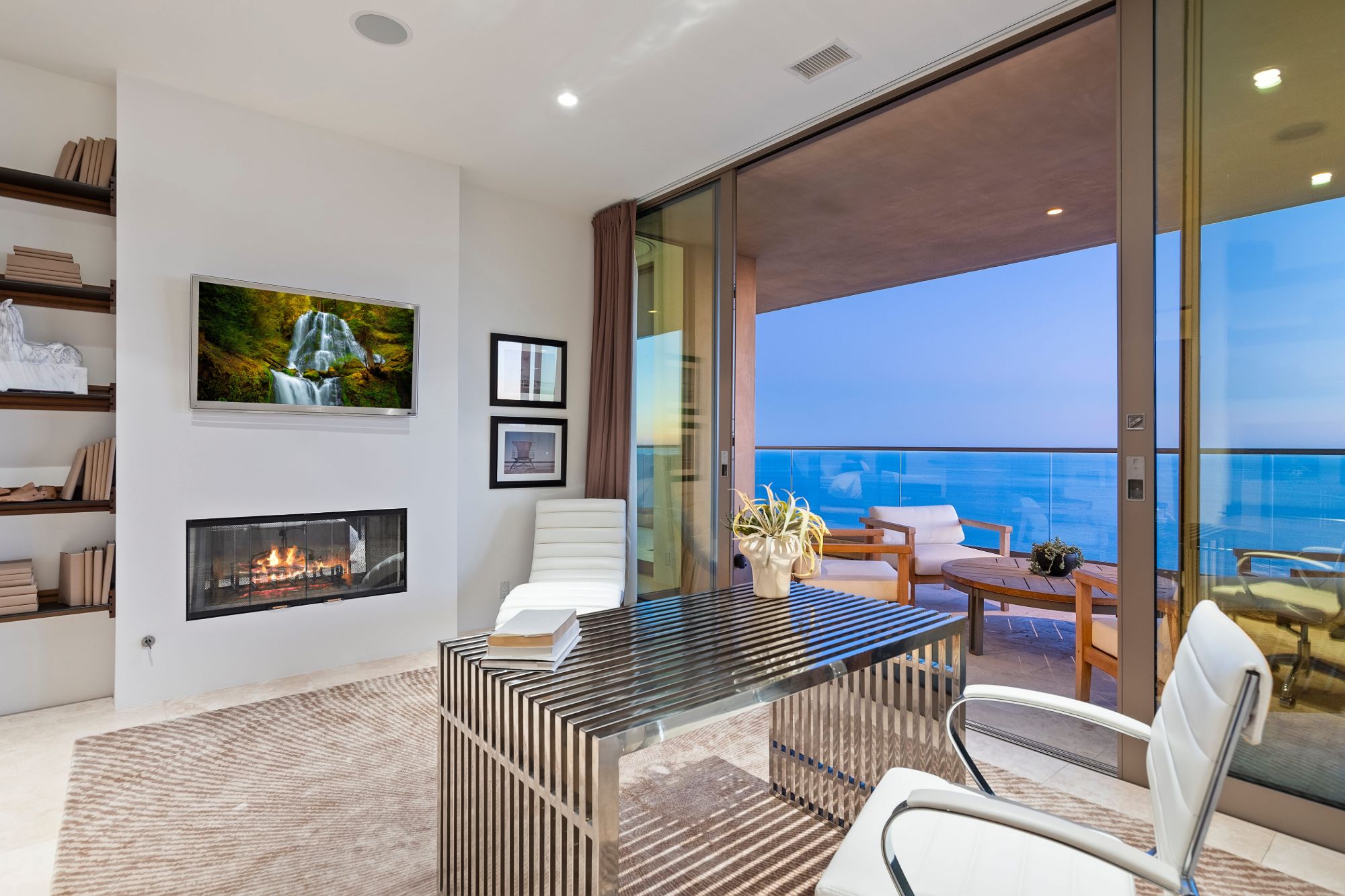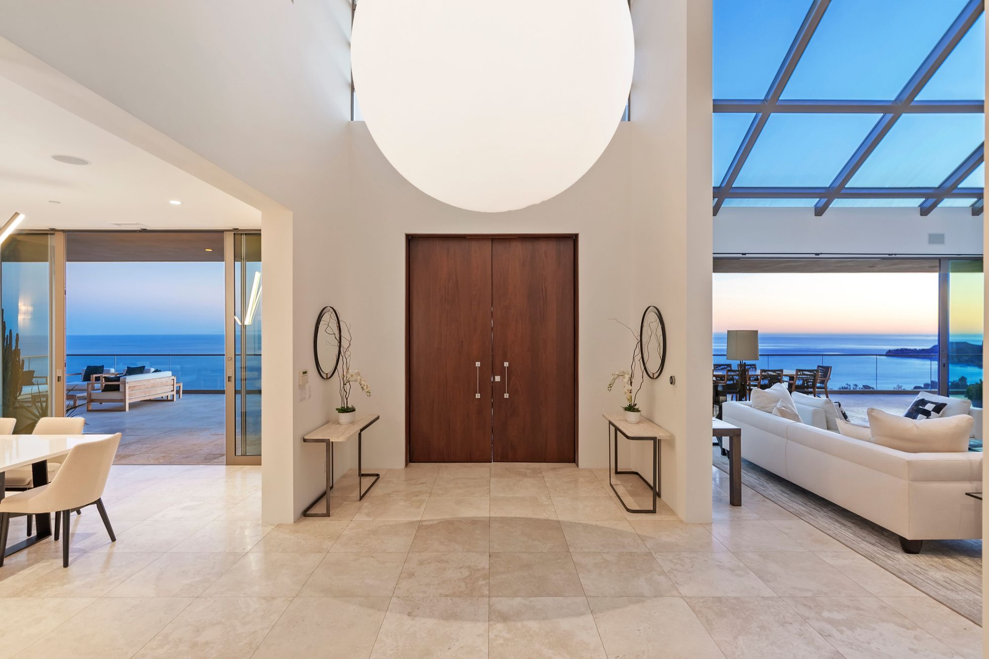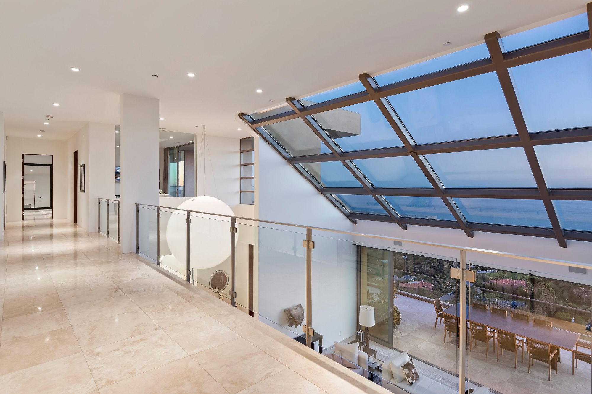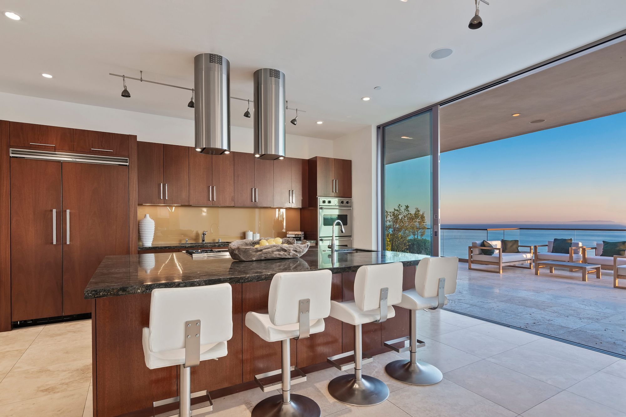 Set on approximately 15.5 acres in Malibu at the top of Winding Way, this contemporary masterpiece by architect Michael E. Barsocchini offers panoramic ocean views from Palos Verdes to Point Mugu. A double height entry welcomes you to a stunning great room featuring a fireplace, disappearing glass walls, travertine floors & an open floor plan with gorgeous views throughout. The living, dining, kitchen & media rooms all open, via wide glass doorways, onto the deck that stretches the length of the home. A floating walkway leads to the primary wing featuring a spacious suite with fireplace, luxury bath, exercise/yoga room, custom closet, office & private deck overlooking the Pacific. Three additional en-suite bedrooms with ocean views. A beautifully landscaped lawn sits beside the infinity pool, spa & BBQ area. Just beyond the pool trails leading to add'l acreage above the house allowing you to reconnect with nature. Enjoy incredible sunsets from this designer home set in the hills of Malibu.