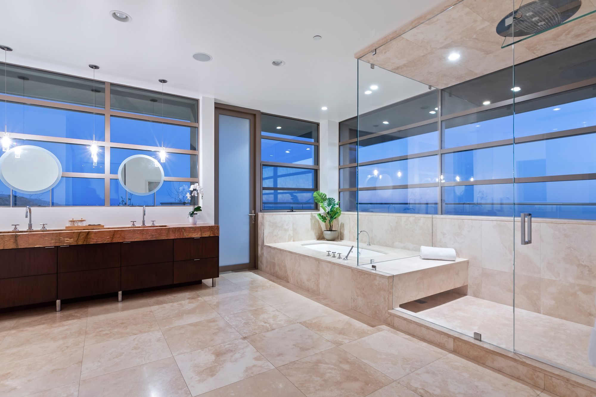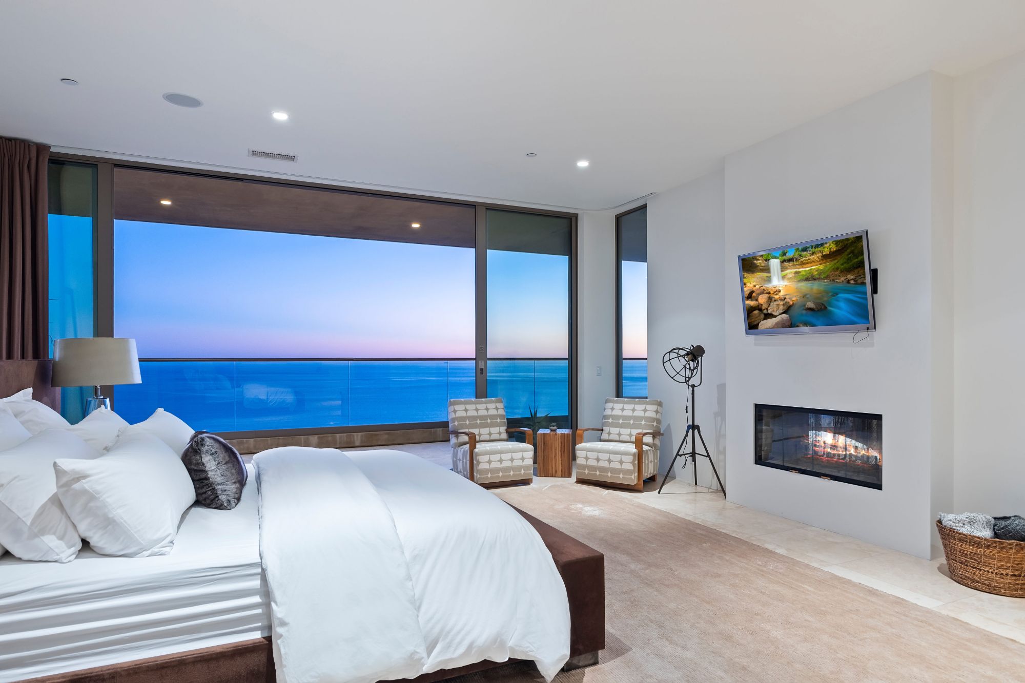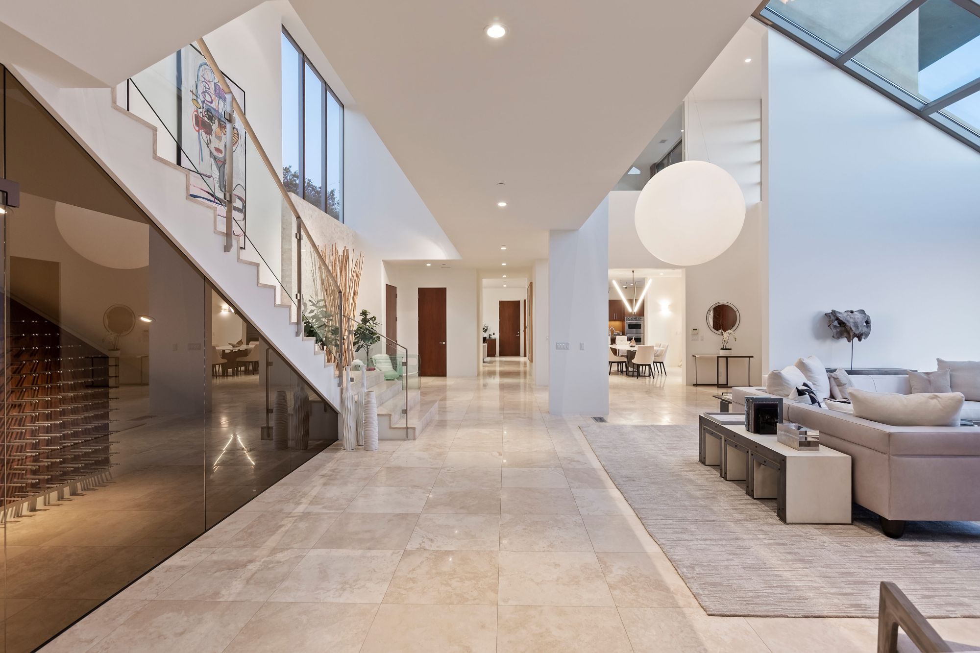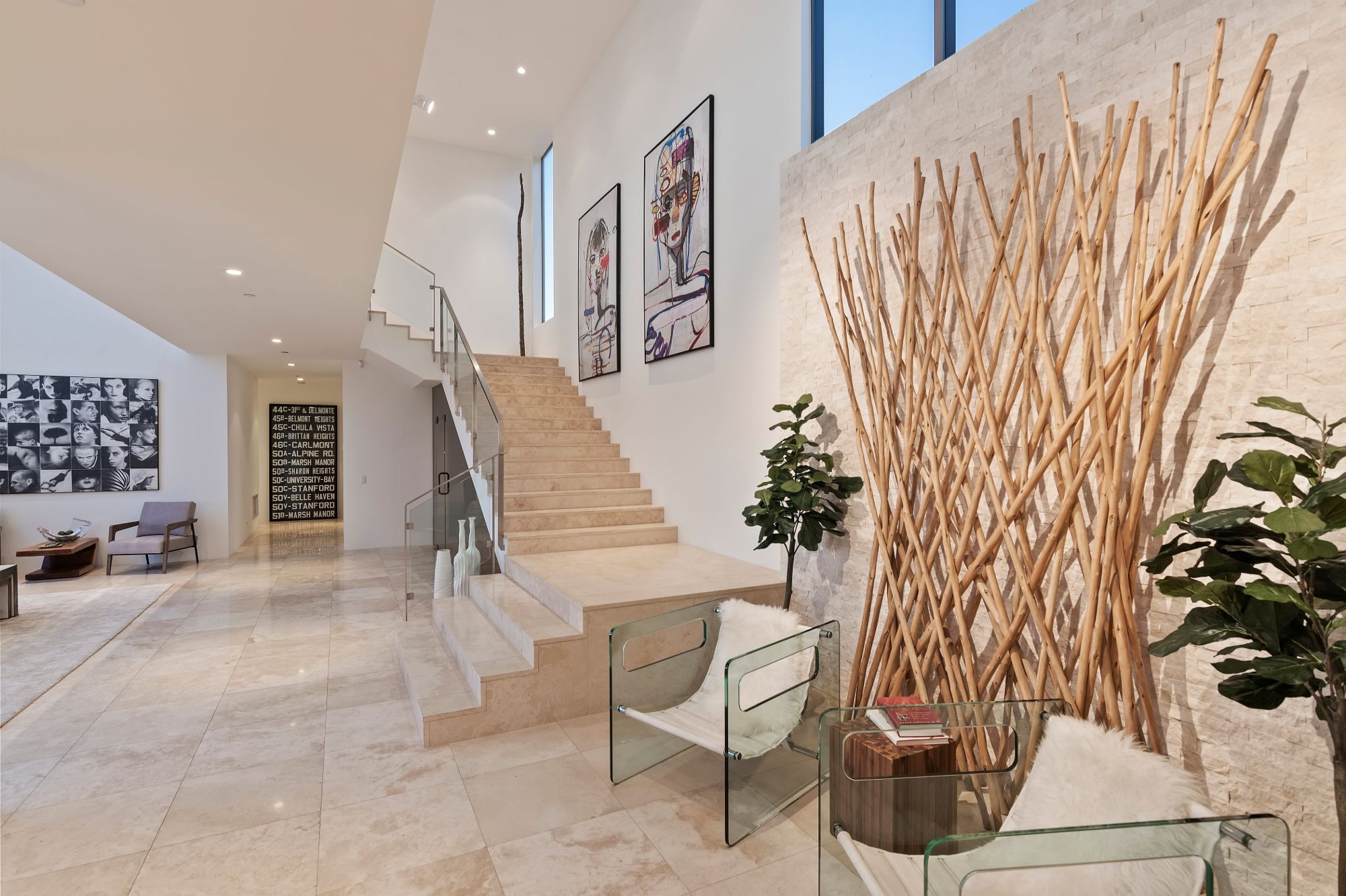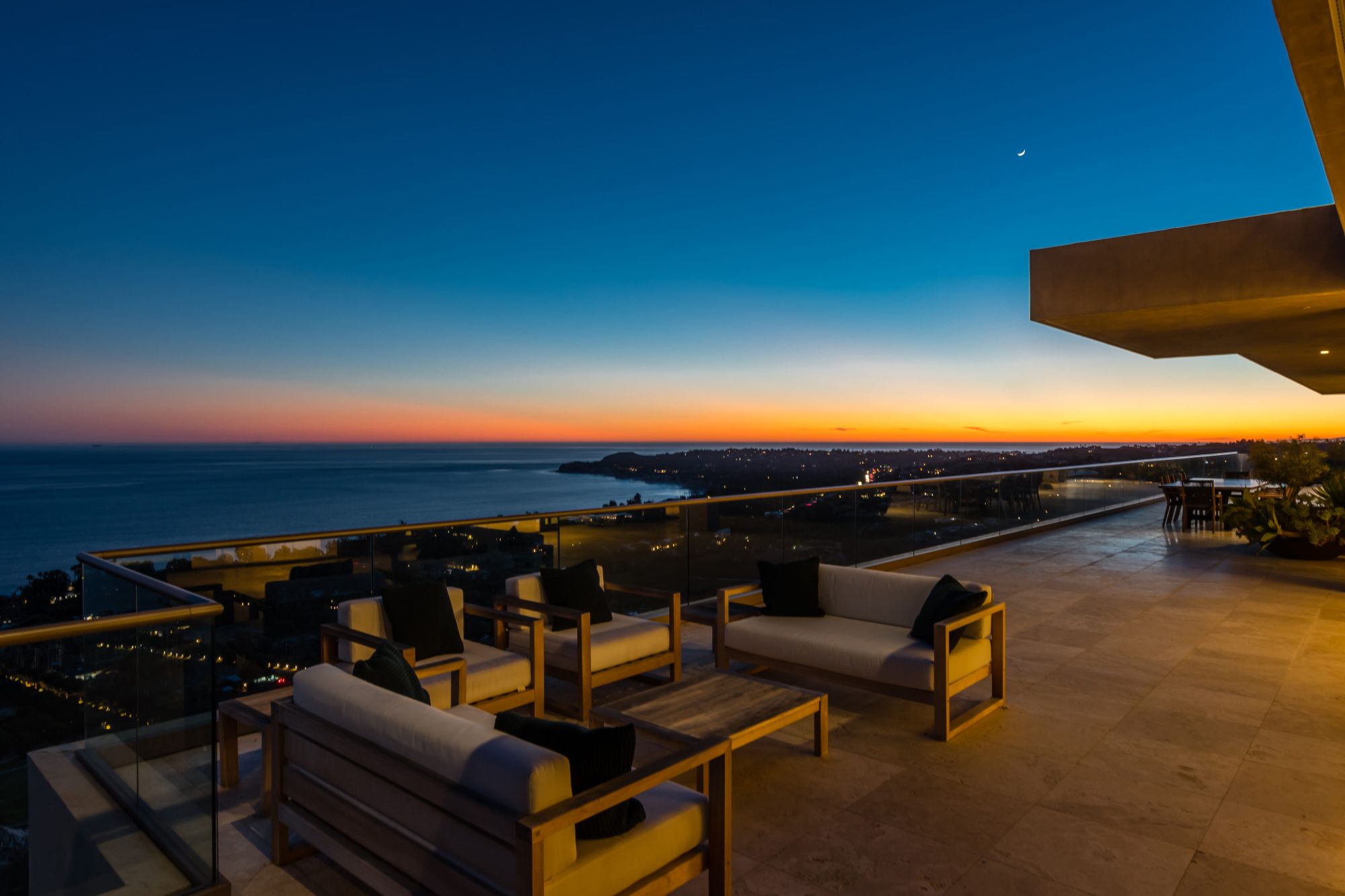 Set on approximately 15.5 acres in Malibu at the top of Winding Way, this contemporary masterpiece by architect Michael E. Barsocchini offers panoramic ocean views from Palos Verdes to Point Mugu. A double height entry welcomes you to a stunning great room featuring a fireplace, disappearing glass walls, travertine floors & an open floor plan with gorgeous views throughout. The living, dining, kitchen & media rooms all open, via wide glass doorways, onto the deck that stretches the length of the home. A floating walkway leads to the primary wing featuring a spacious suite with fireplace, luxury bath, exercise/yoga room, custom closet, office & private deck overlooking the Pacific. Three additional en-suite bedrooms with ocean views. A beautifully landscaped lawn sits beside the infinity pool, spa & BBQ area. Just beyond the pool trails leading to add'l acreage above the house allowing you to reconnect with nature. Enjoy incredible sunsets from this designer home set in the hills of Malibu.